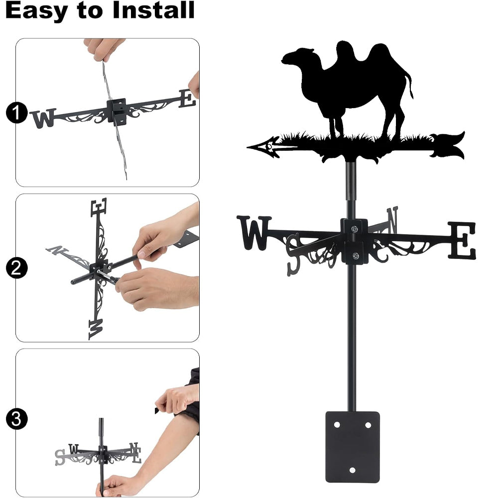 💕Creative design: This Weathervane is made of high-quality Stainless Steel. With stylish straight lines and satin black finishes. This anti-rust iron weather vane is decorated with exquisite patterns.