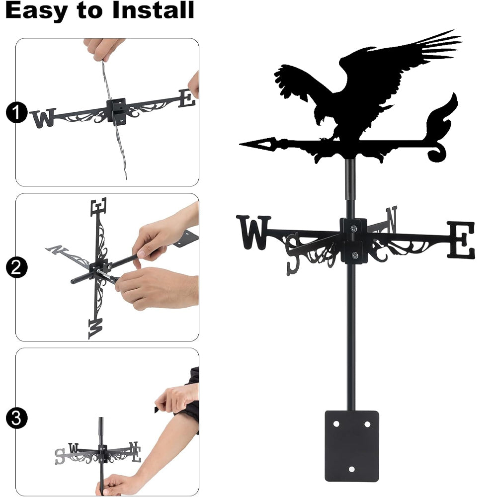 💕Creative design: This Weathervane is made of high-quality Stainless Steel. With stylish straight lines and satin black finishes. This anti-rust iron weather vane is decorated with exquisite patterns.