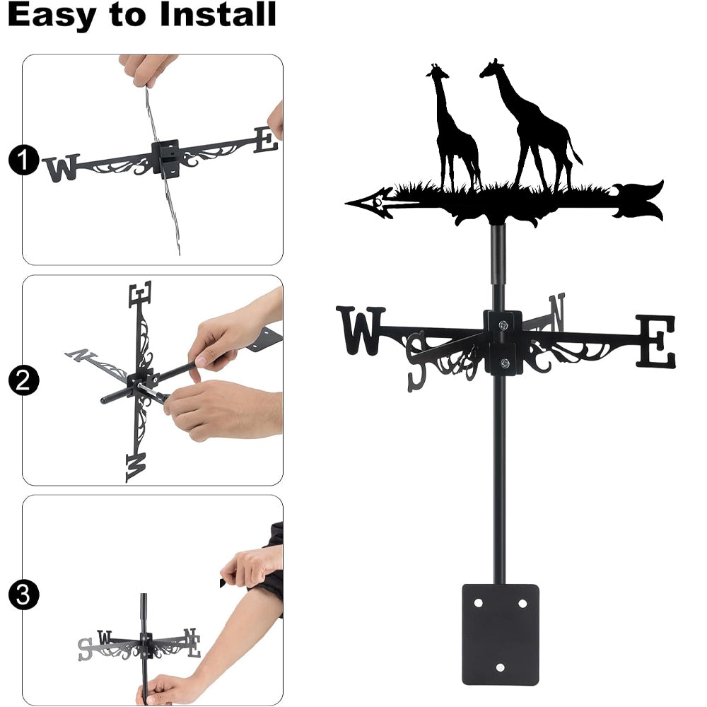 💕Creative design: This Weathervane is made of high-quality Stainless Steel. With stylish straight lines and satin black finishes. This anti-rust iron weather vane is decorated with exquisite patterns.