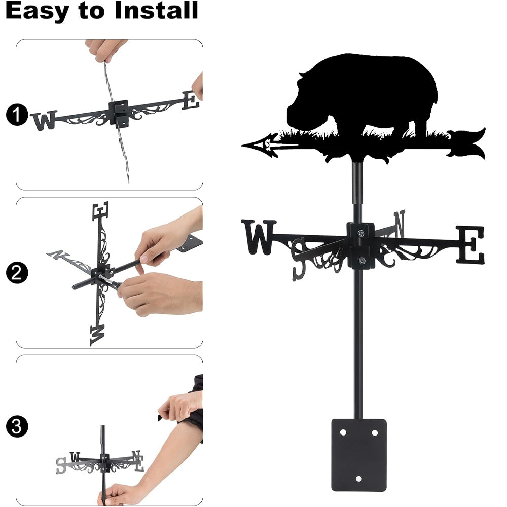 💕Creative design: This Weathervane is made of high-quality Stainless Steel. With stylish straight lines and satin black finishes. This anti-rust iron weather vane is decorated with exquisite patterns.
