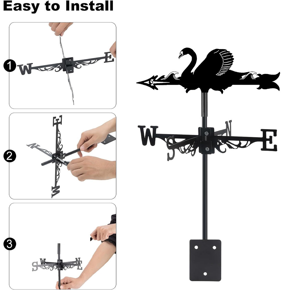 💕Creative design: This Weathervane is made of high-quality Stainless Steel. With stylish straight lines and satin black finishes. This anti-rust iron weather vane is decorated with exquisite patterns.