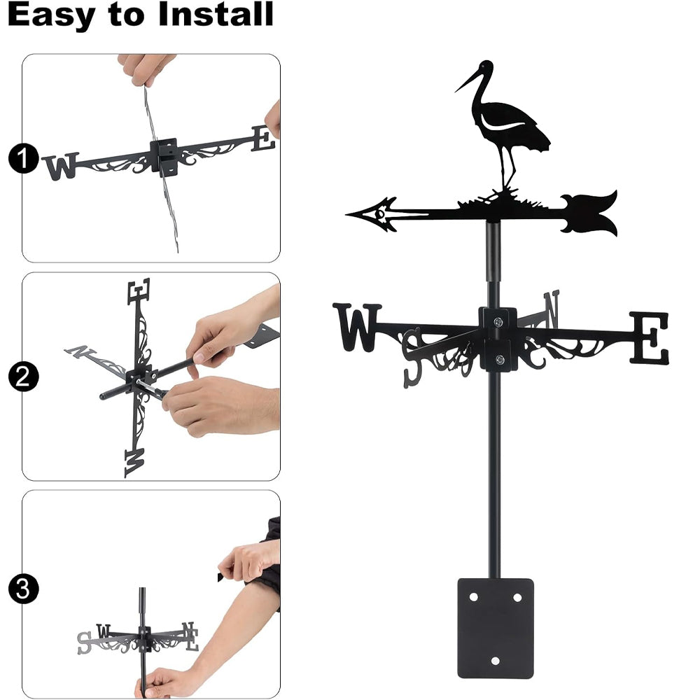 💕Creative design: This Weathervane is made of high-quality Stainless Steel. With stylish straight lines and satin black finishes. This anti-rust iron weather vane is decorated with exquisite patterns.