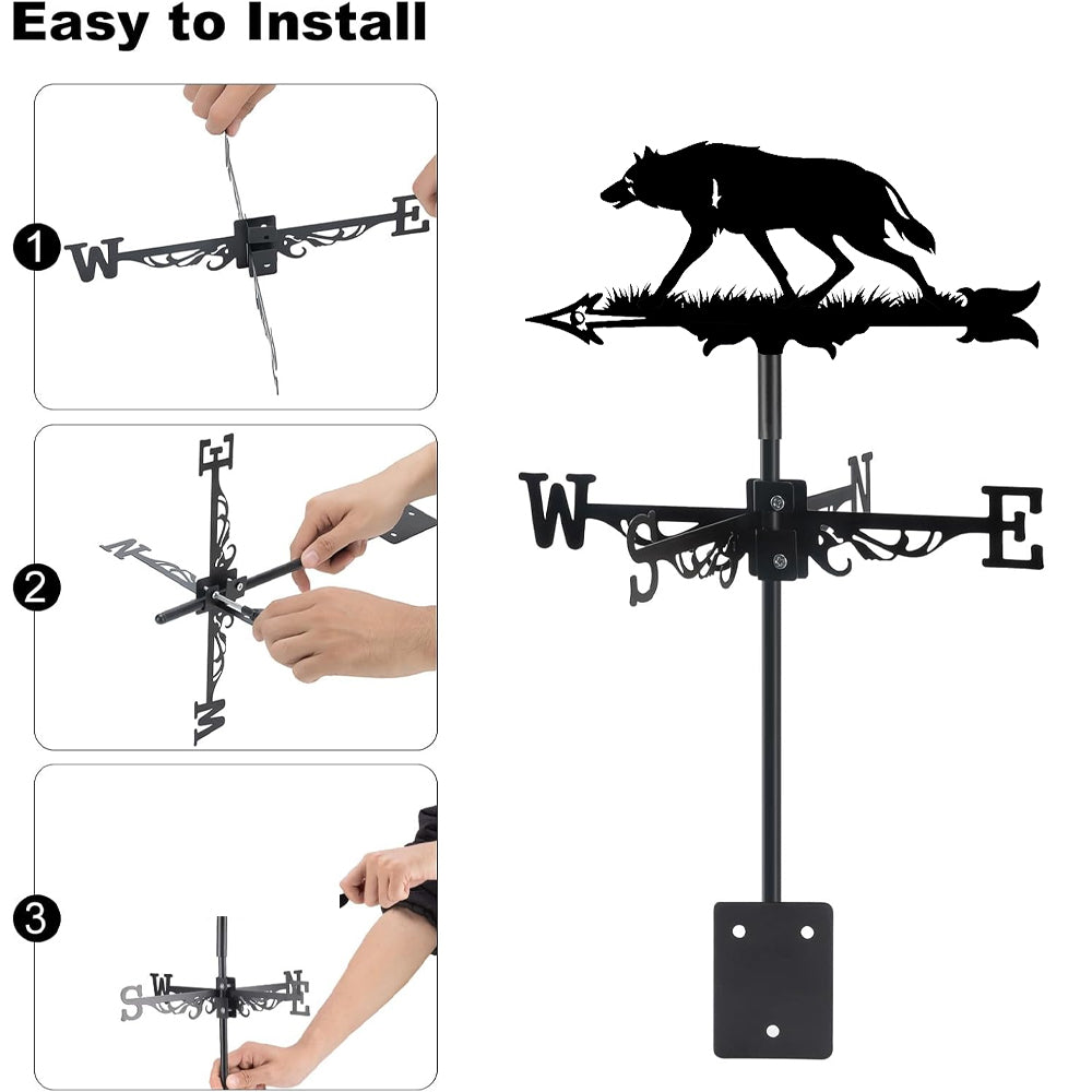 💕Creative design: This Weathervane is made of high-quality Stainless Steel. With stylish straight lines and satin black finishes. This anti-rust iron weather vane is decorated with exquisite patterns.