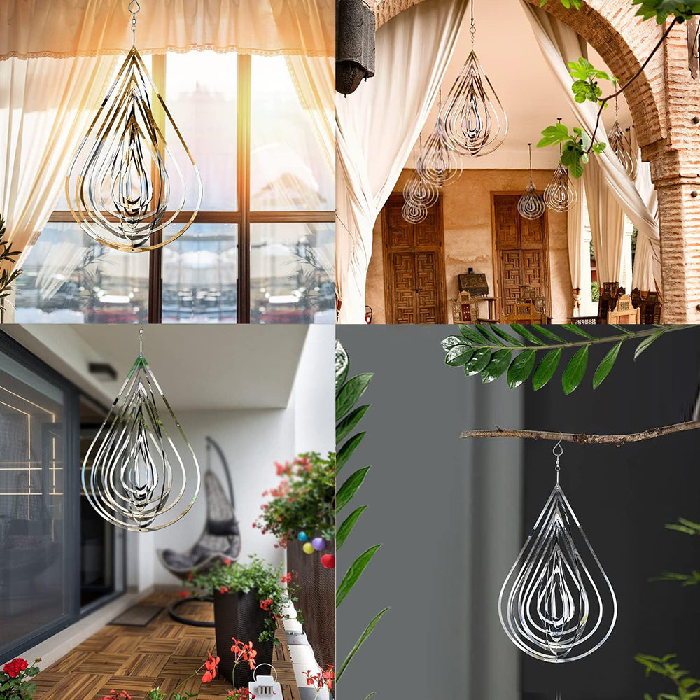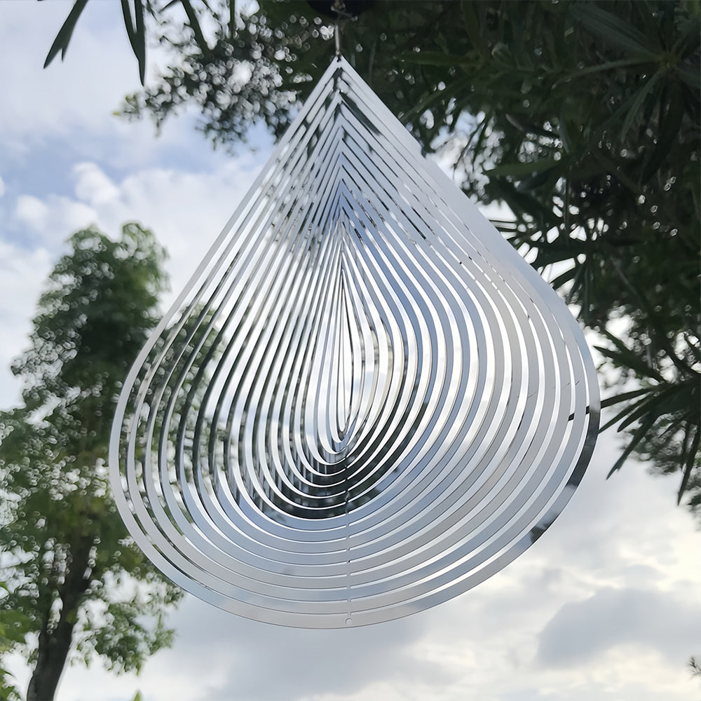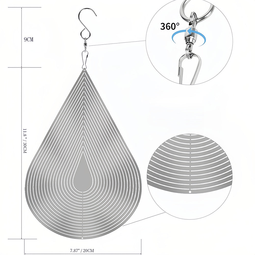 Drop Shaped Wind Spinner 3D Stainless Steel Wind Chime Crop Bird Repeller