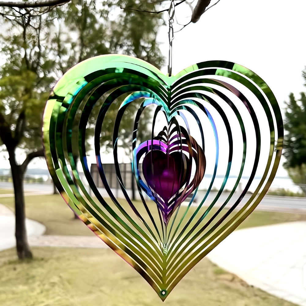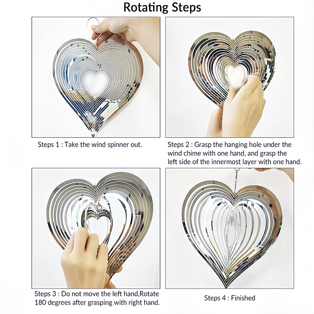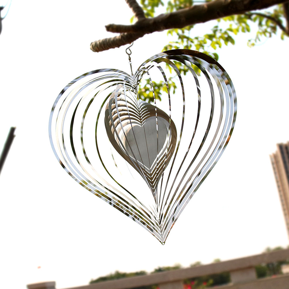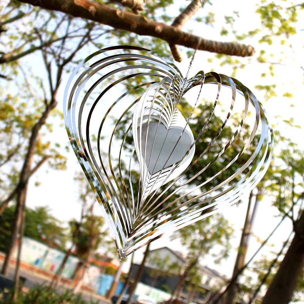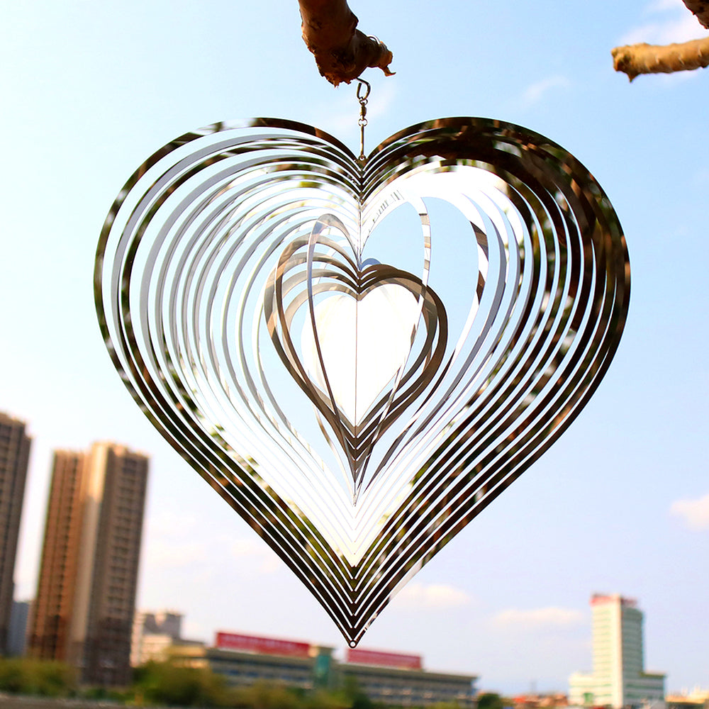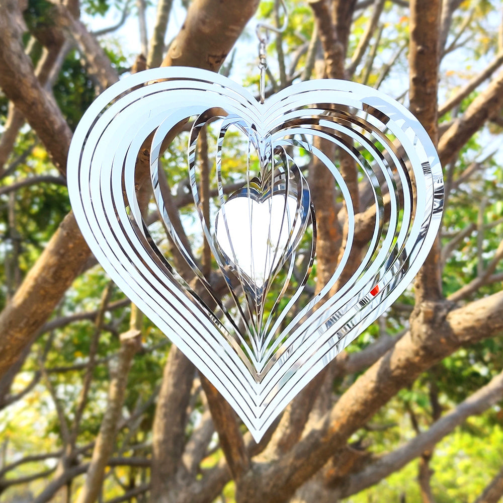 Heart Shaped Wind Spinner 3D Stainless Steel Wind Chime Crop Bird Repeller
