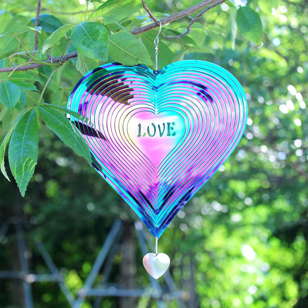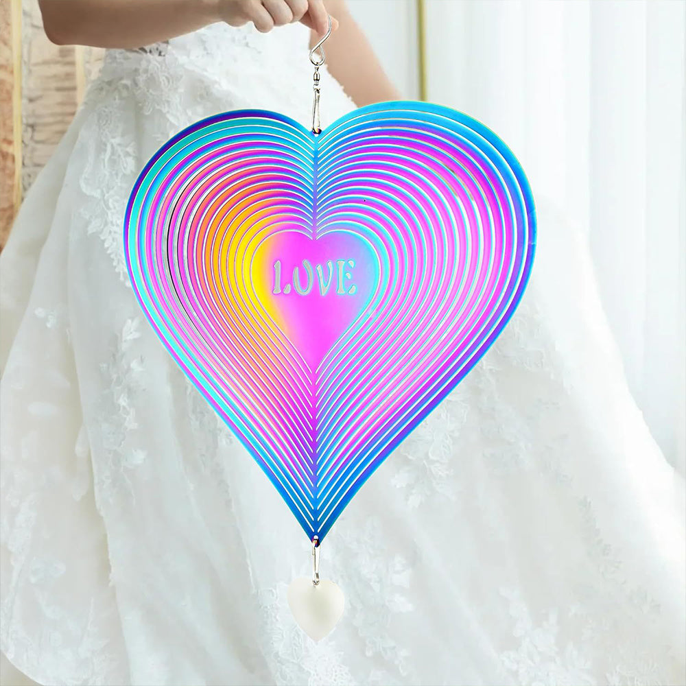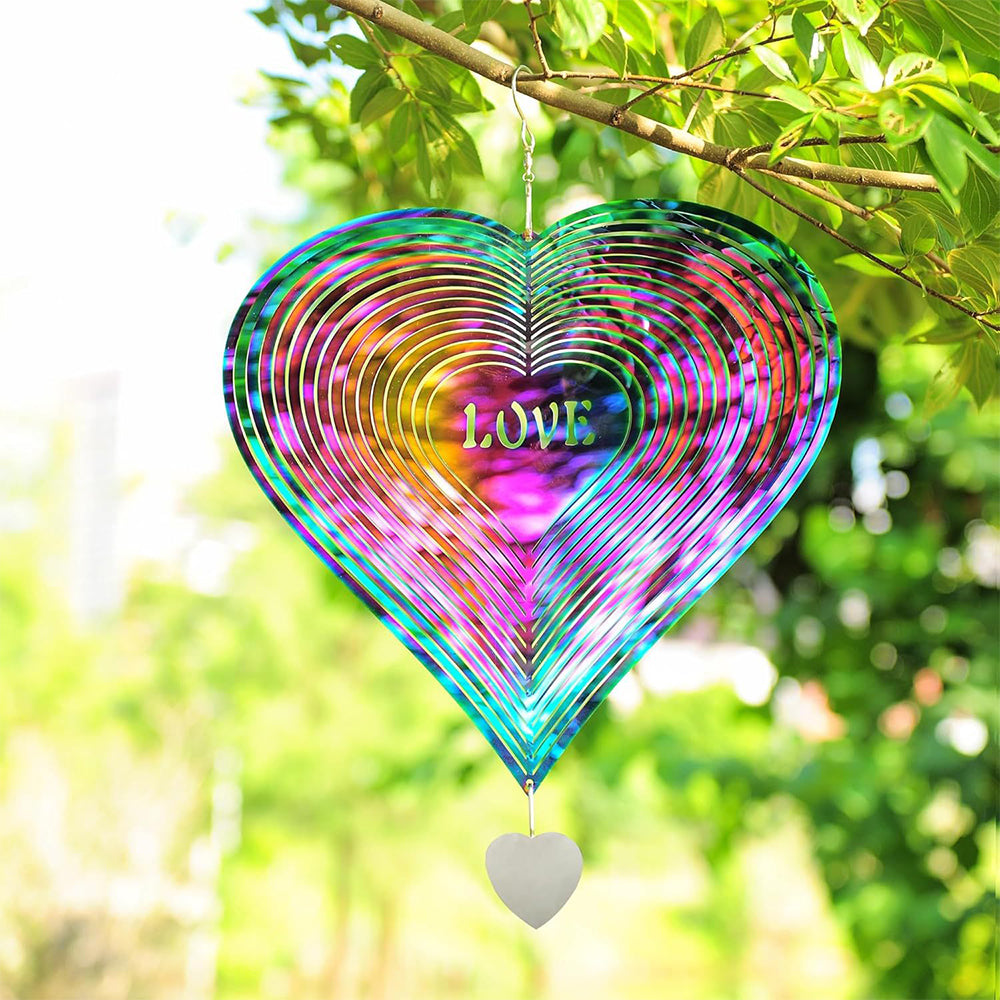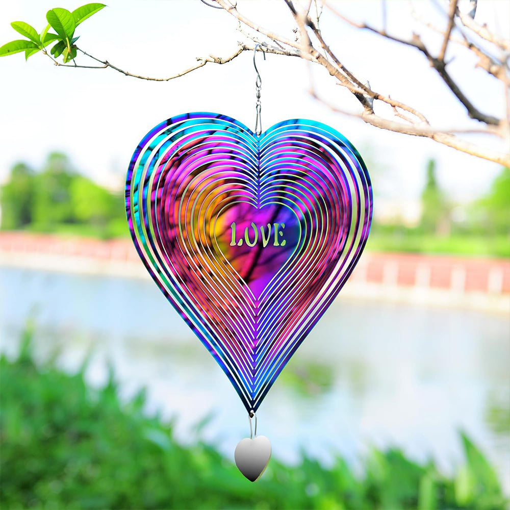 Heart Shaped Wind Spinner 3D Stainless Steel Wind Chime Crop Bird Repeller