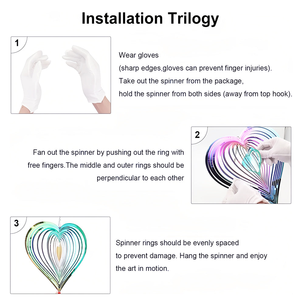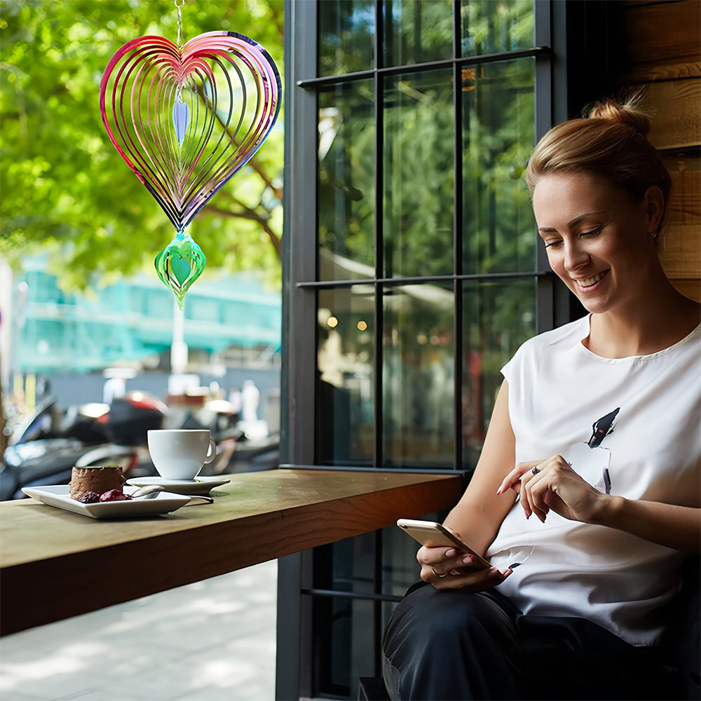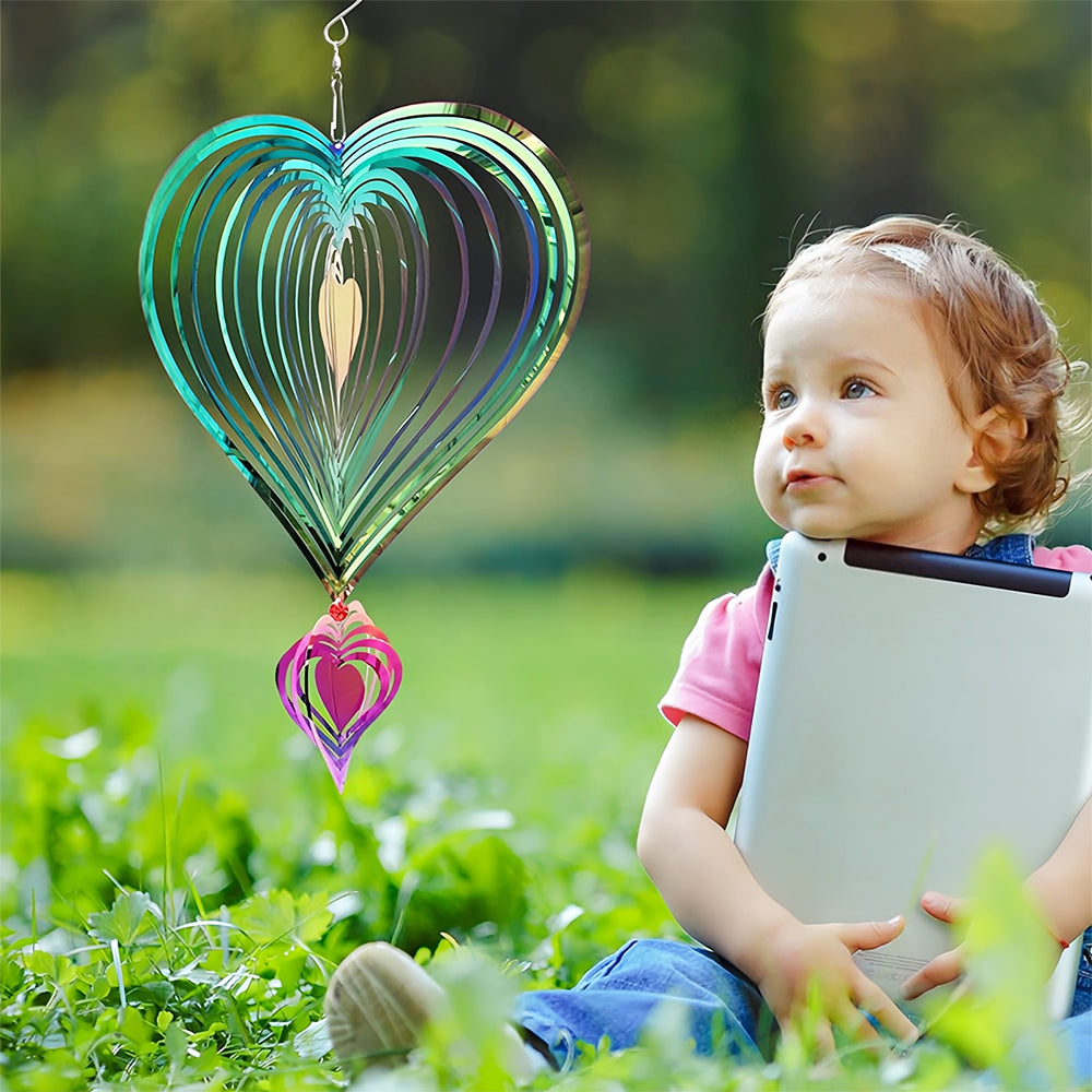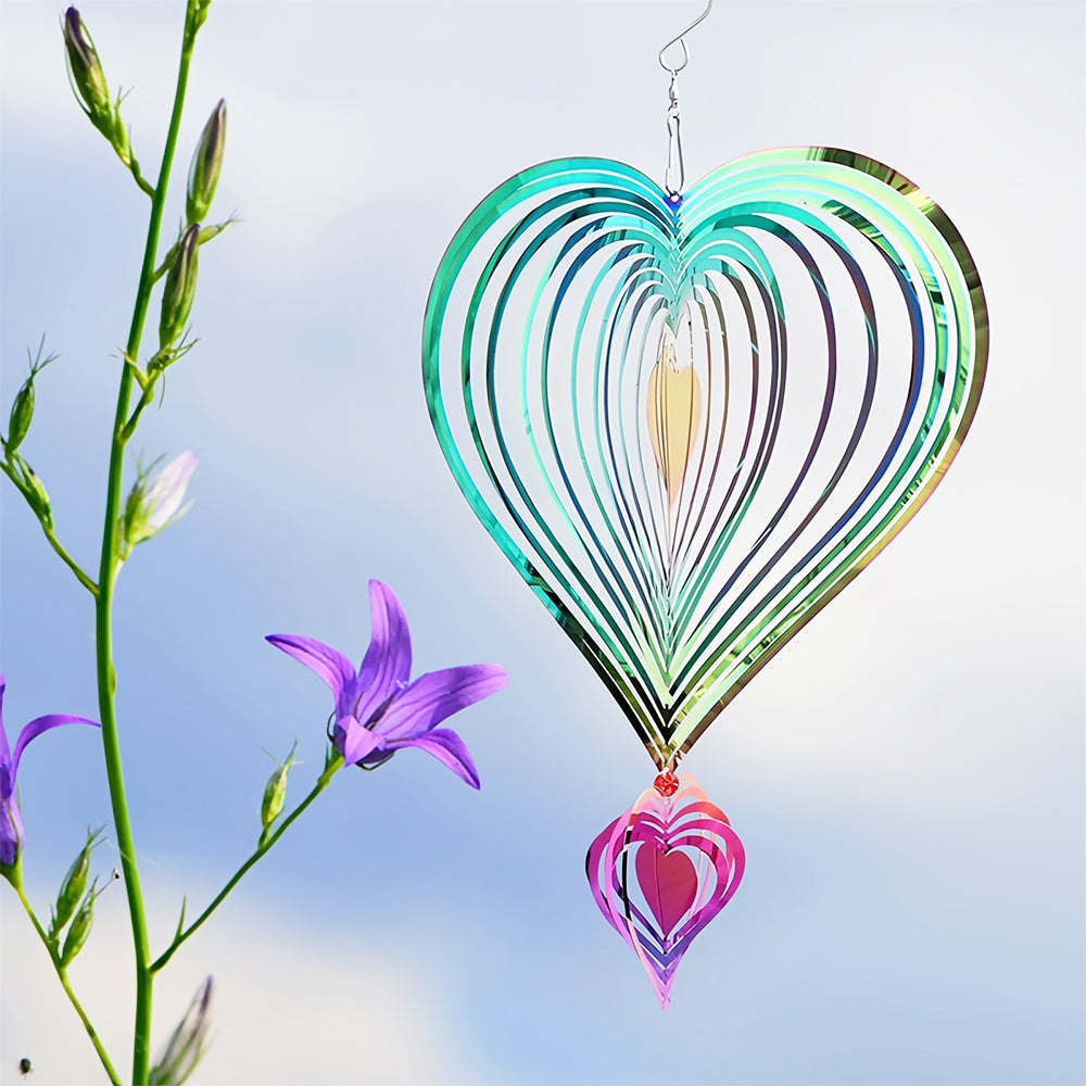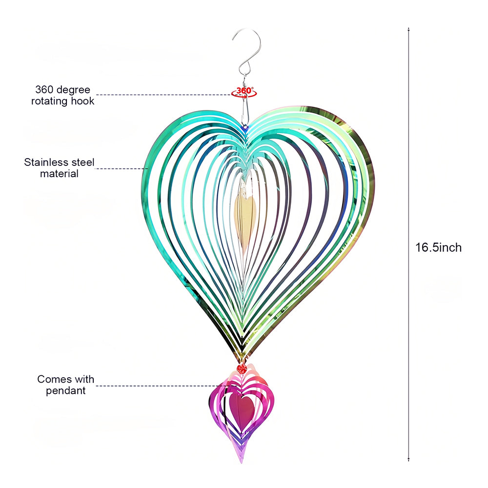 Heart Shaped Wind Spinner 3D Stainless Steel Wind Chime Crop Bird Repeller
