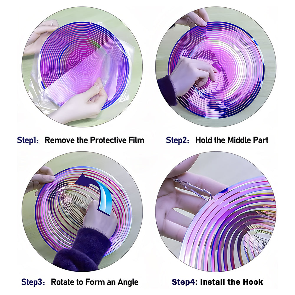 💕Unique Design: The 3D wind spinner comes with a spiral tail that sparkles under the sun, when the wind blows it, it shows a beautiful gradient rainbow shimmer and 3D stereoscopic visual effect, twirling and dancing in the wind.