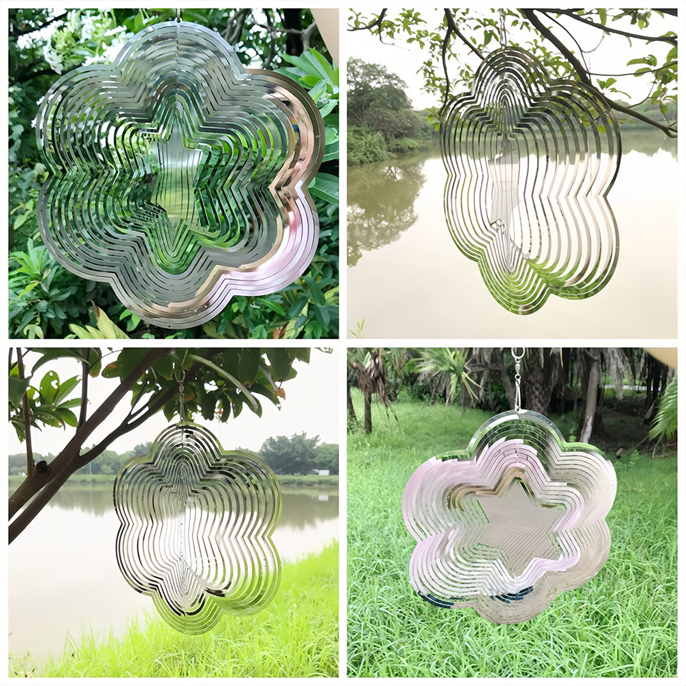 Hexagonal Star Wind Spinner 3D Stainless Steel Wind Chime Crop Bird Repeller
