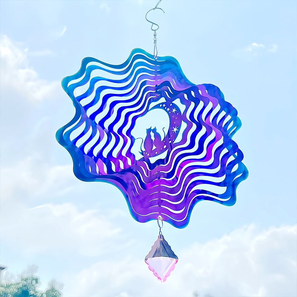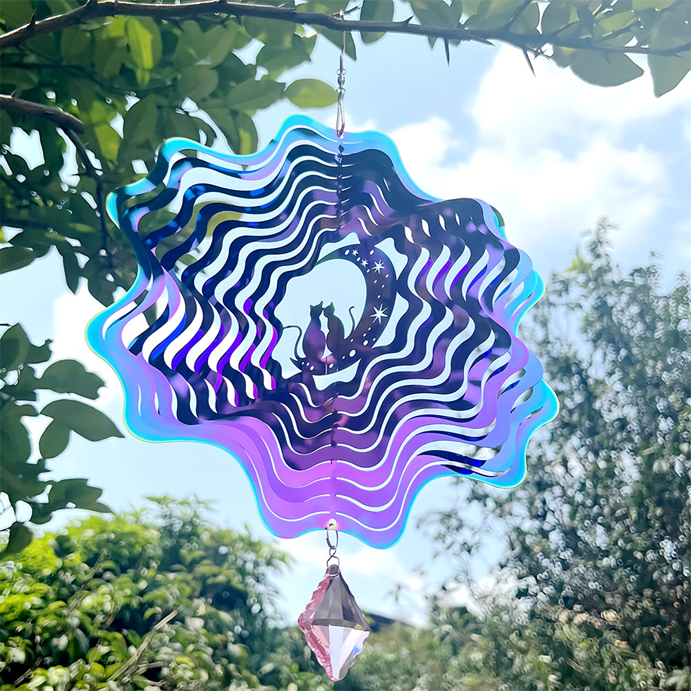 Sweet Cat Wind Spinner 3D Stainless Steel Wind Chime Crop Bird Repeller