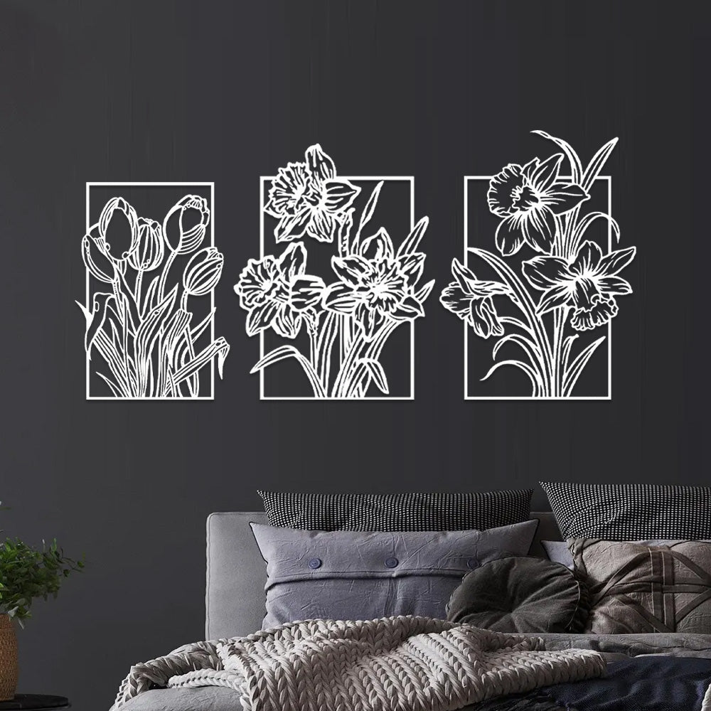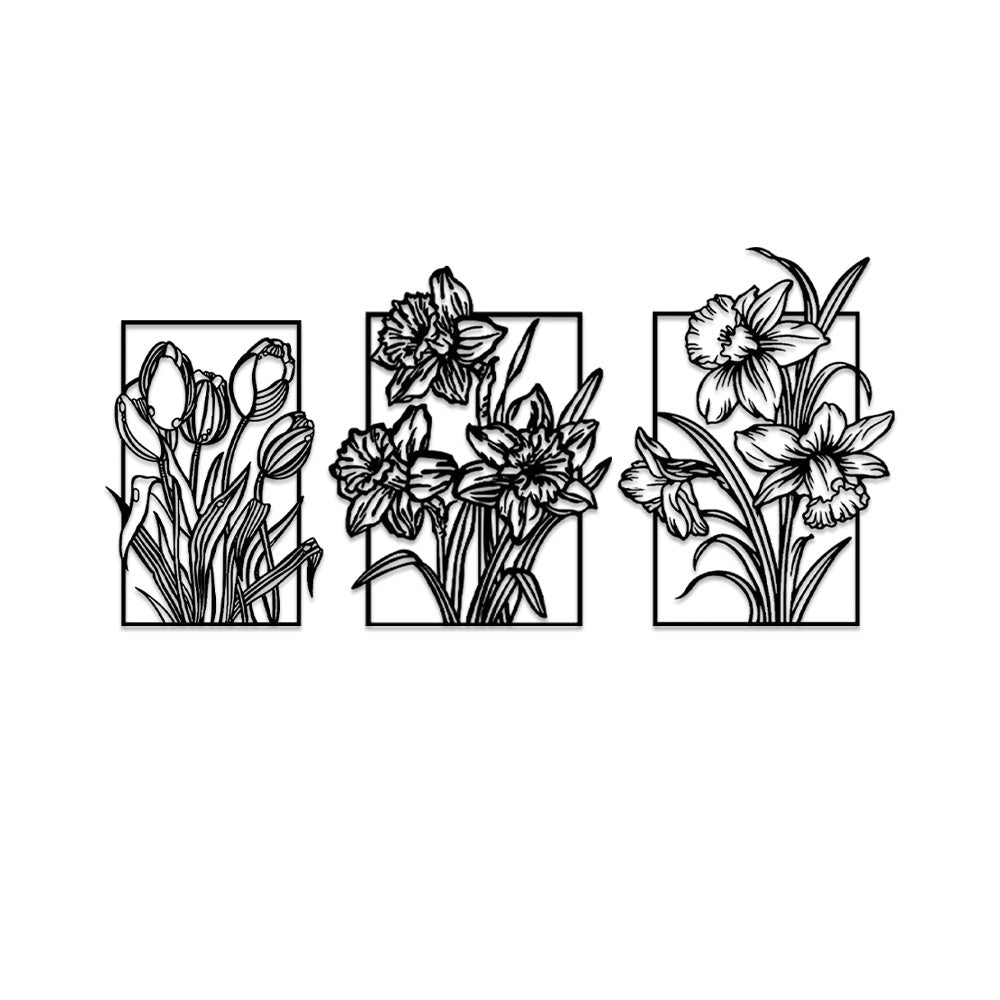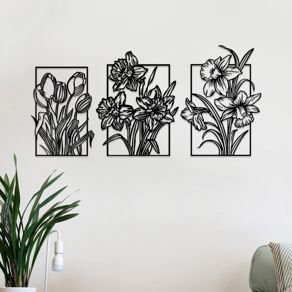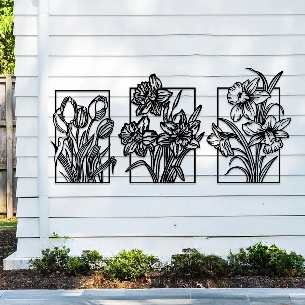 3 PCS Flower Garden Metal Wall Art - Indoor Outdoor Wall Decor