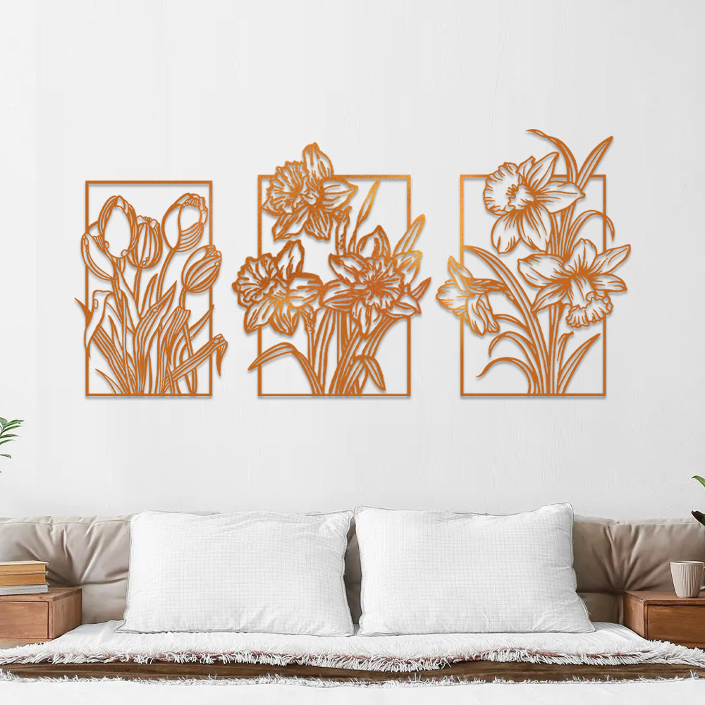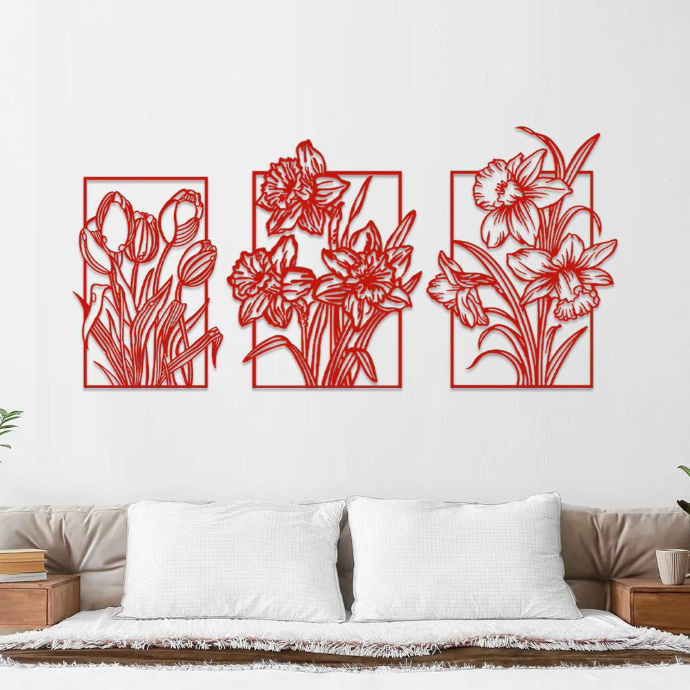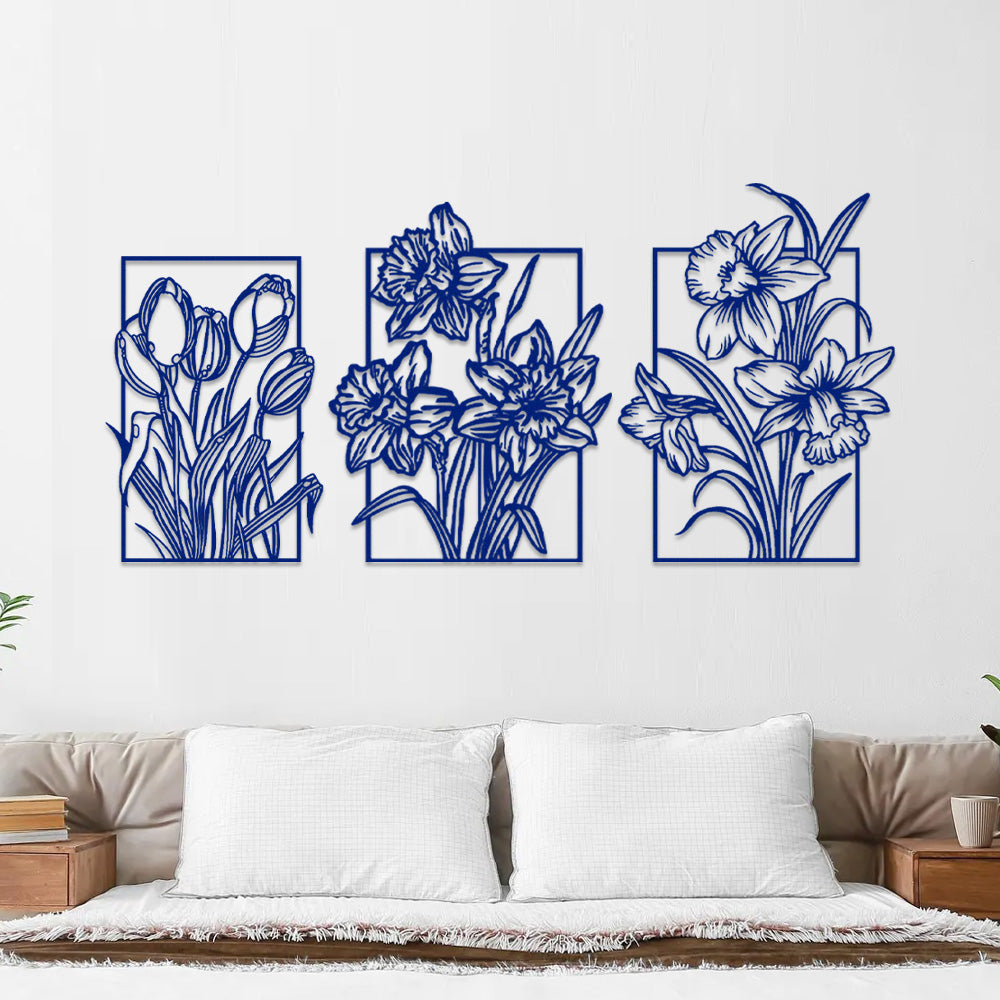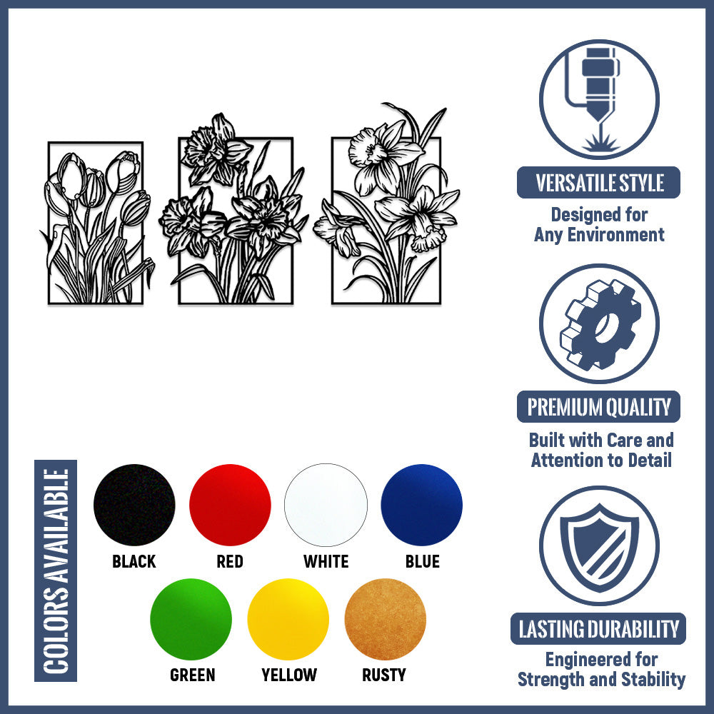 3 PCS Flower Garden Metal Wall Art - Indoor Outdoor Wall Decor