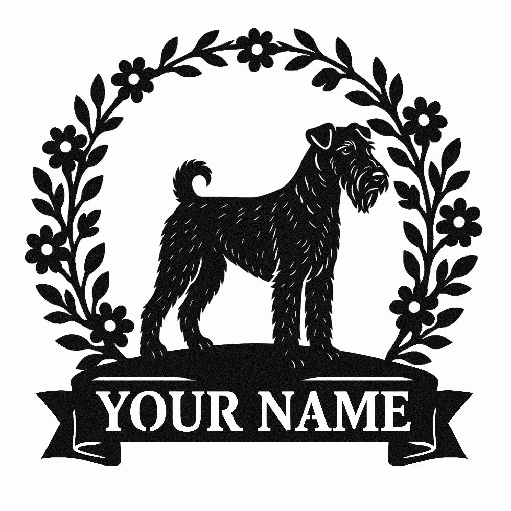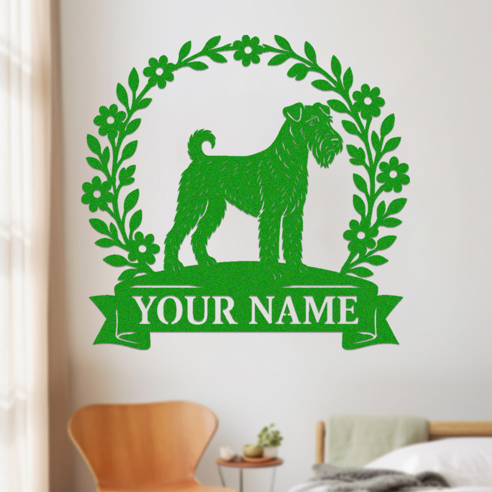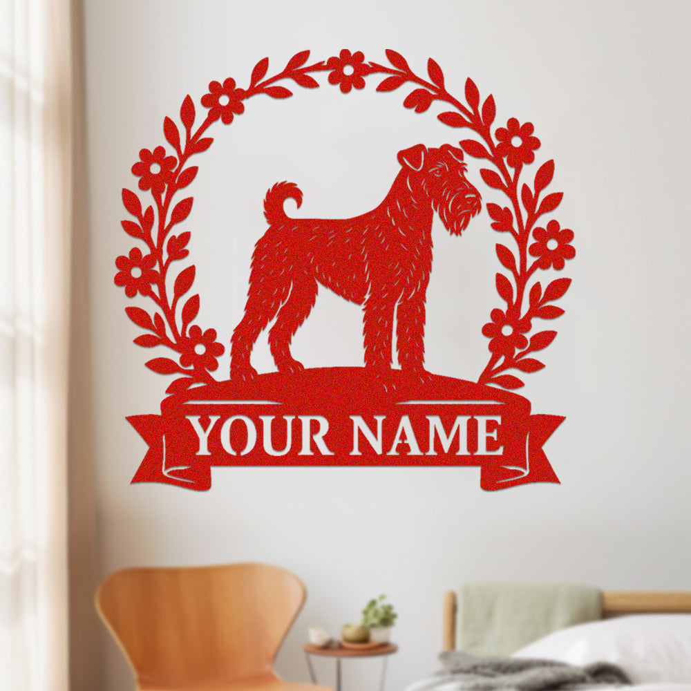 Airedale Terrier Wreath Metal Wall Art Dog Lover Personalized Memorial Metal Sign