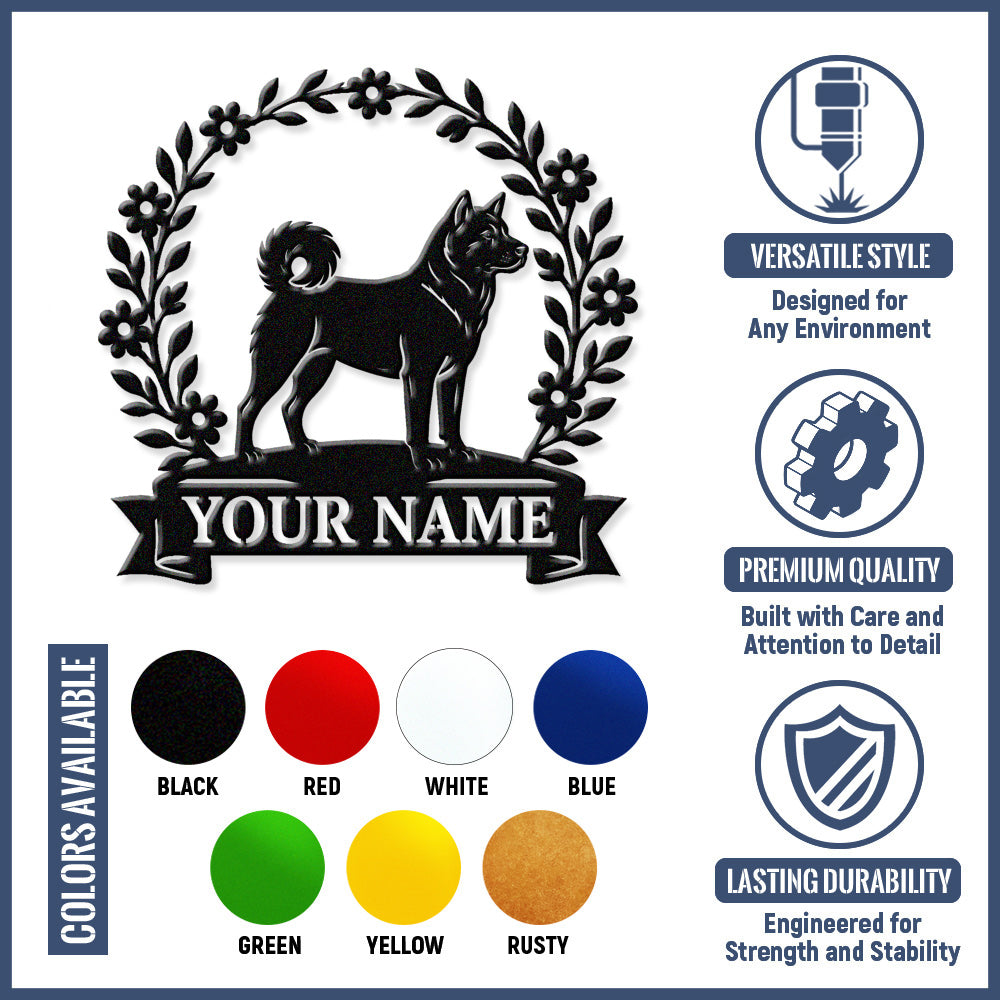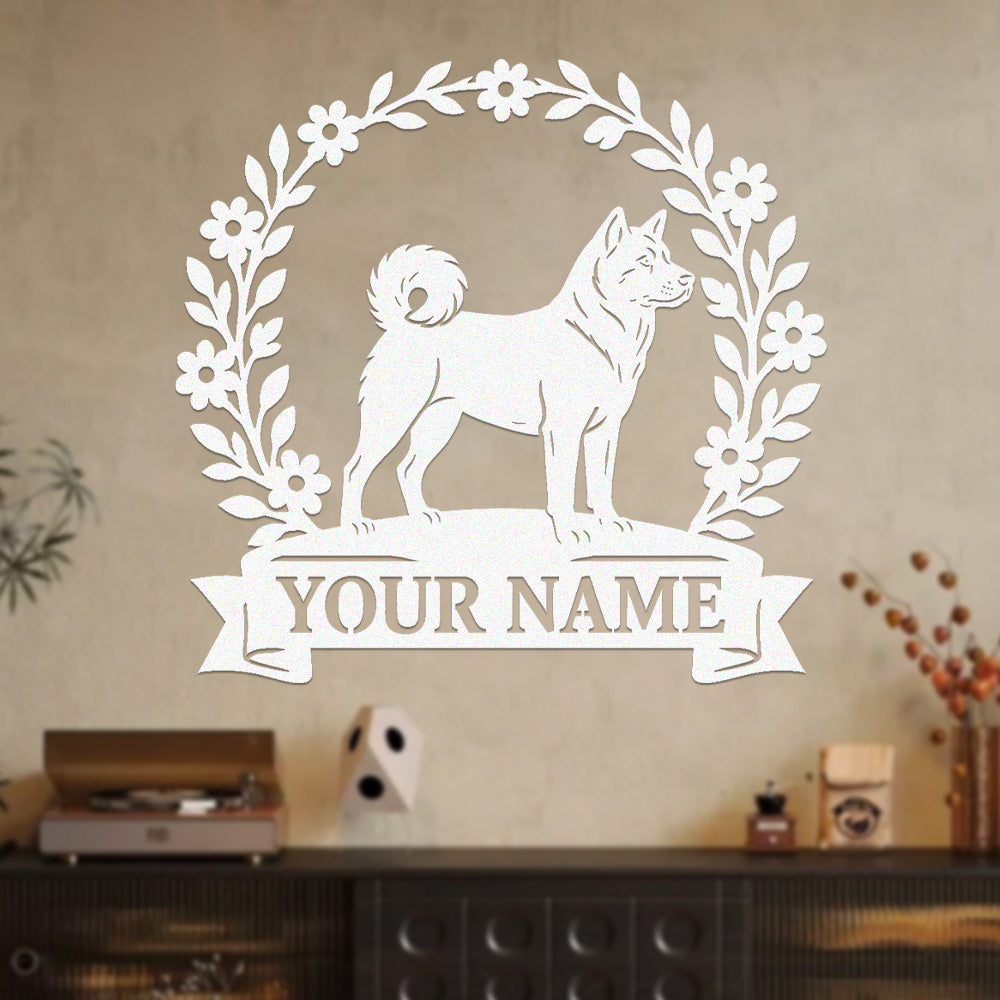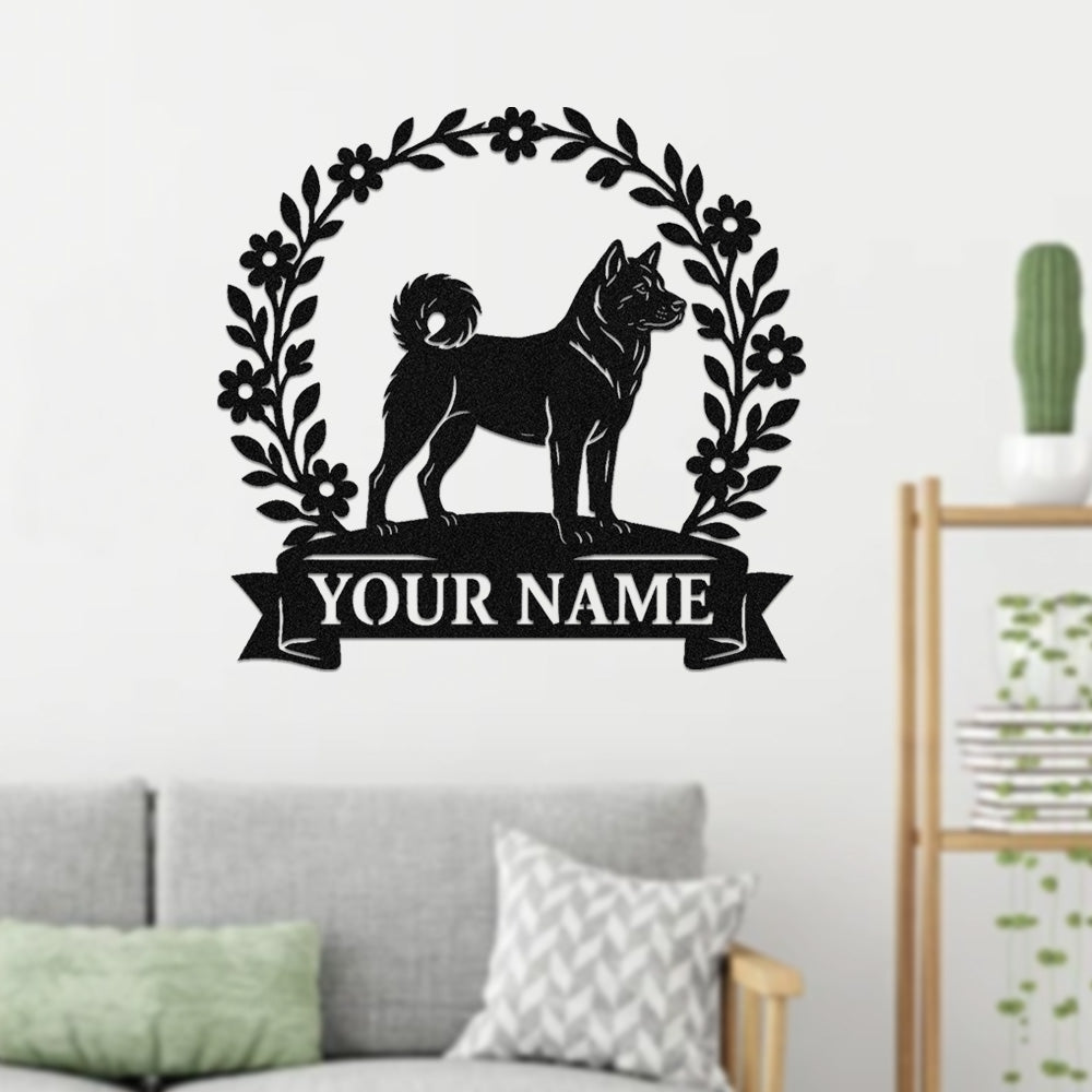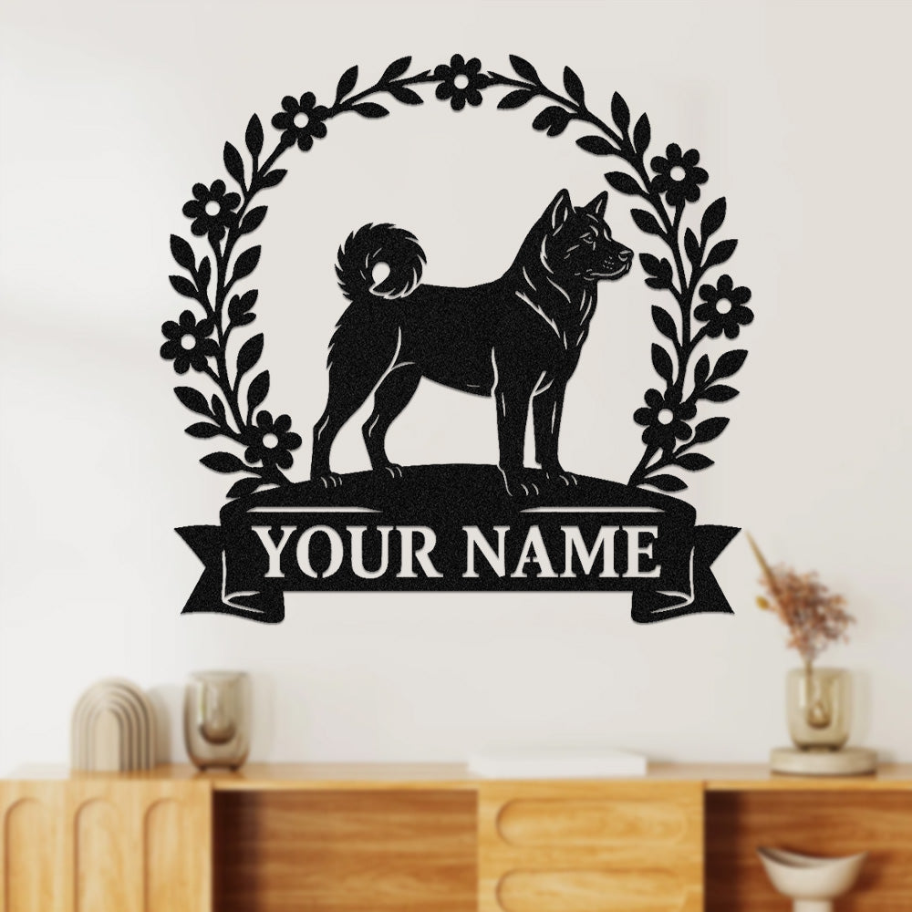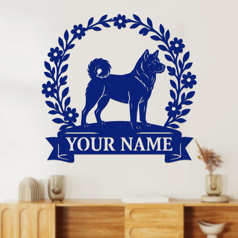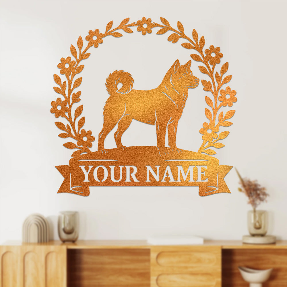 Akita Wreath Metal Wall Art Dog Lover Personalized Memorial Metal Sign