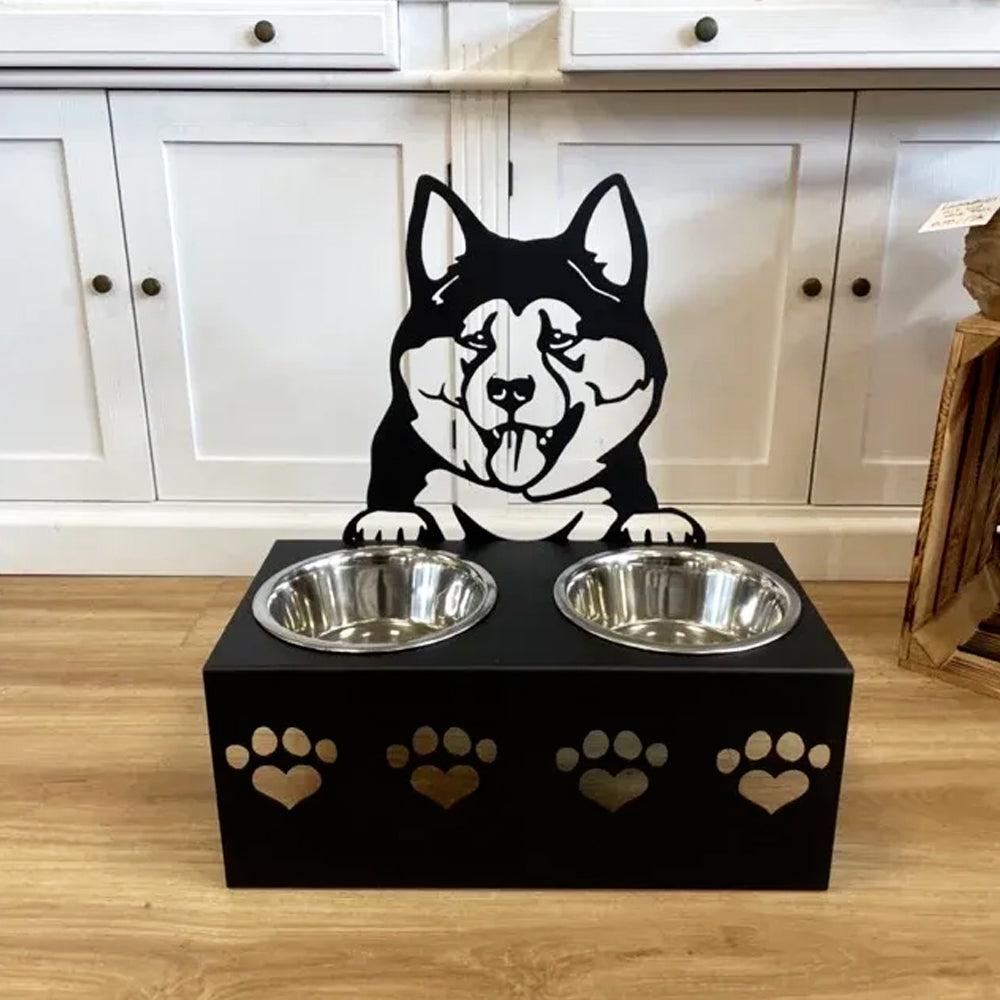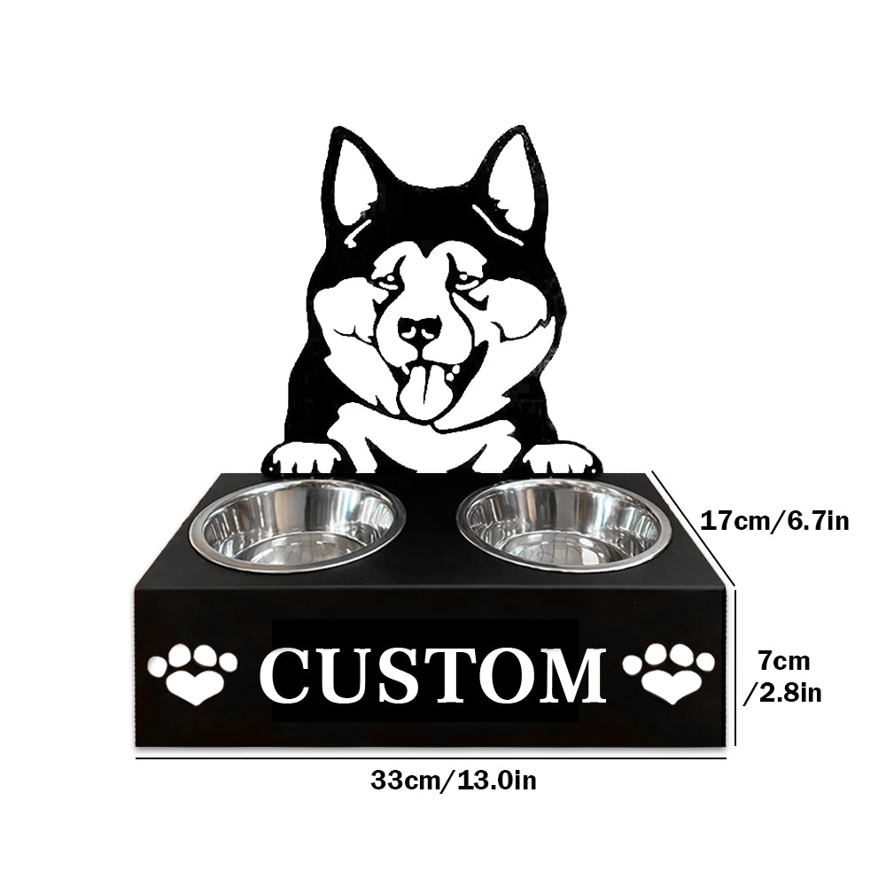 Our metal pet bowl holder features unique lifelike animal designs and customizable name tags, combining functionality with style, making it a great choice for pet owners. Stylish and functional, this pet bowl holder not only enhances your pet's dining experience, but also adds a personal and decorative touch to your home.