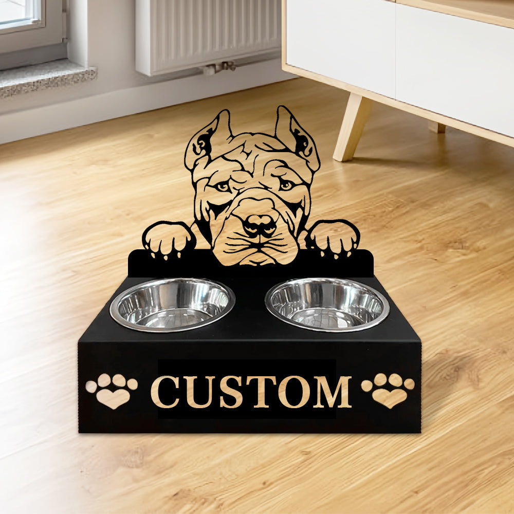 American Bully Personalized Name Pet Food Bowl Holder