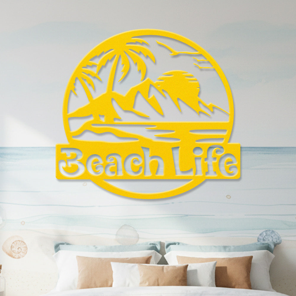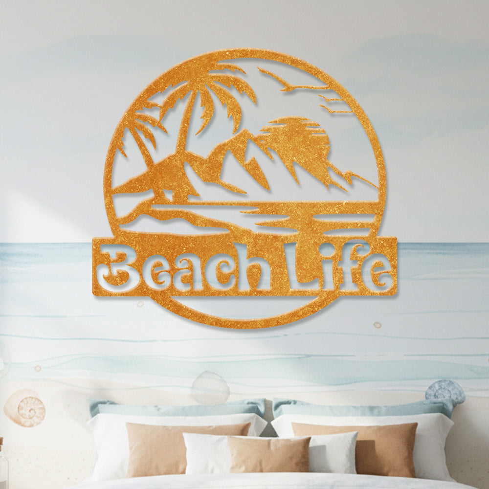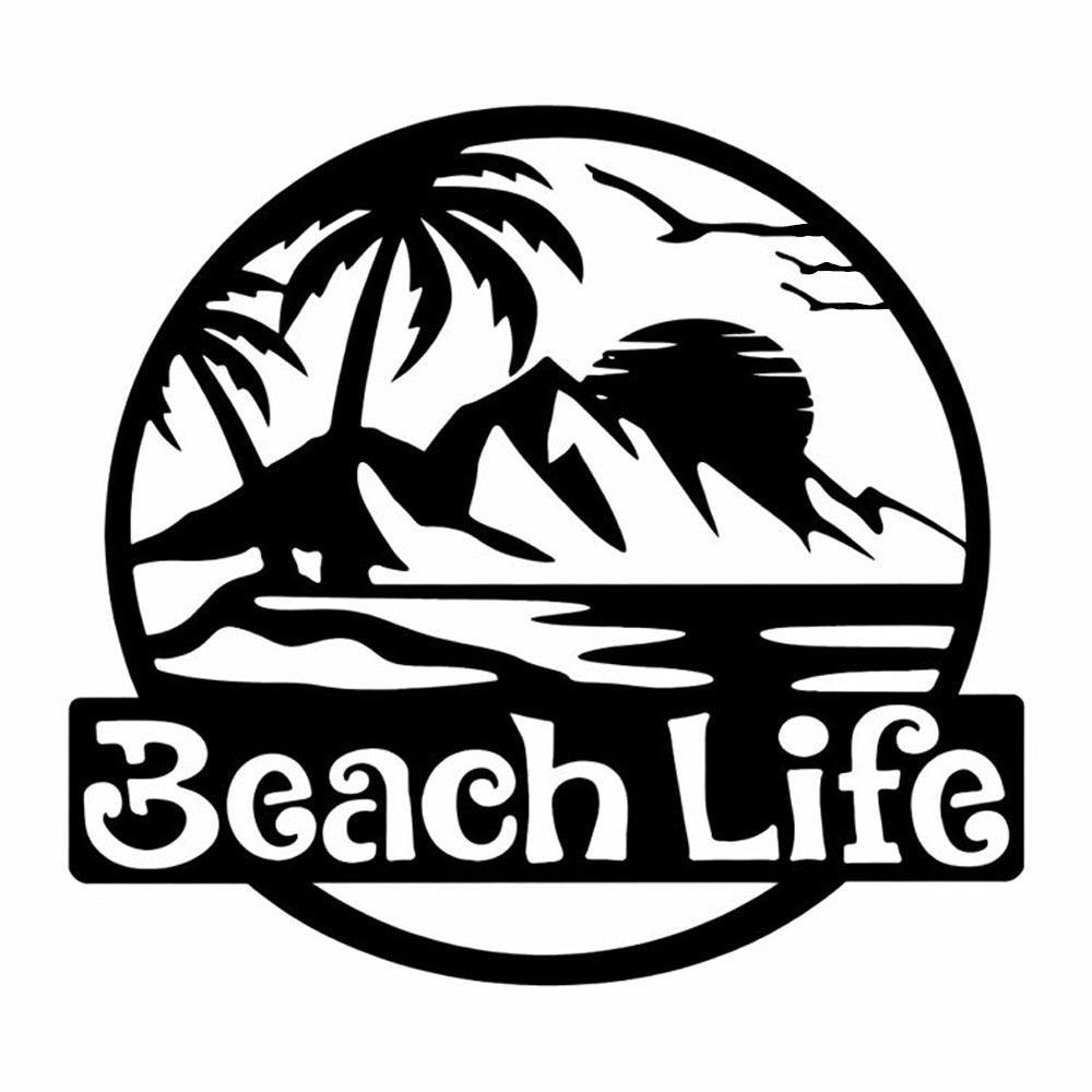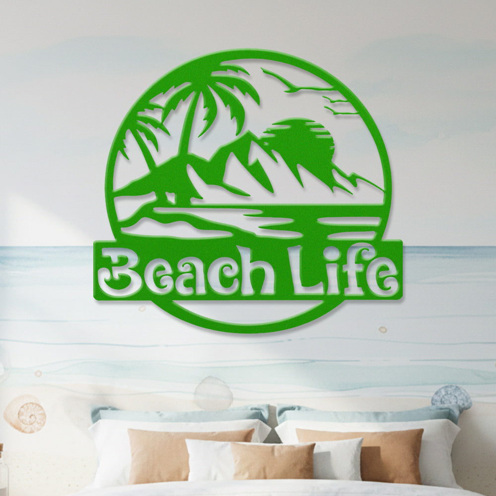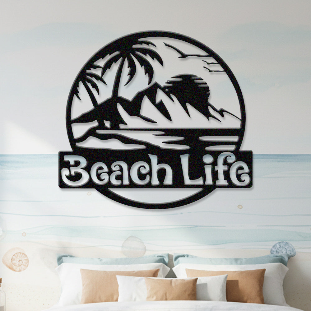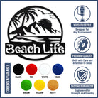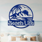 Beach Life Round Metal Wall Art – Tropical Coastal Iron Metal Decor Sign