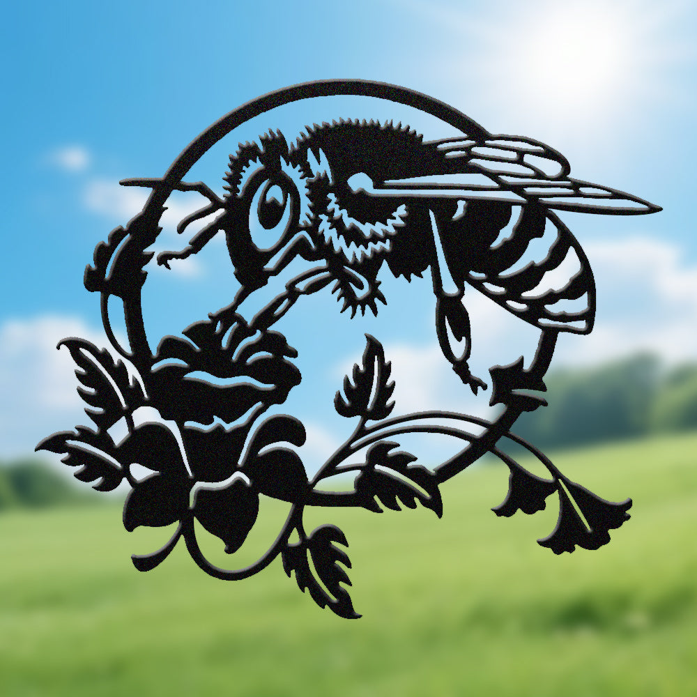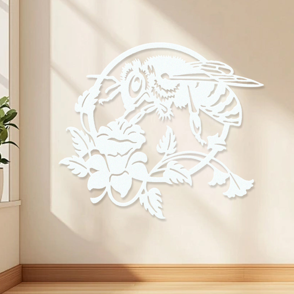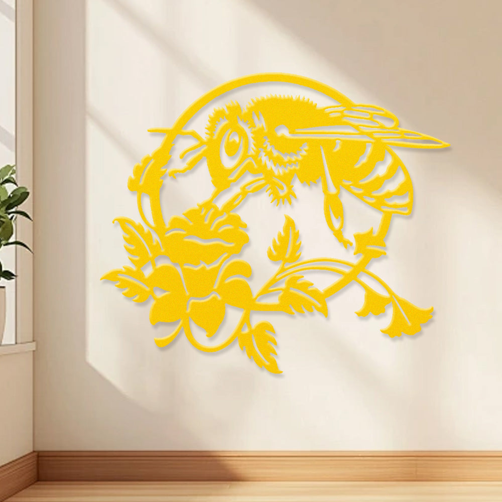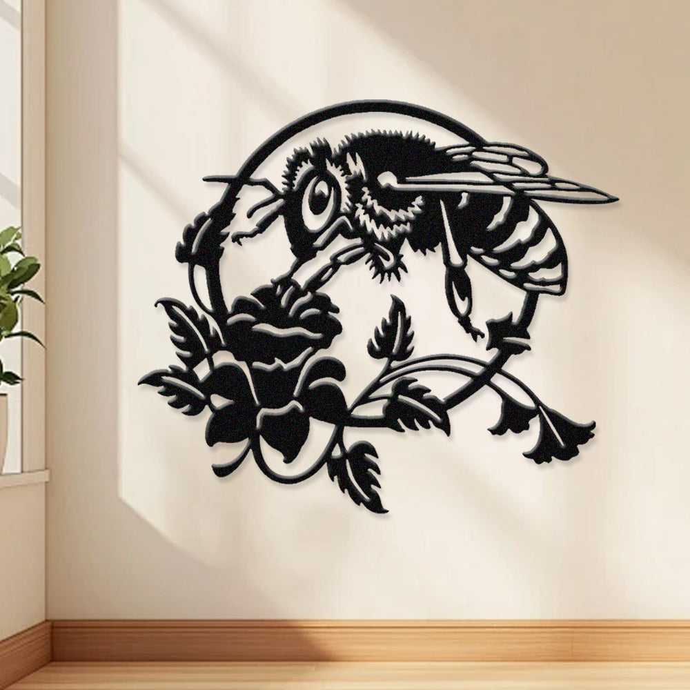 Bee and Rose Metal Wall Art - Iron Nature Decor with Floral Accents