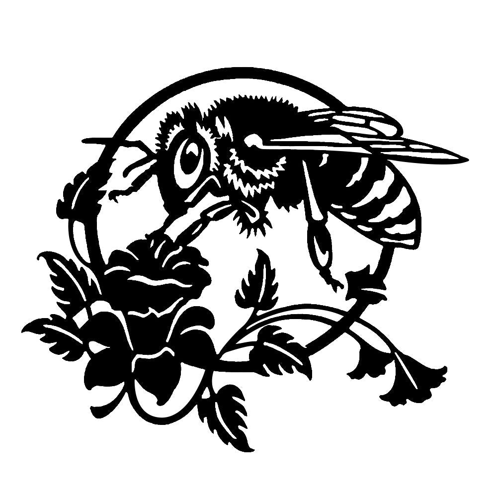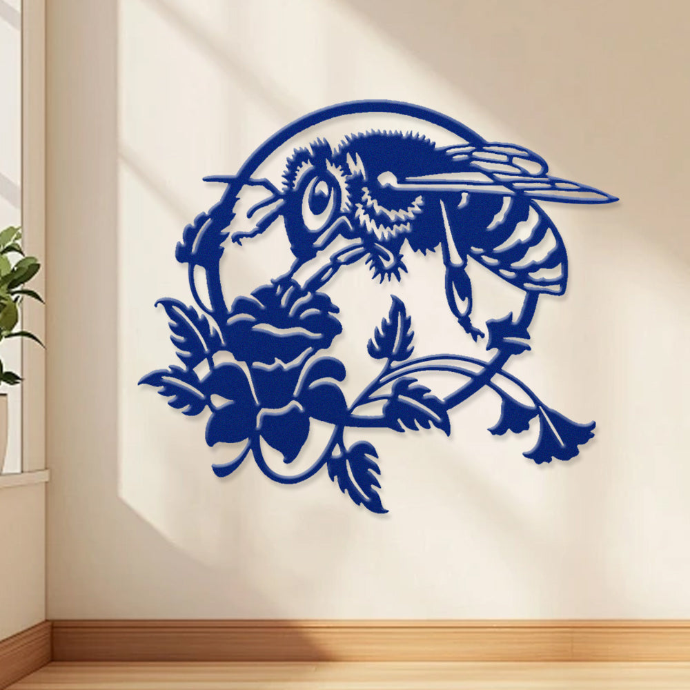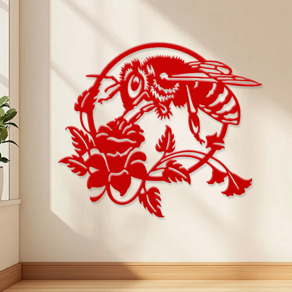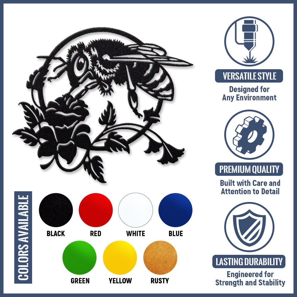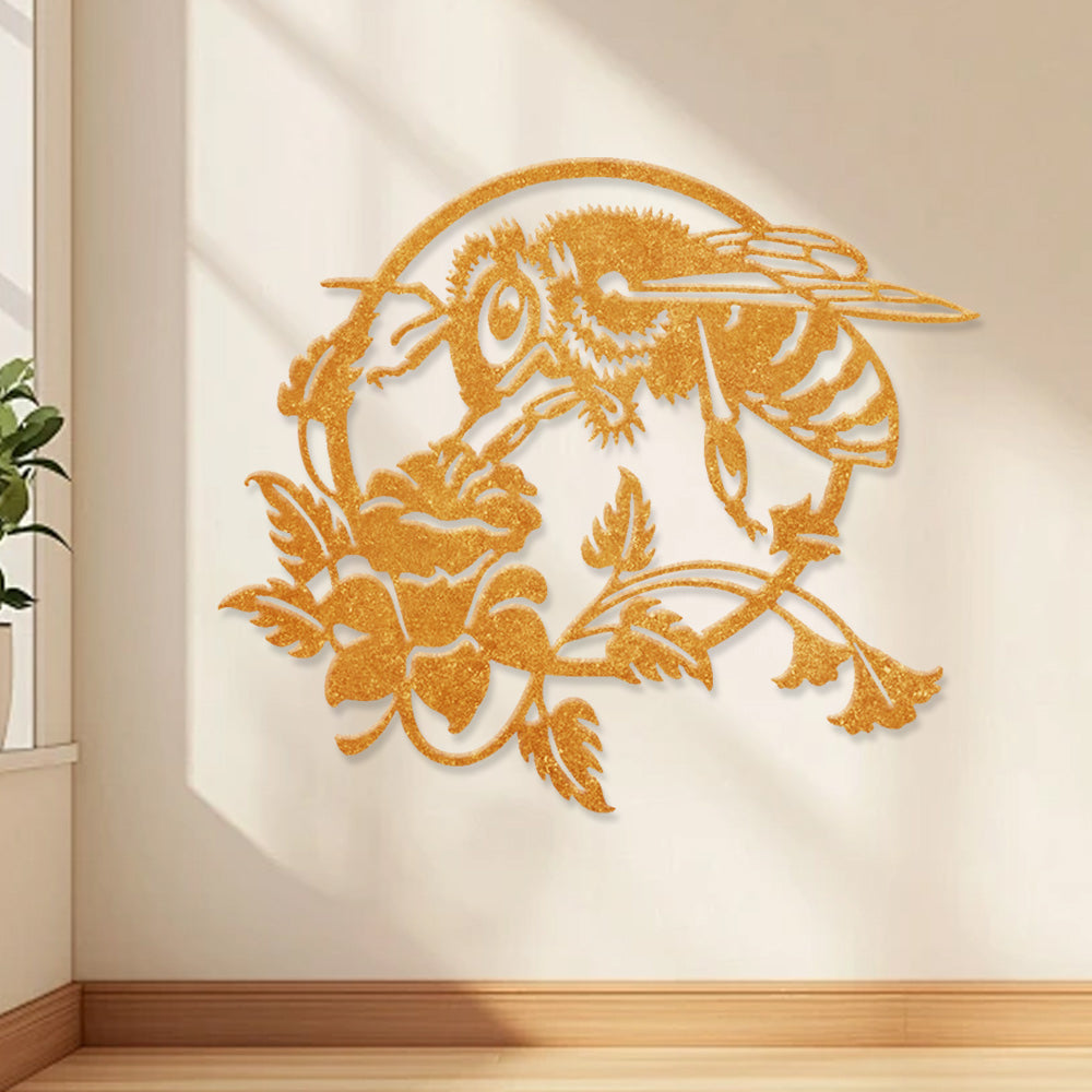 Bee and Rose Metal Wall Art - Iron Nature Decor with Floral Accents