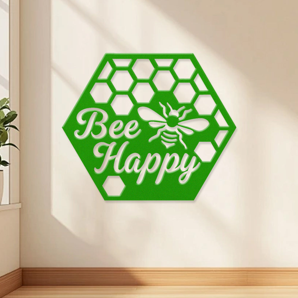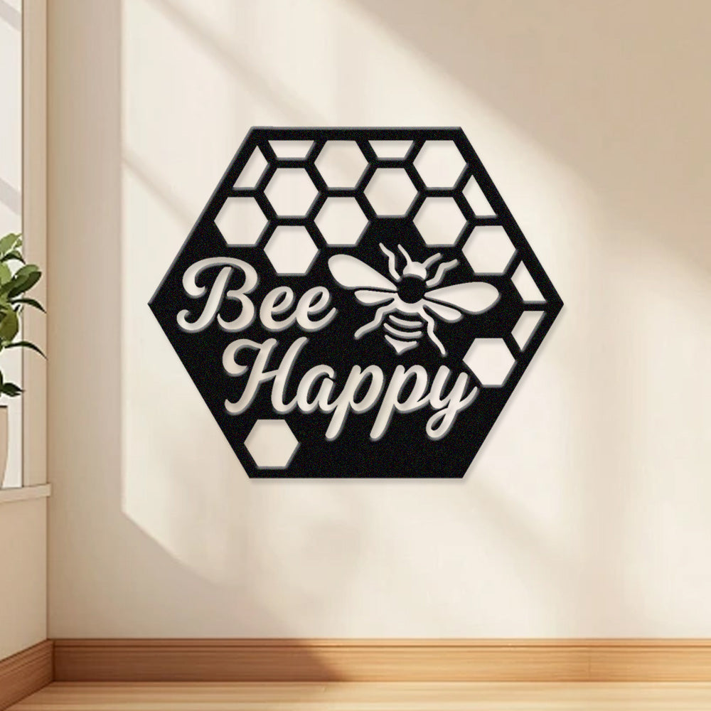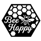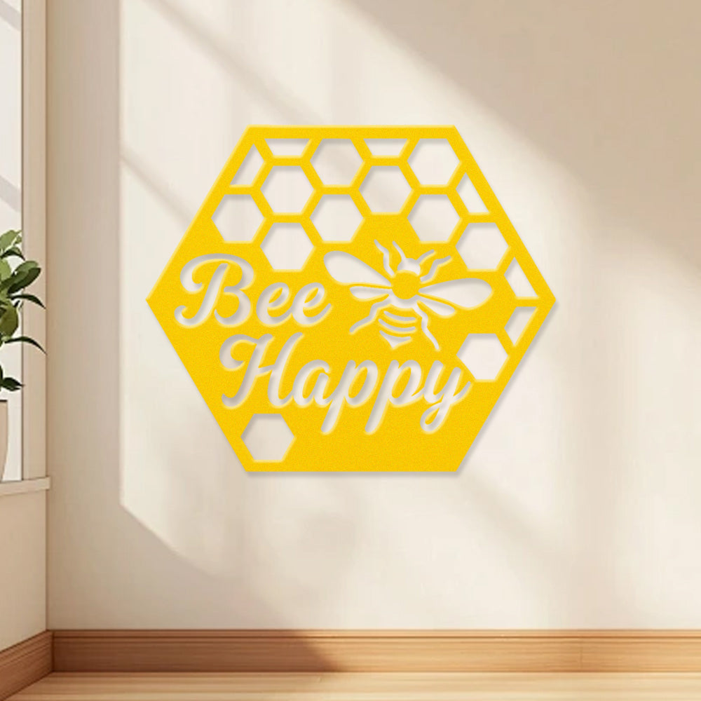 Bee Happy Metal Wall Art - Iron Honeycomb Decor with Bee Design