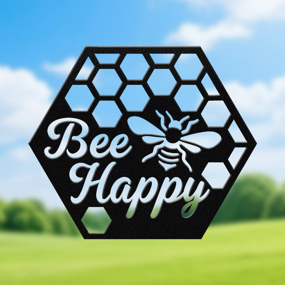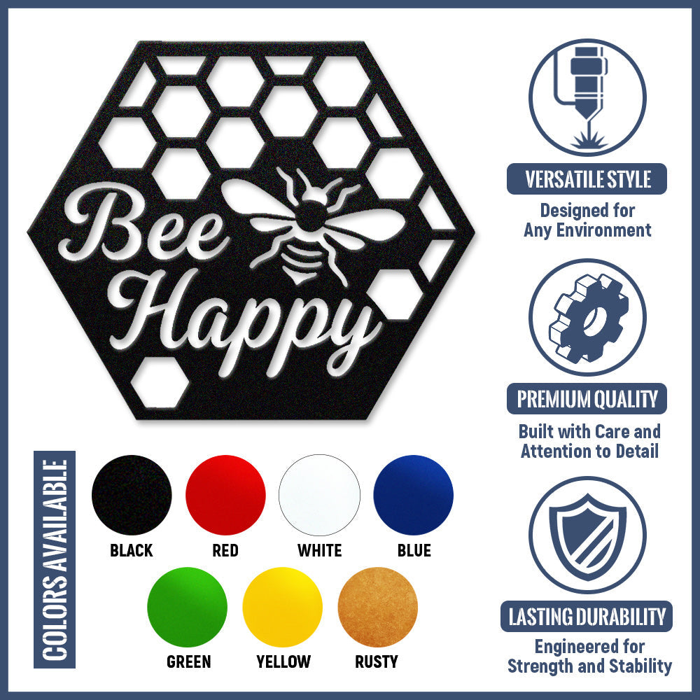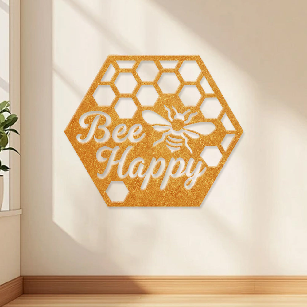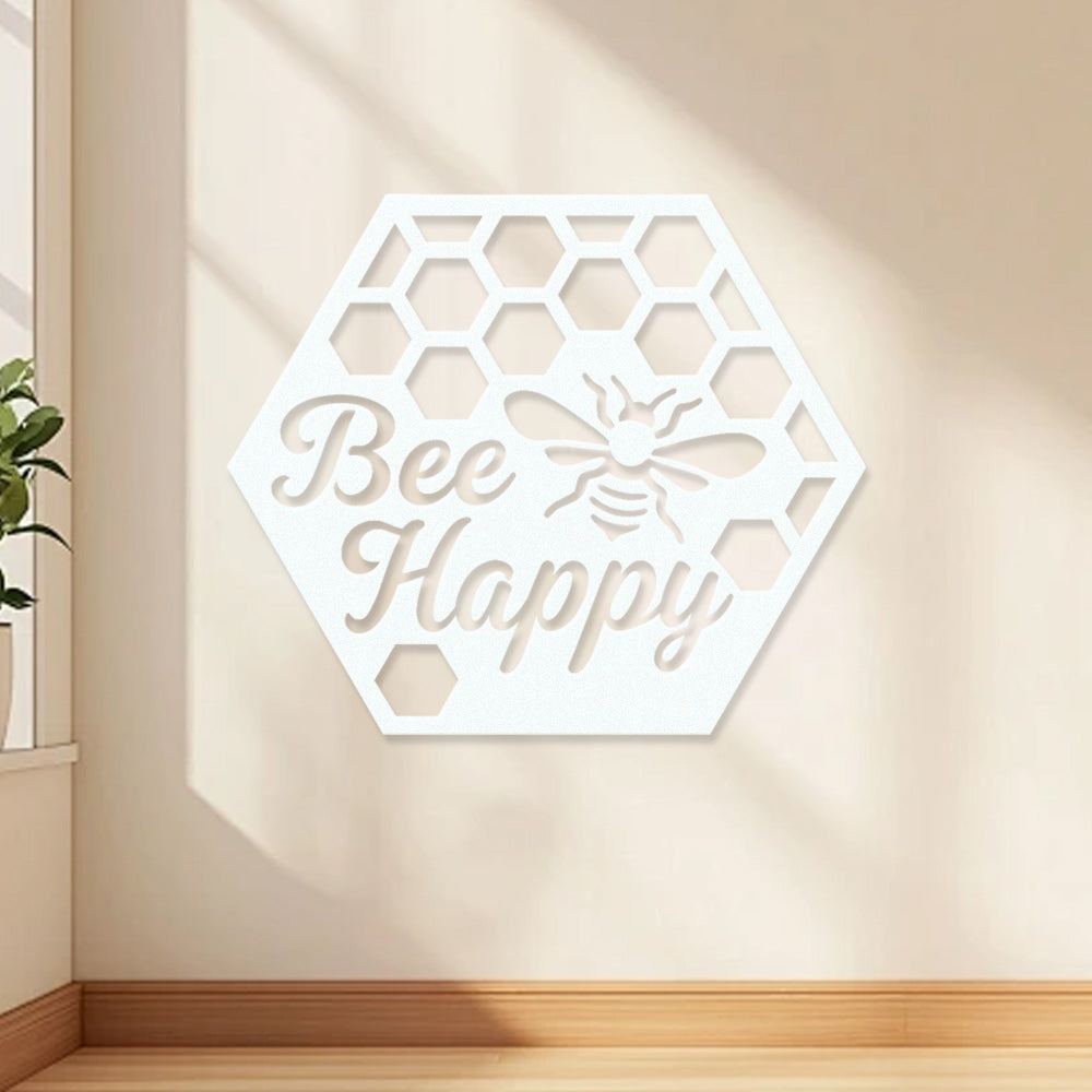 Bee Happy Metal Wall Art - Iron Honeycomb Decor with Bee Design