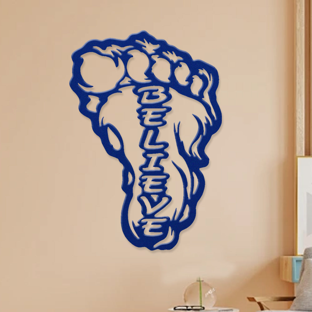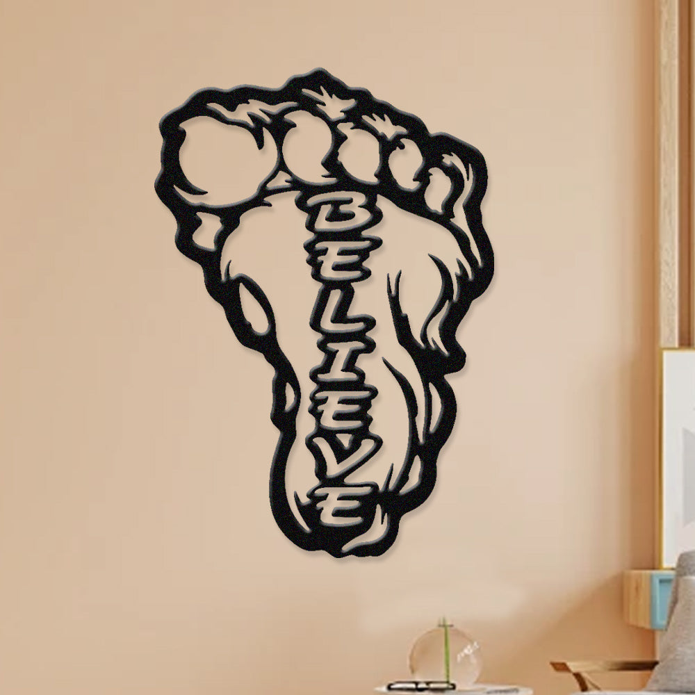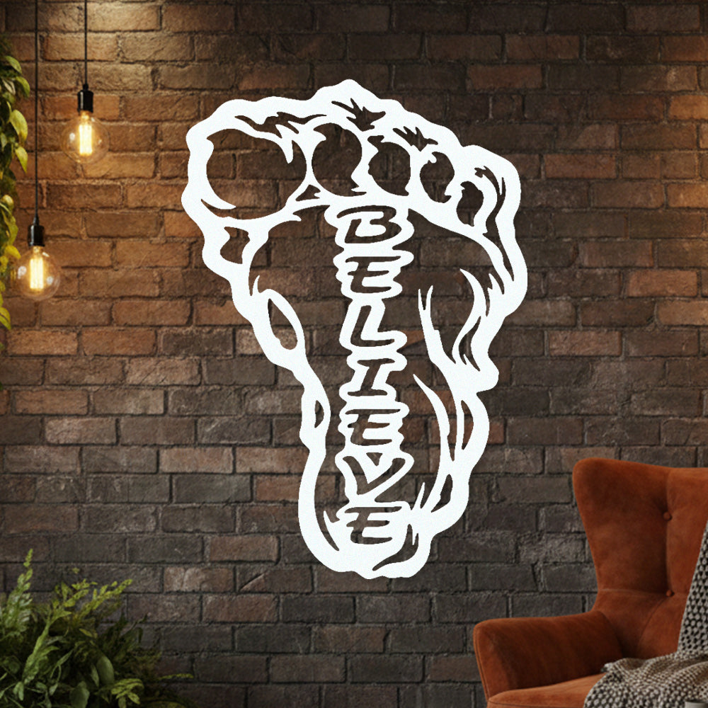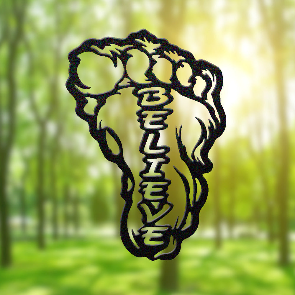 Bigfoot Footprint “Believe” Metal Wall Art – Sasquatch Inspired Wall Decor