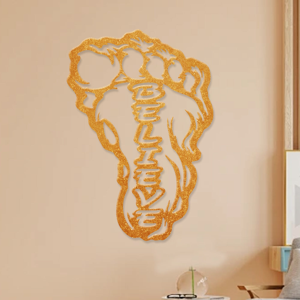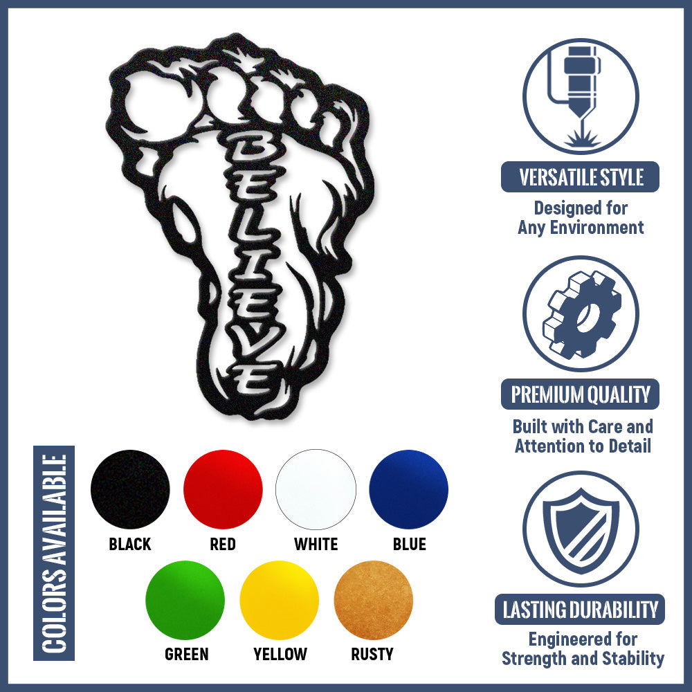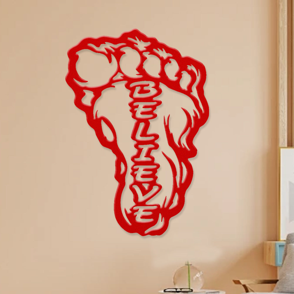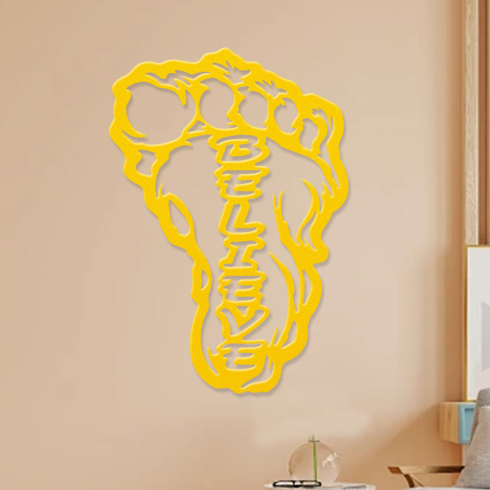 Bigfoot Footprint “Believe” Metal Wall Art – Sasquatch Inspired Wall Decor