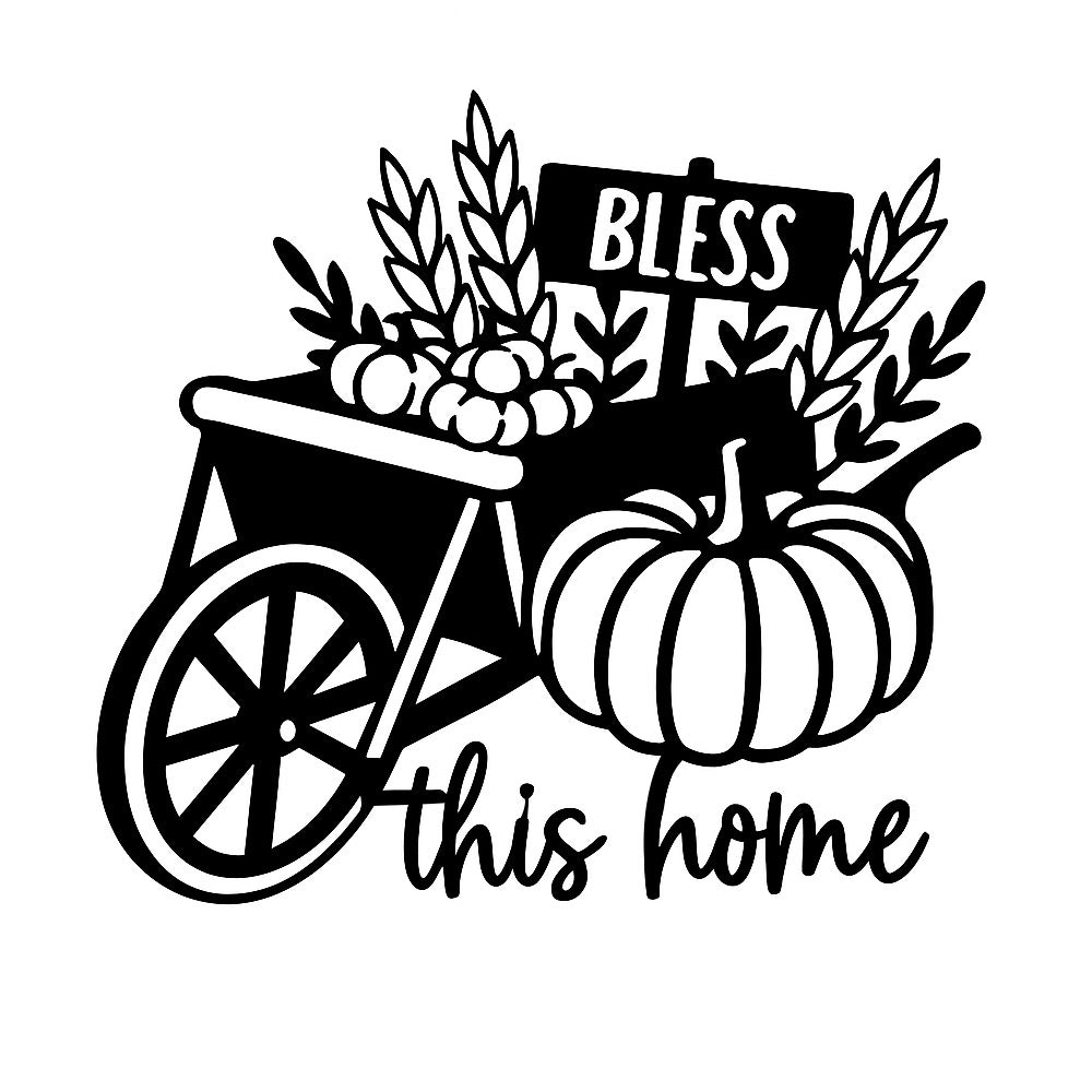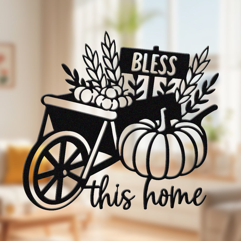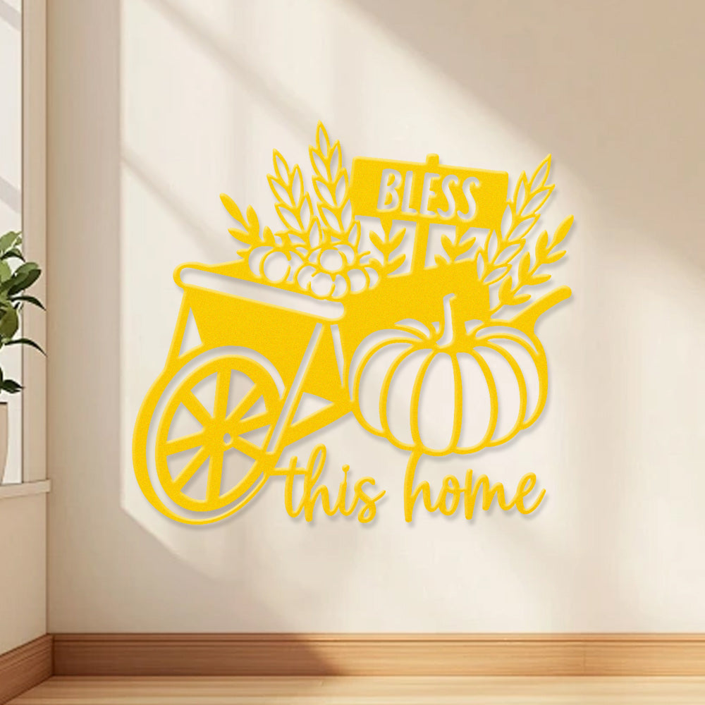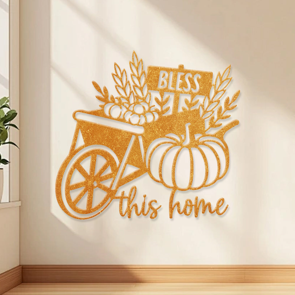 Bless This Home Metal Wall Art - Iron Pumpkin and Wheelbarrow Decor