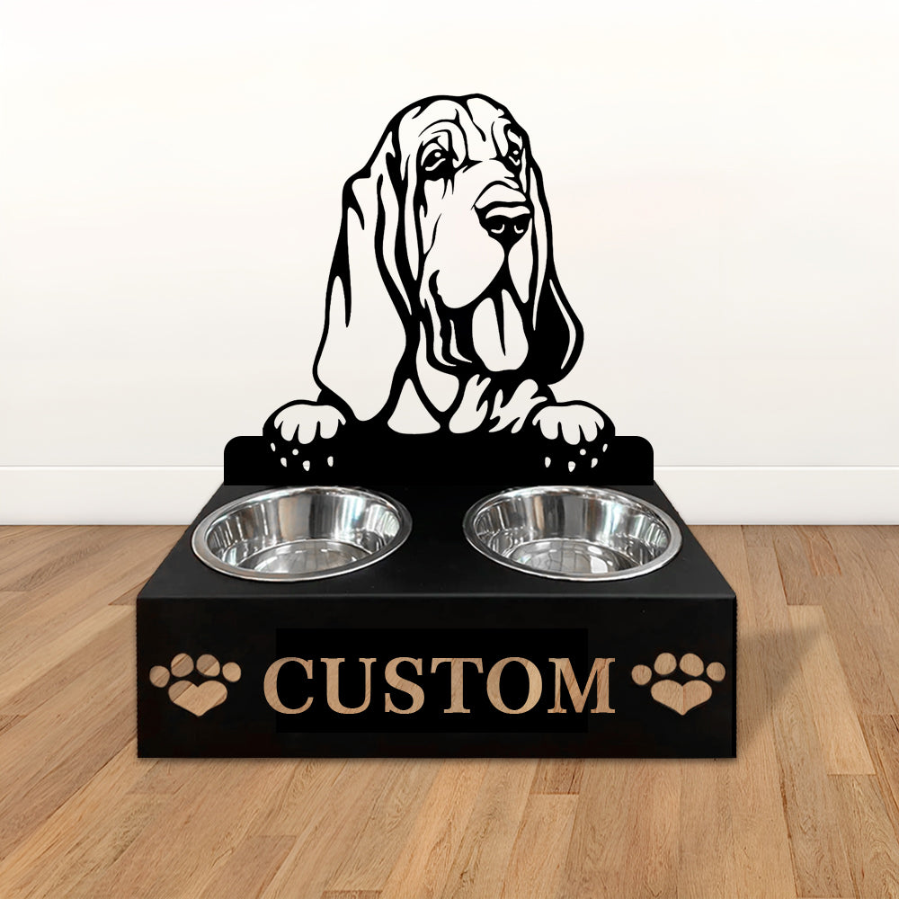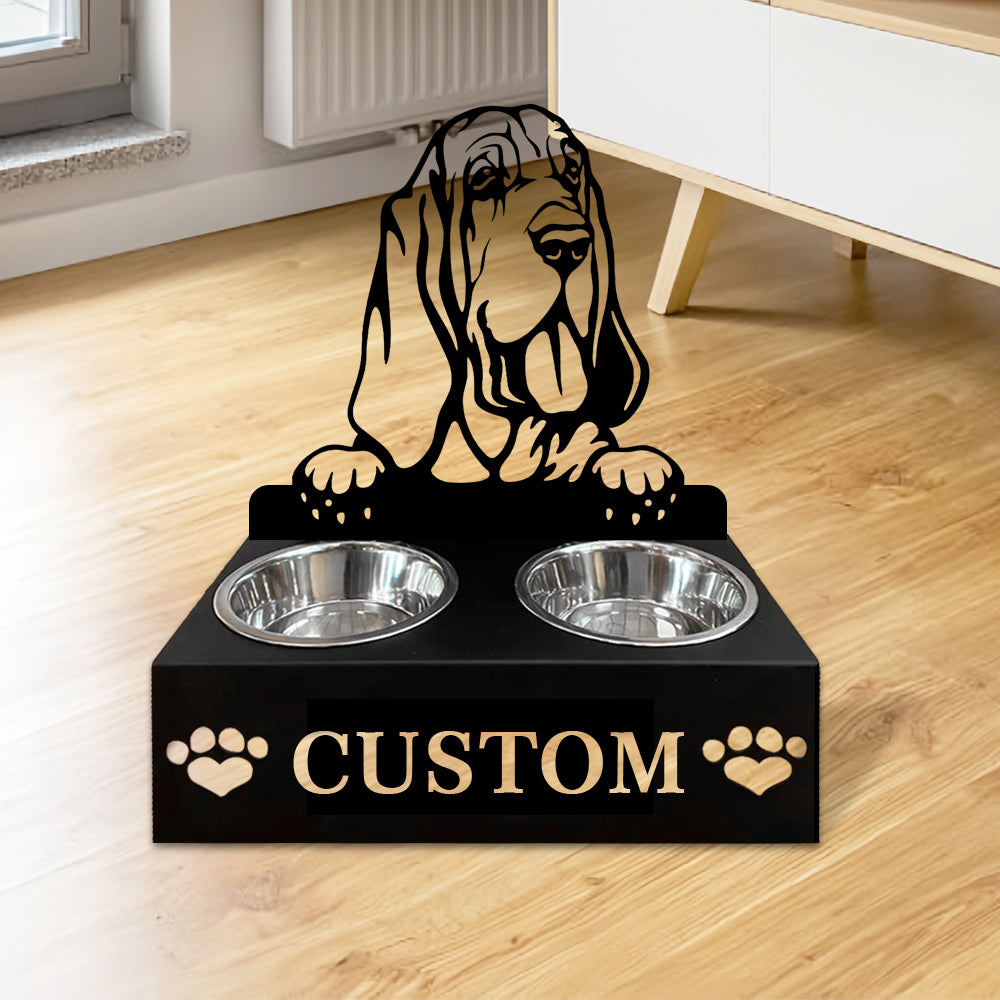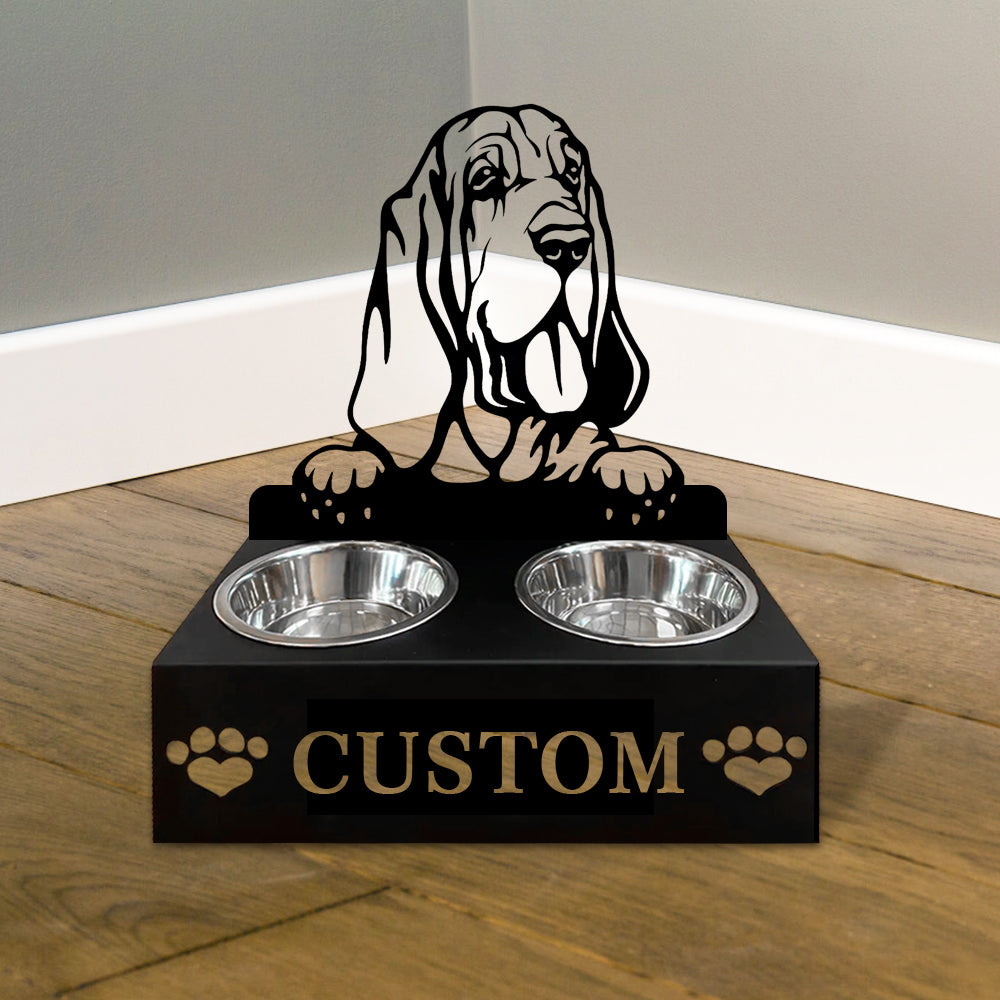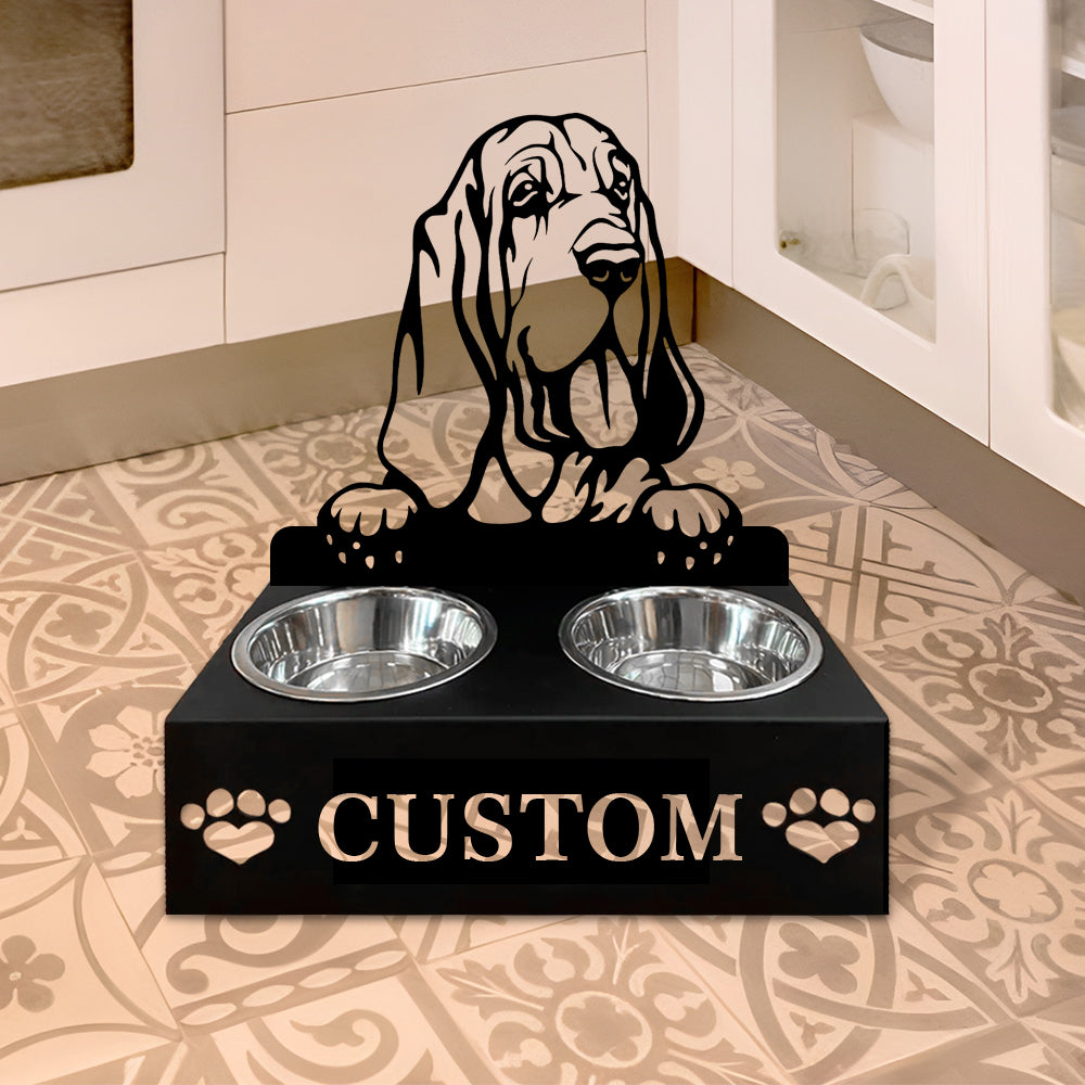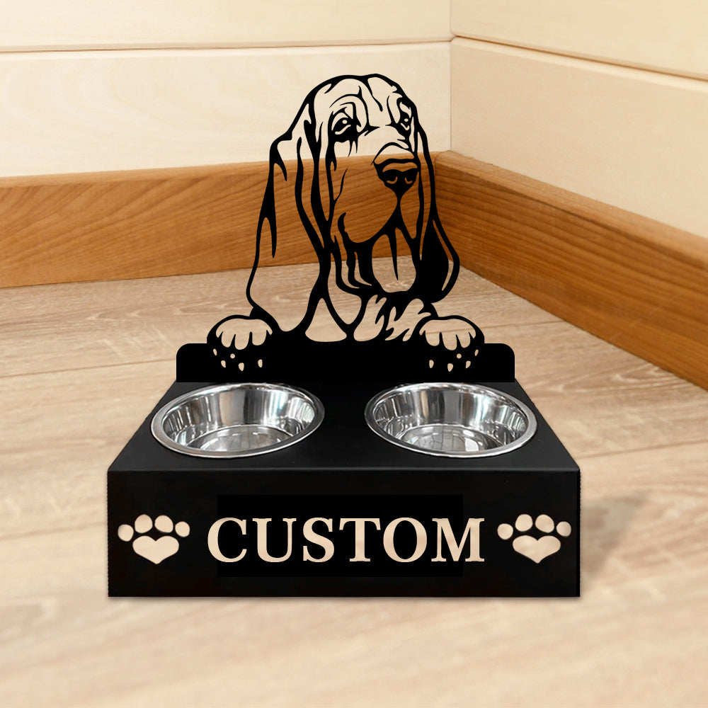Bloodhound Dog Personalized Name Pet Food Bowl Holder