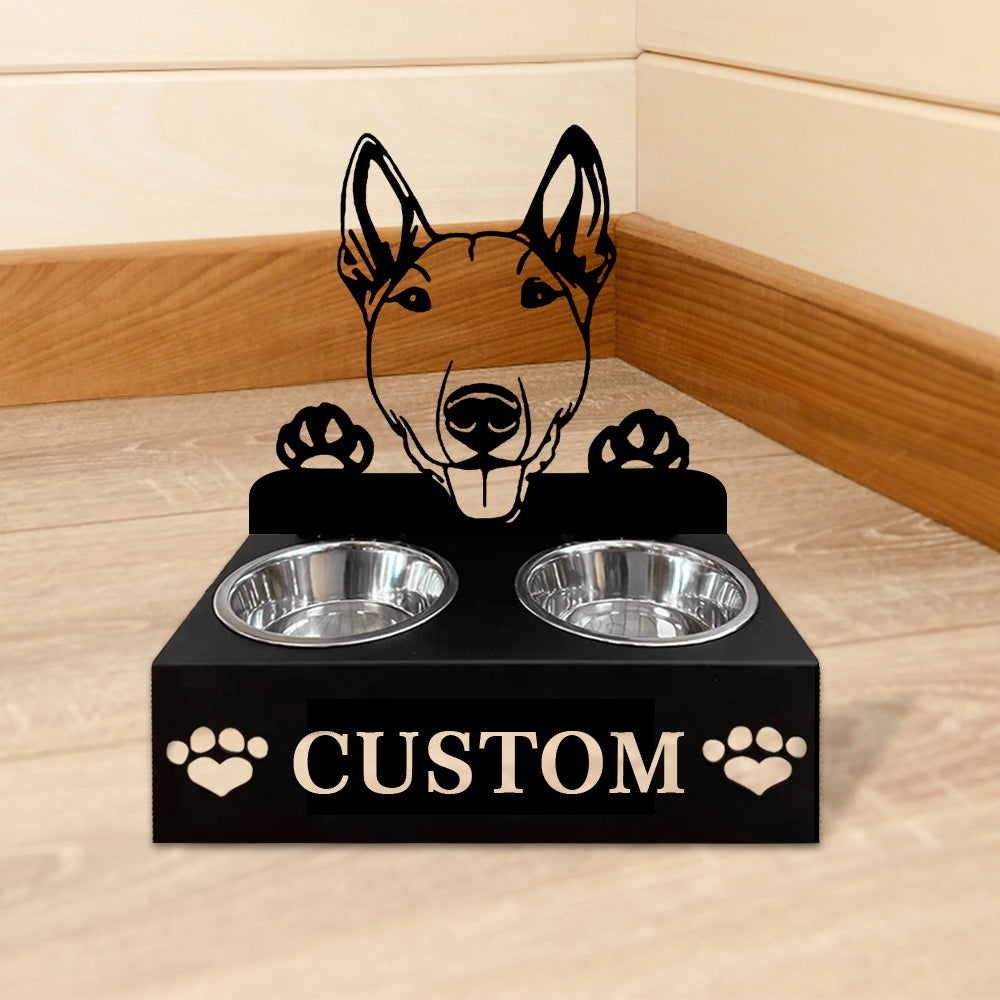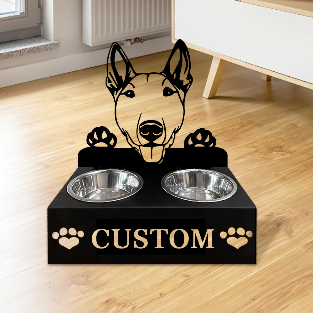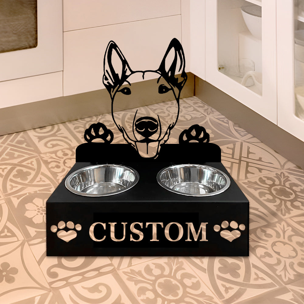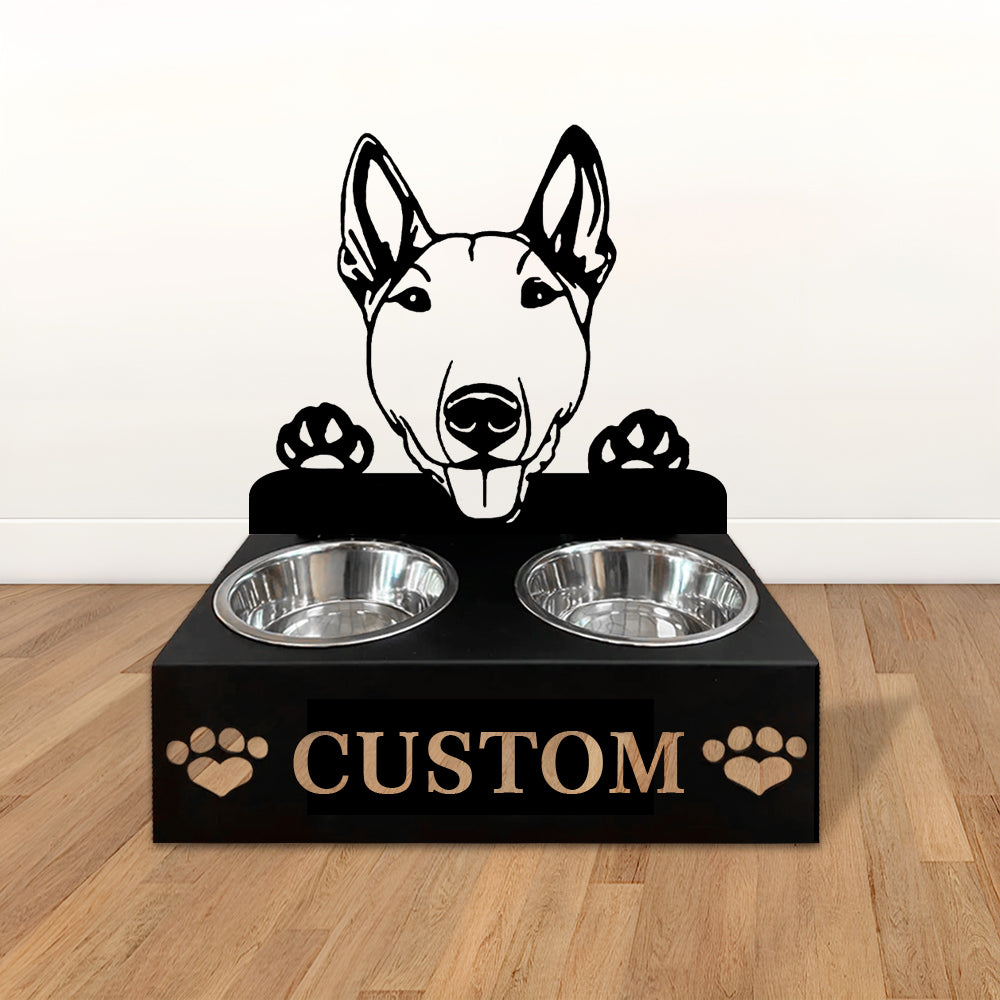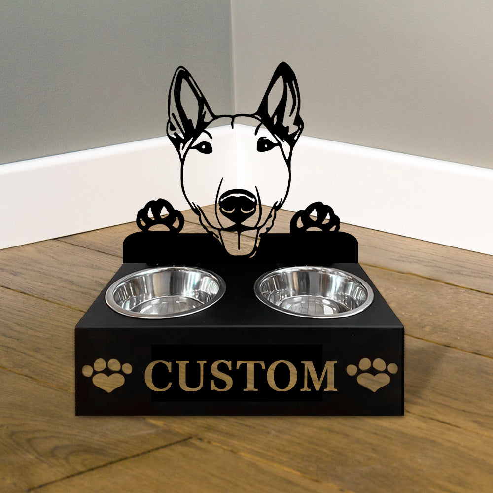Bull Terrier Dog Personalized Name Pet Food Bowl Holder