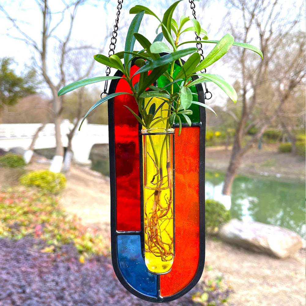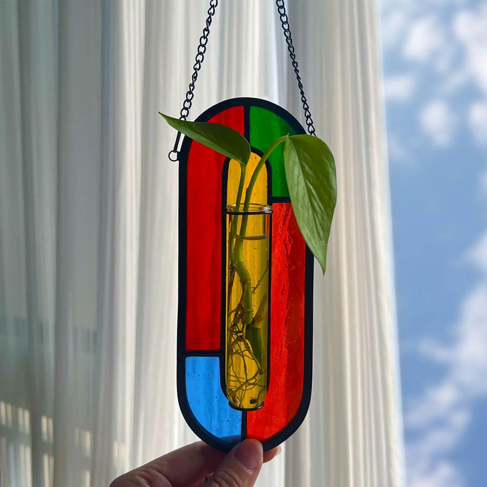 Candy Colors Stained Glass Hanging Propagation Vase - Colorful Sun Catcher Plant Stand