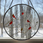Cardinal Birds Snowy Forest Sun Catcher Stained Glass Window Hanging Decoration