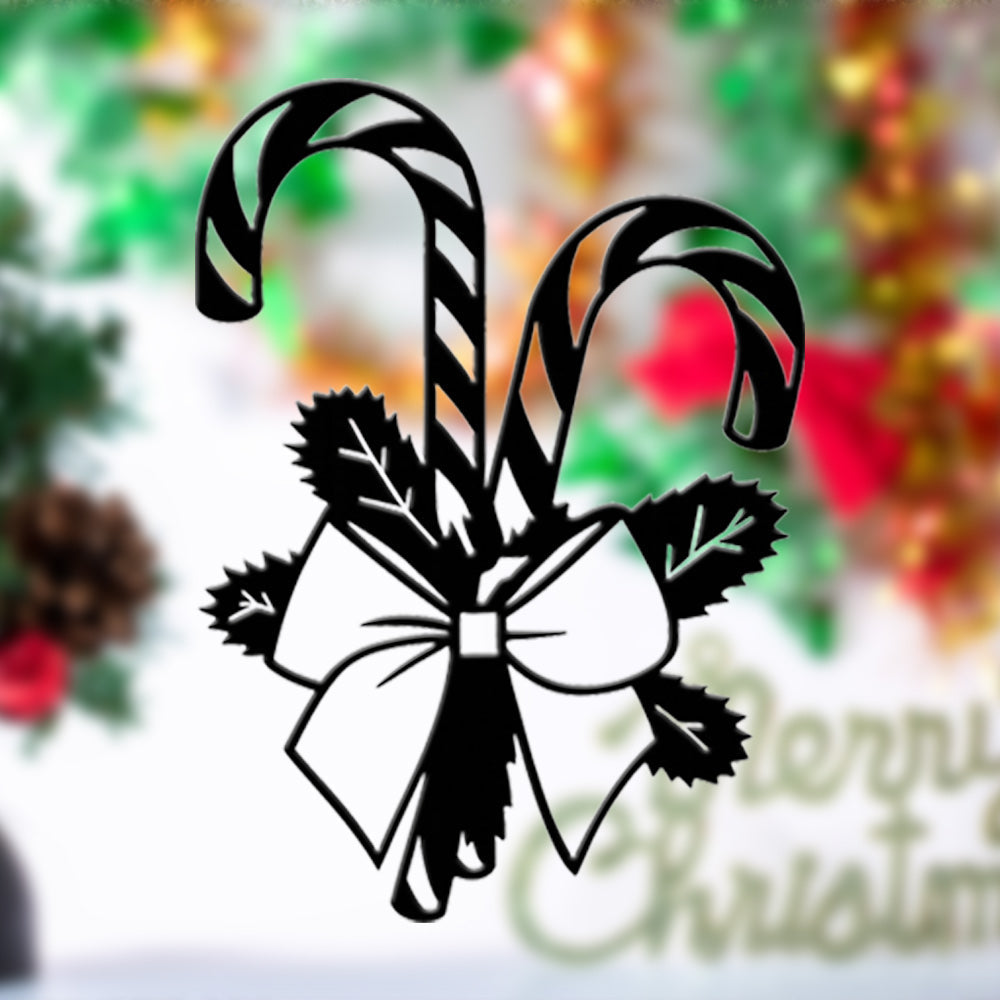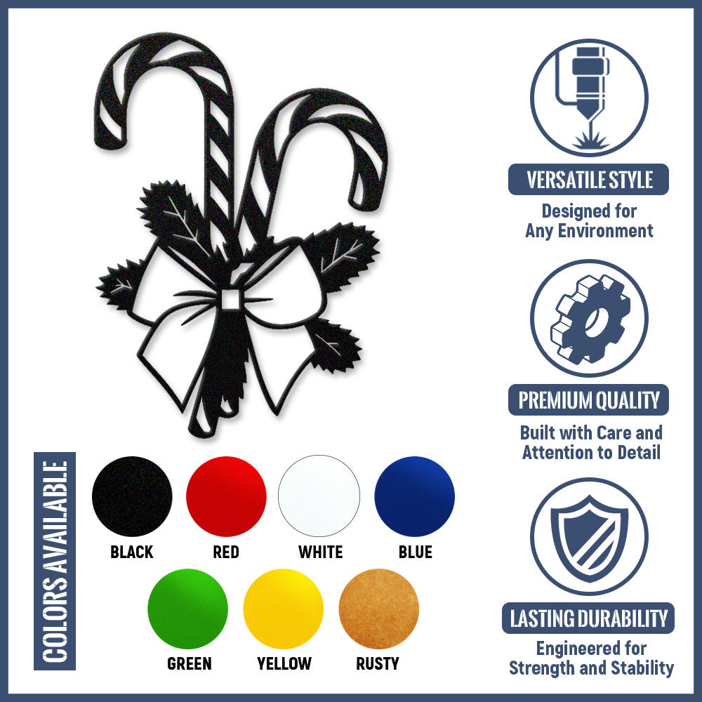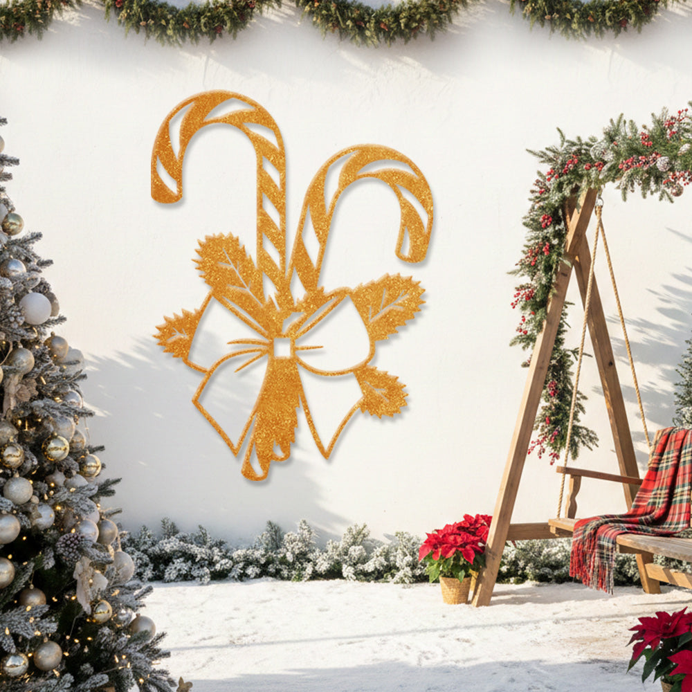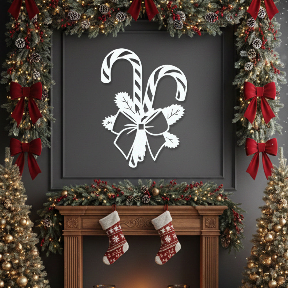 Christmas Candy Cane Metal Wall Art – Festive Bow & Pine Holiday Metal Decor Sign