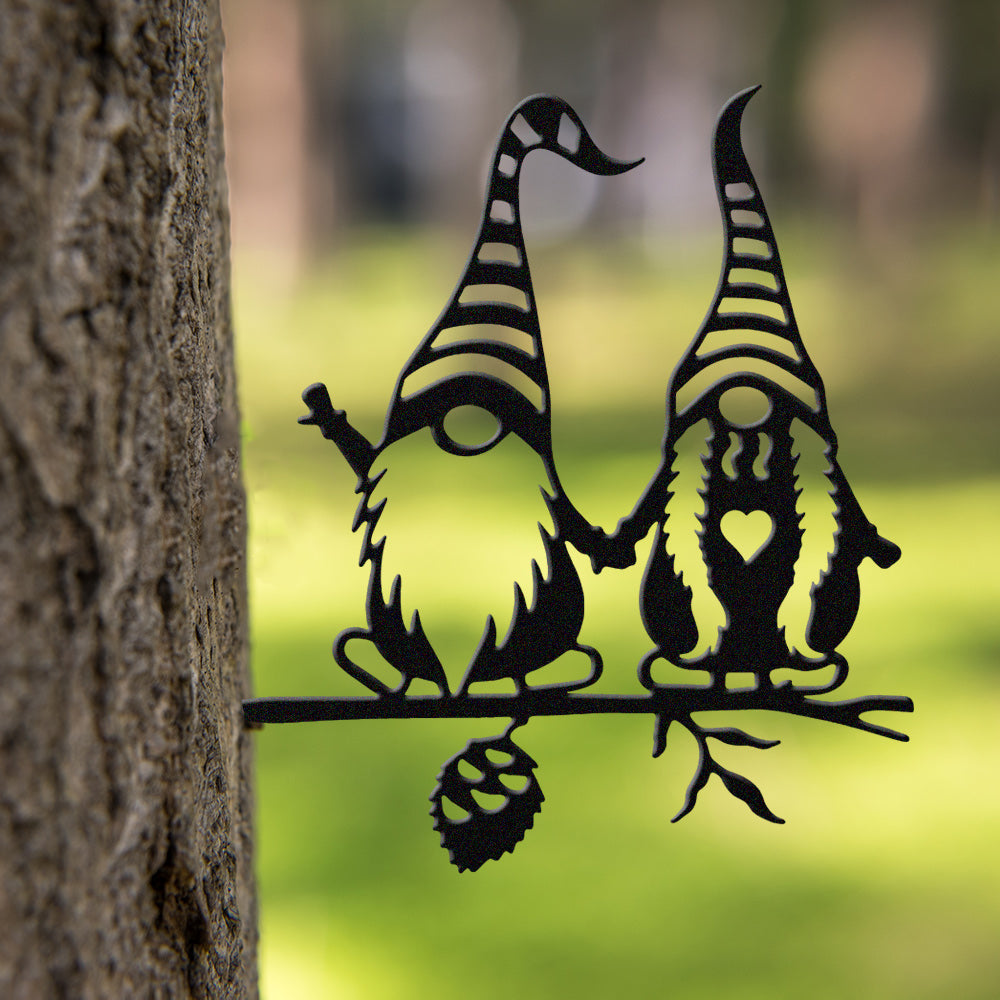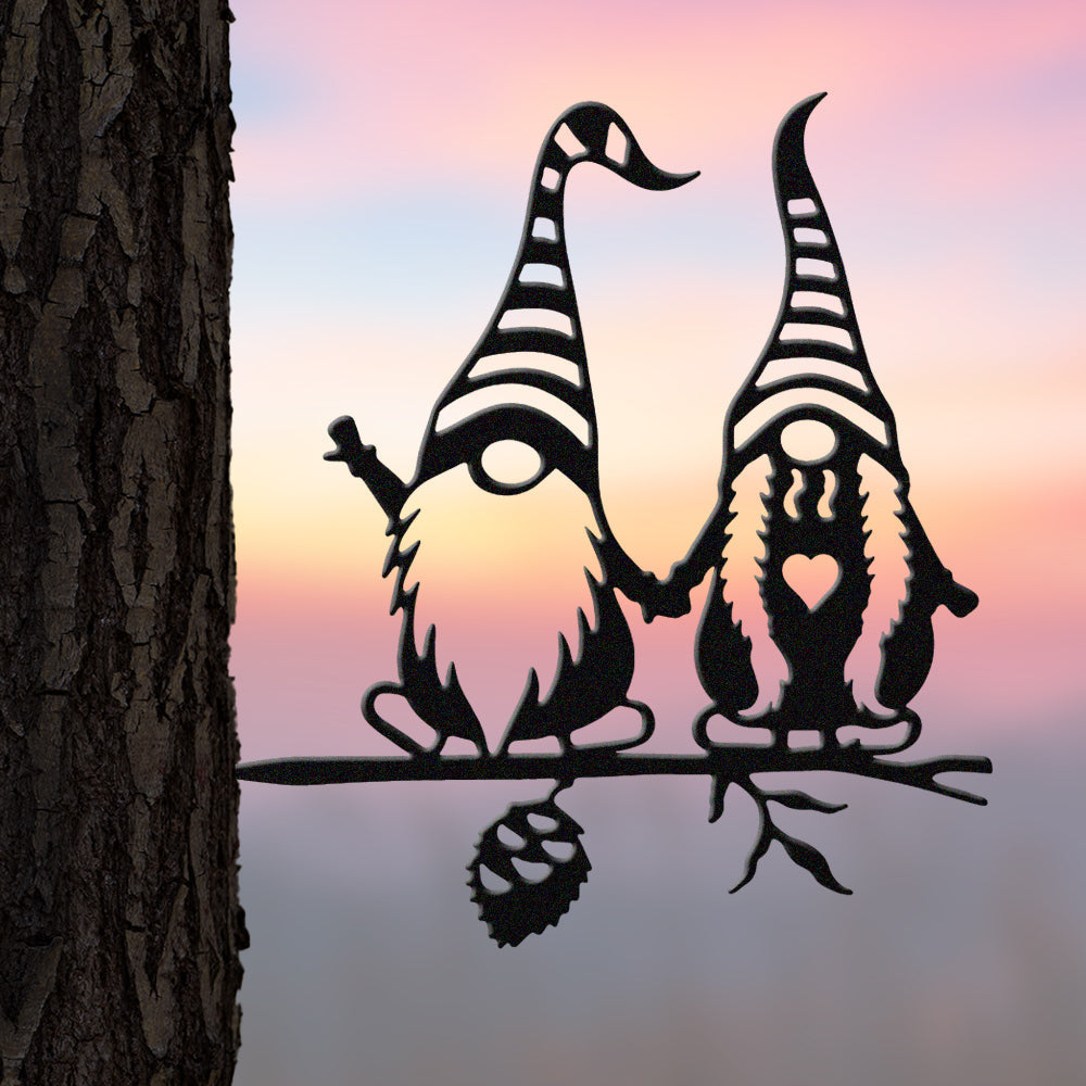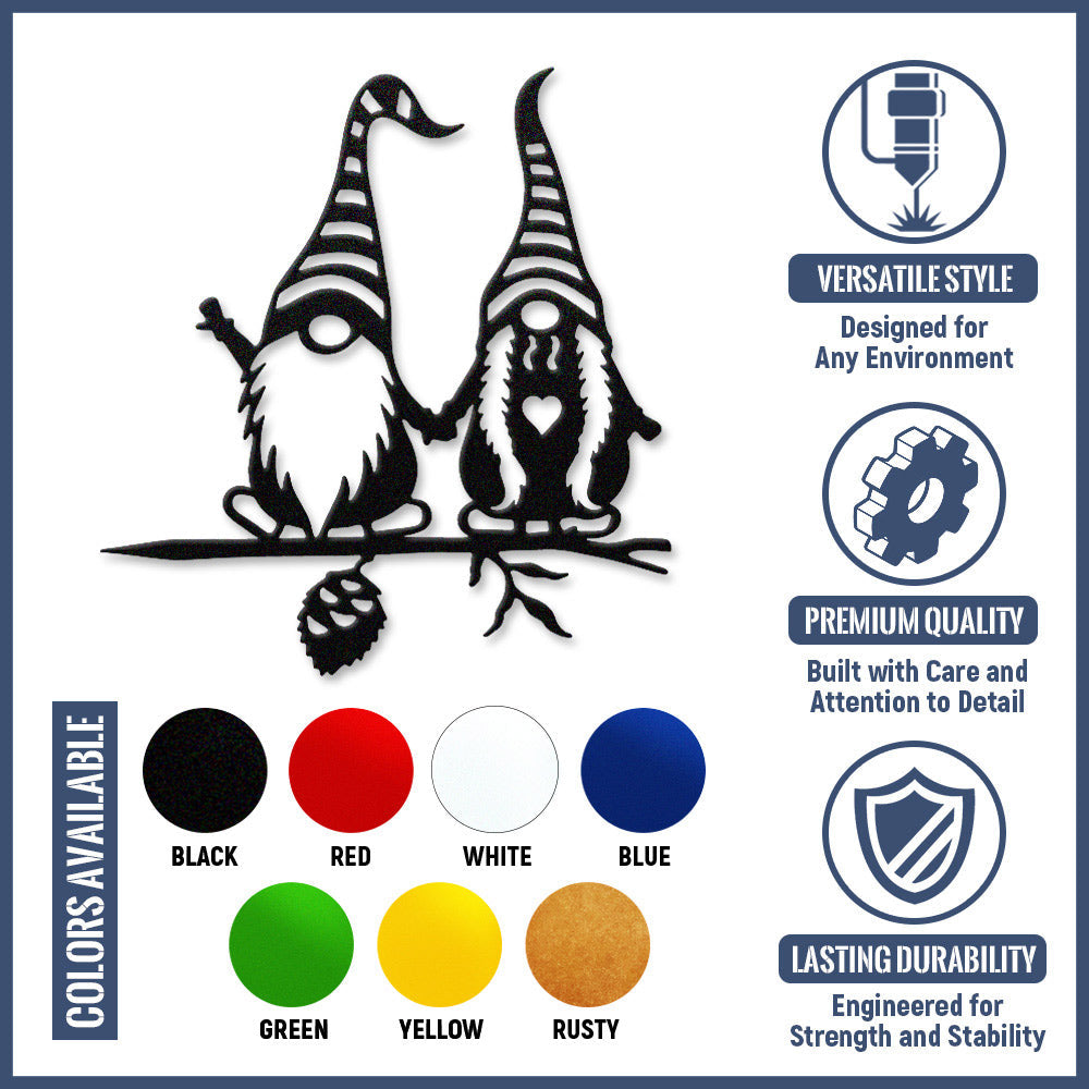 Christmas Gnome Couple Metal Wall Art – Romantic Holiday Iron Metal Decor