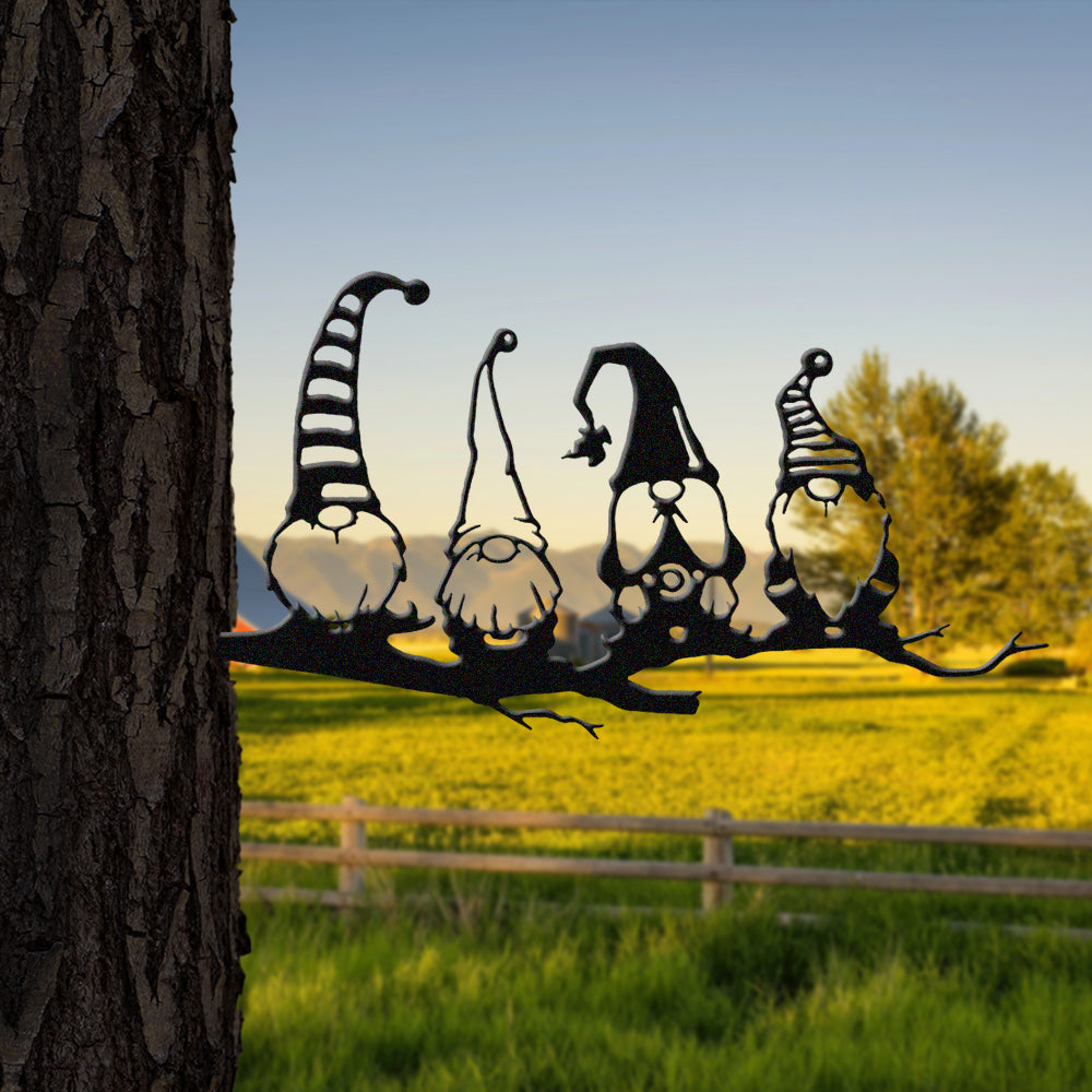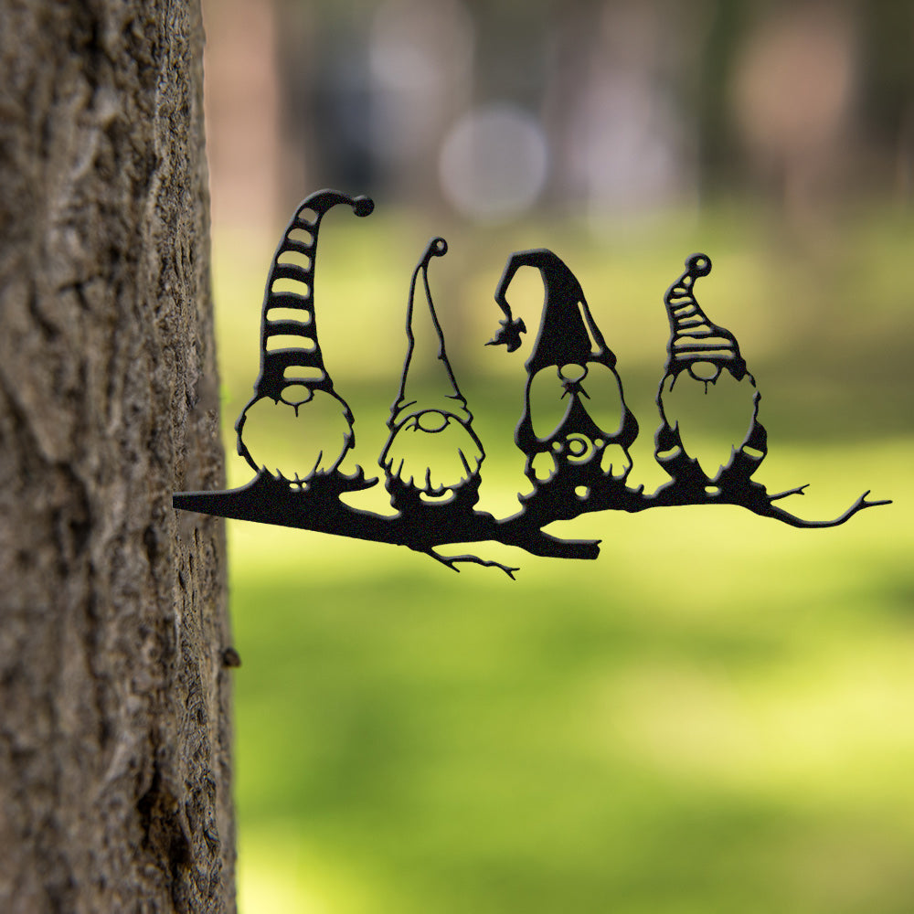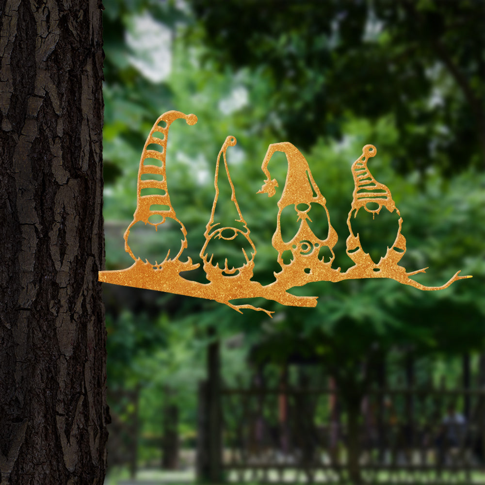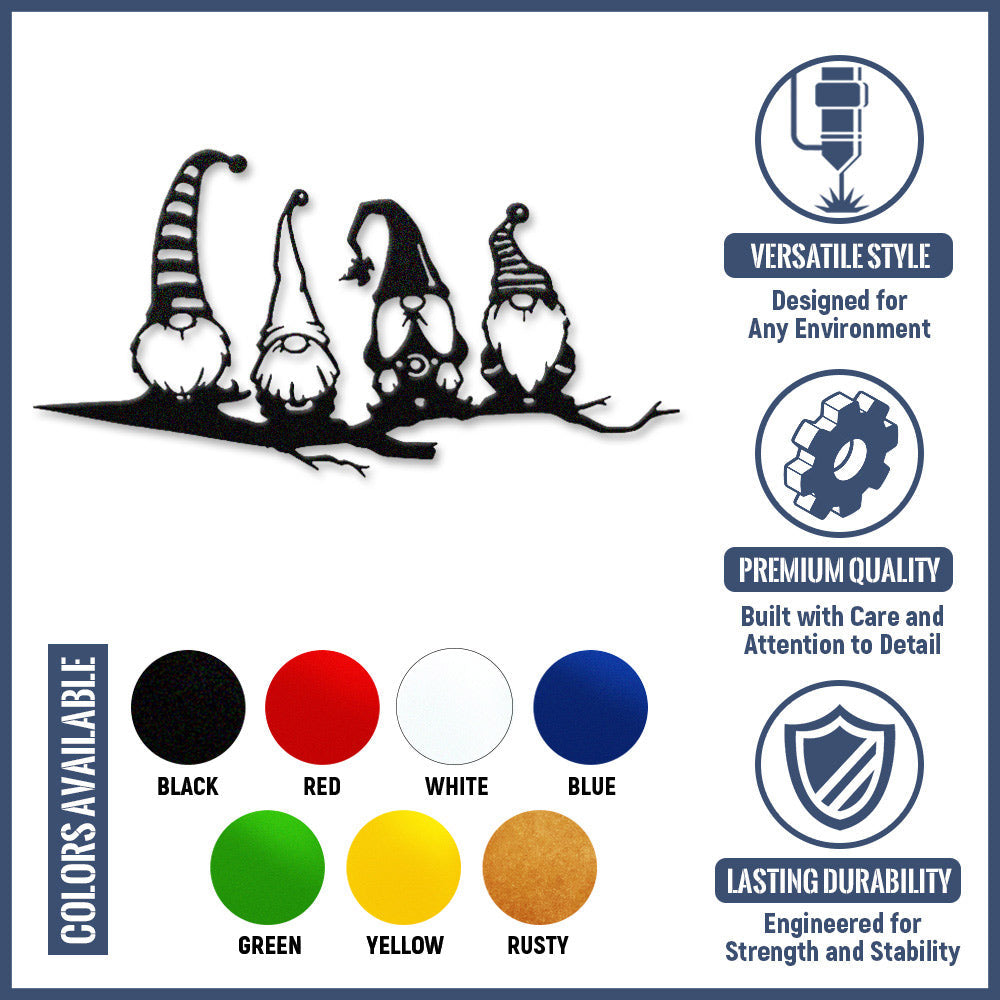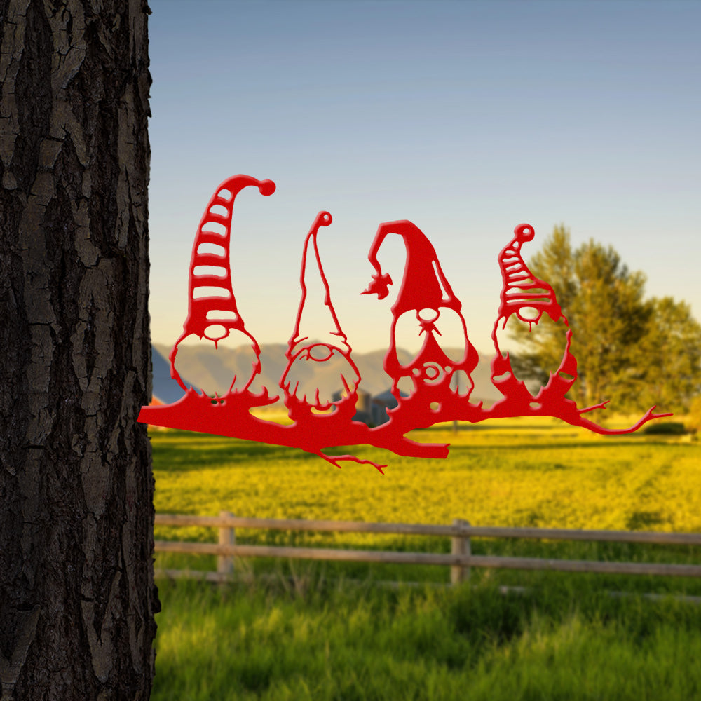 Christmas Gnome Metal Wall Art – Four Santa Gnomes Iron Metal Decor