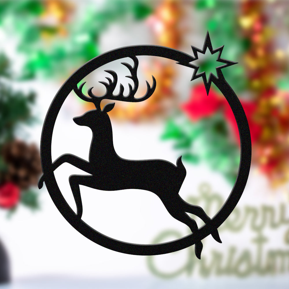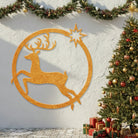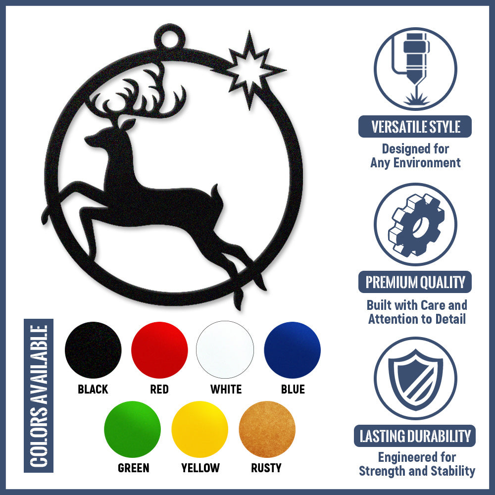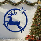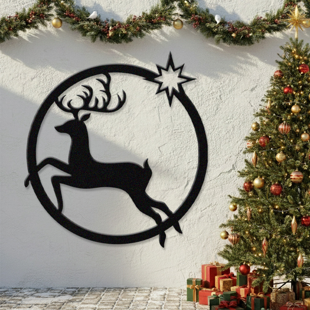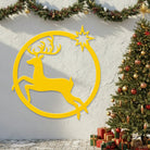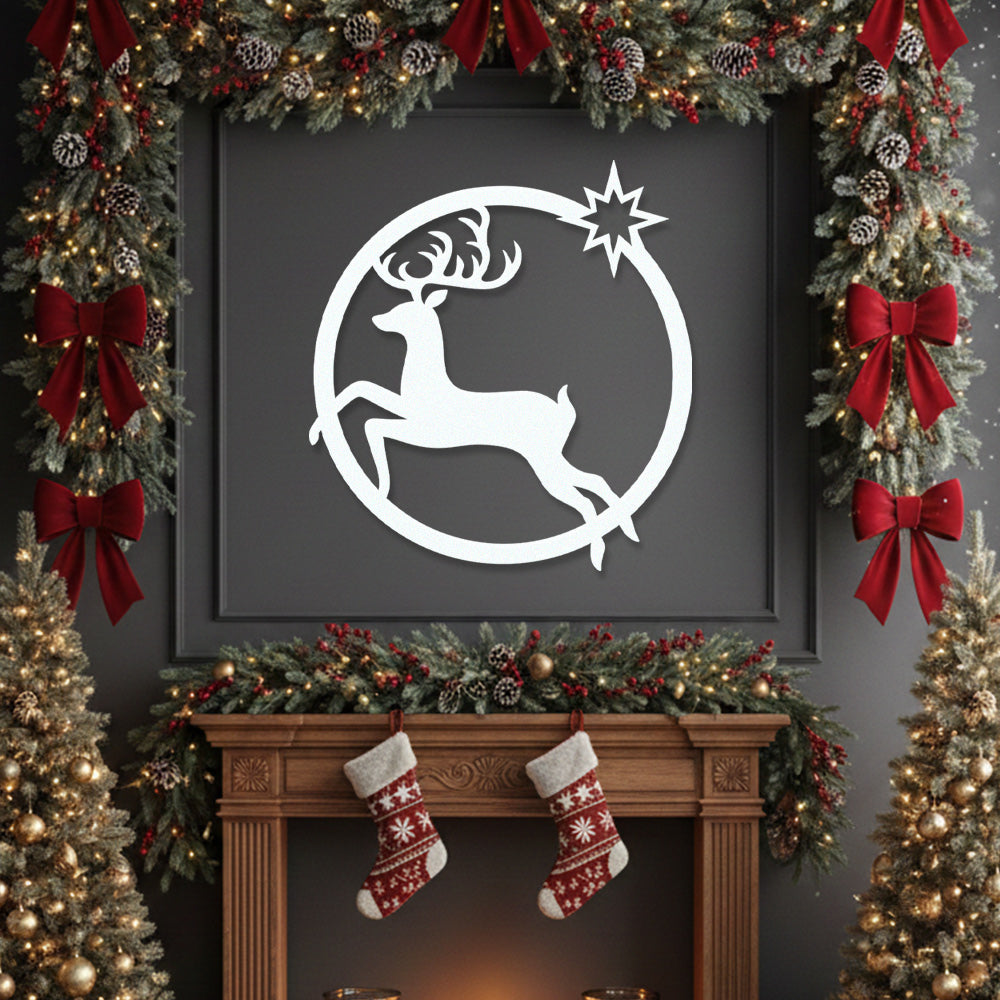 Christmas Reindeer Metal Wall Art – Round Ornament Style Holiday Metal Decor Sign
