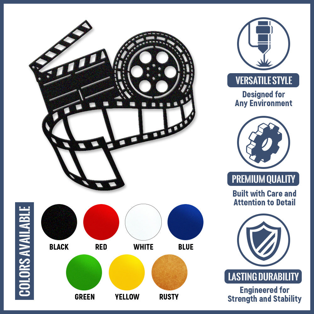 Cinema Film Reel & Clapperboard Metal Wall Art – Movie Theme Metal Wall Decor
