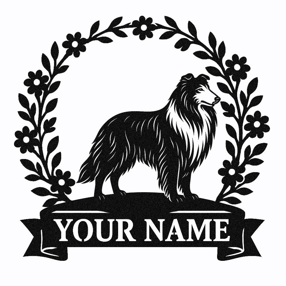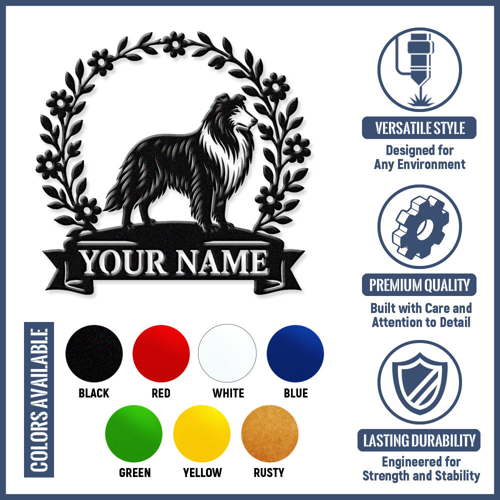 Collie Wreath Metal Wall Art Dog Lover Personalized Memorial Metal Sign