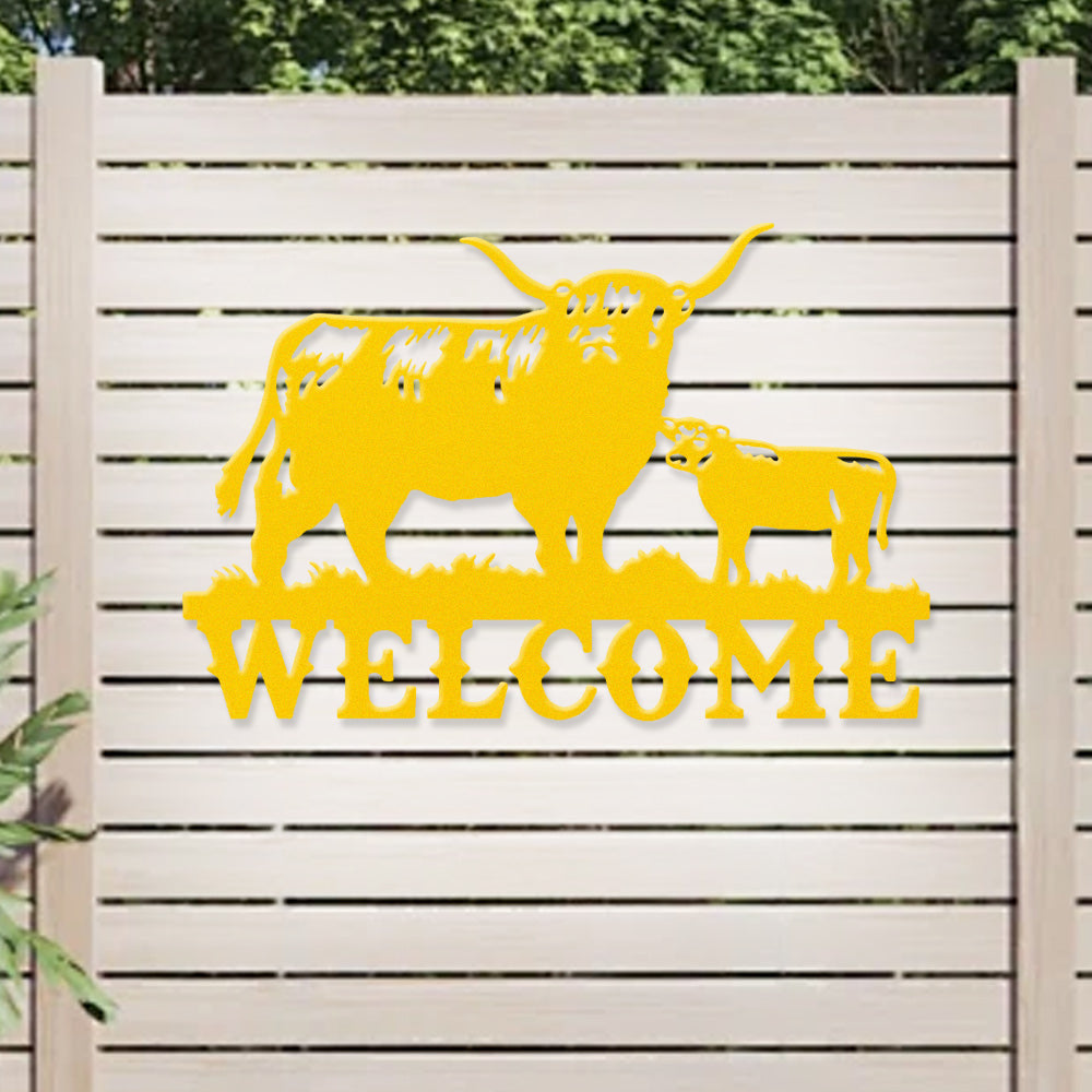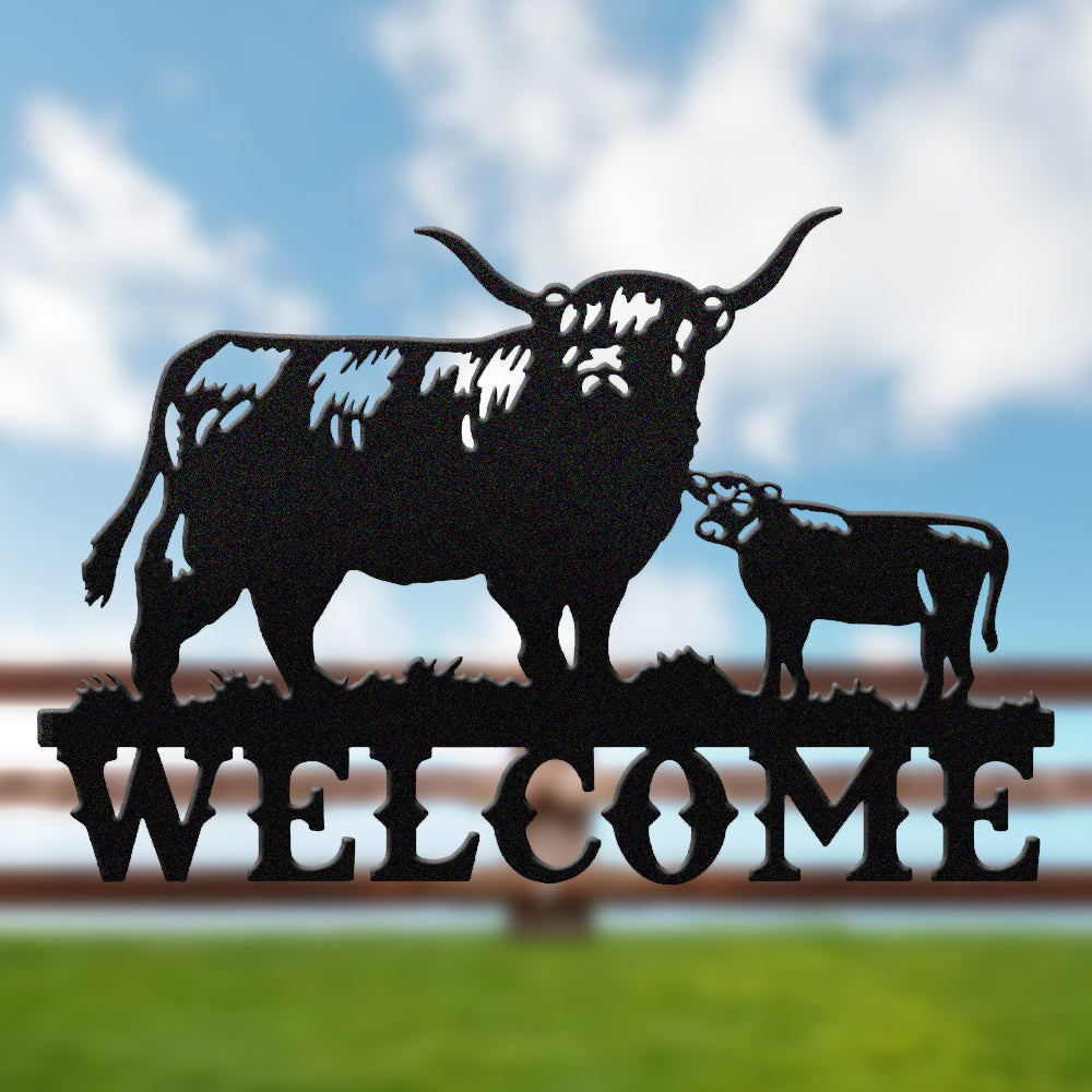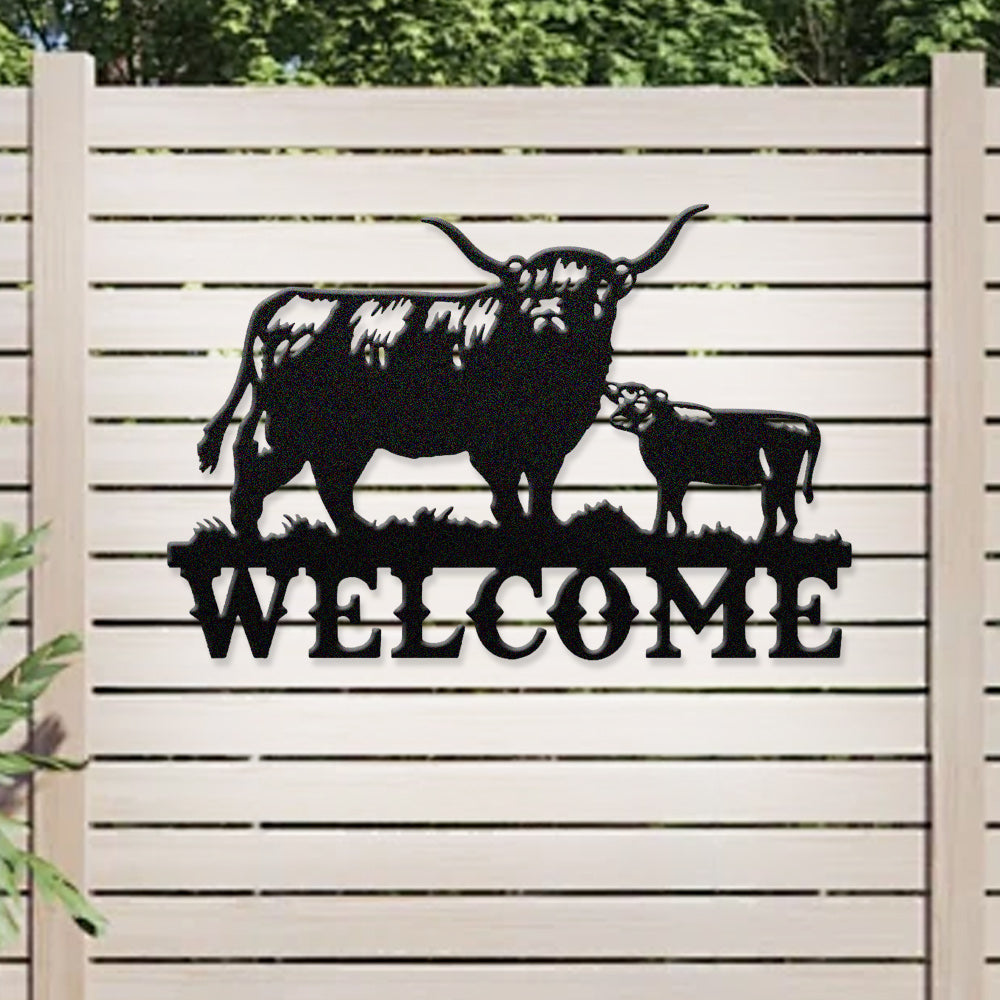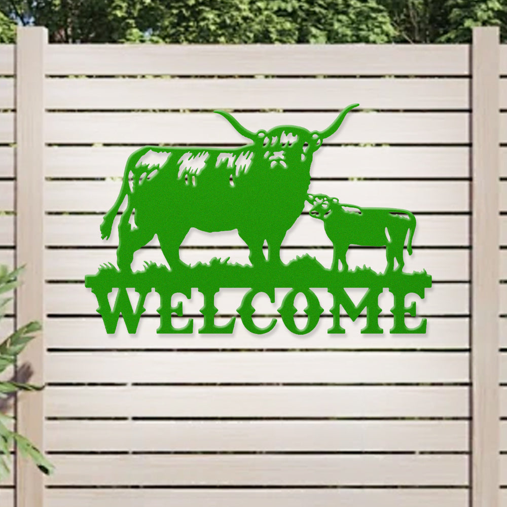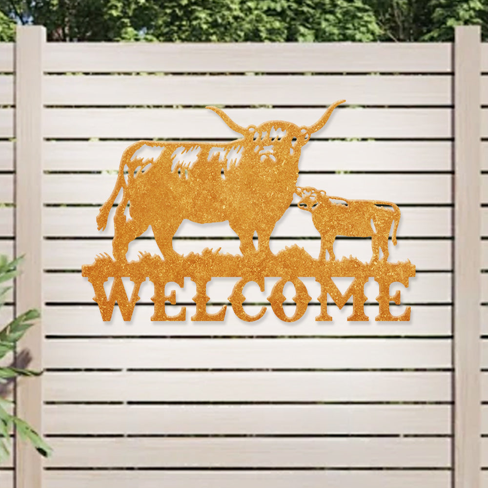 Cow and Calf Welcome Metal Wall Art