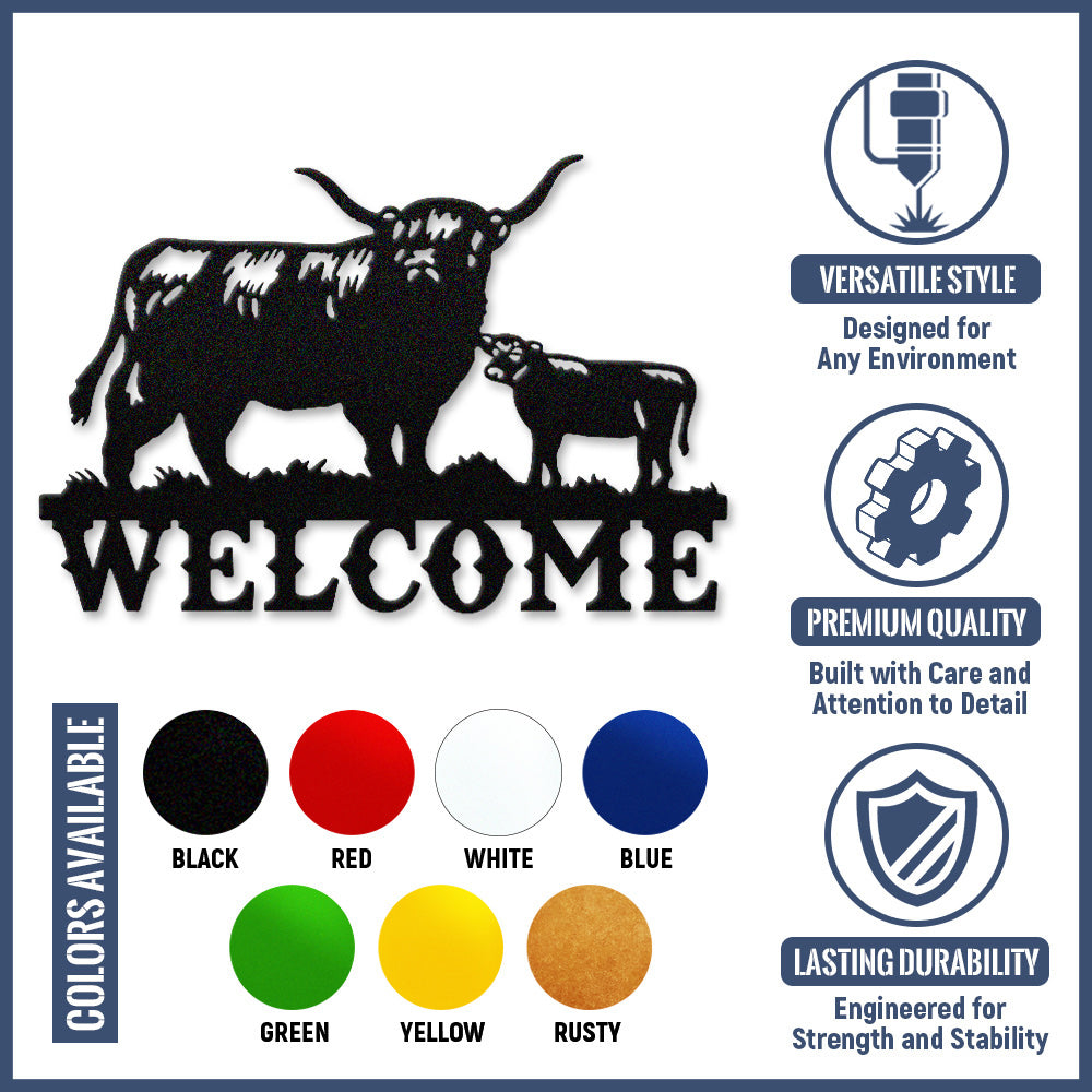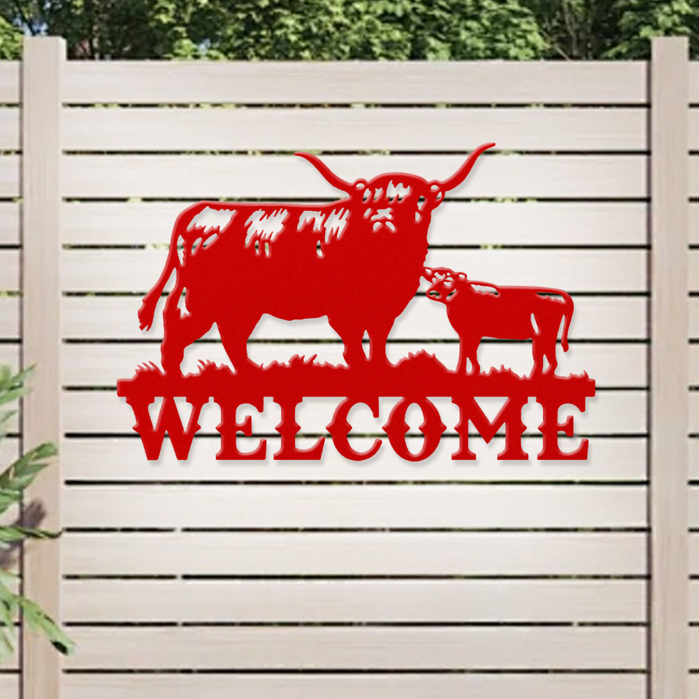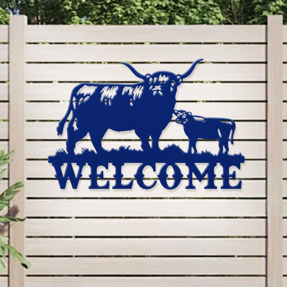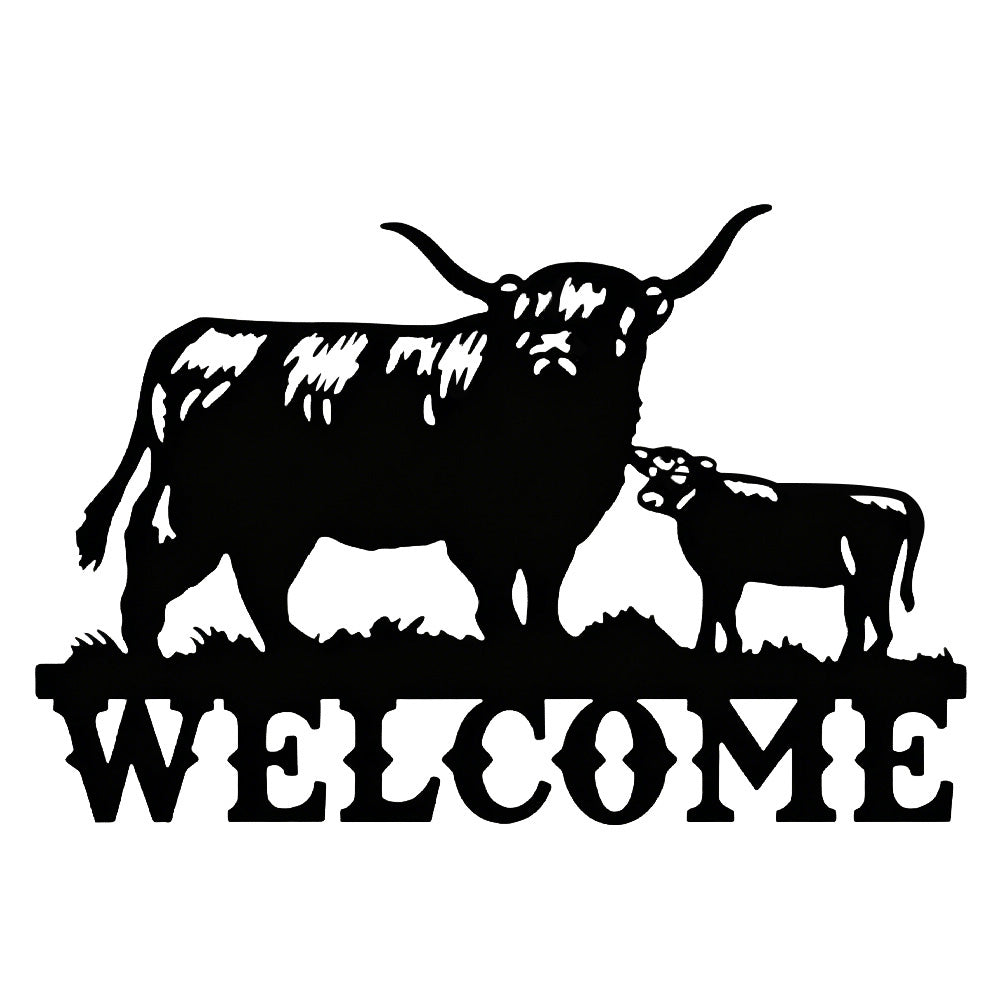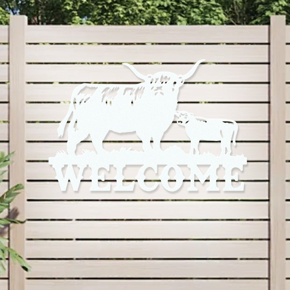 Cow and Calf Welcome Metal Wall Art
