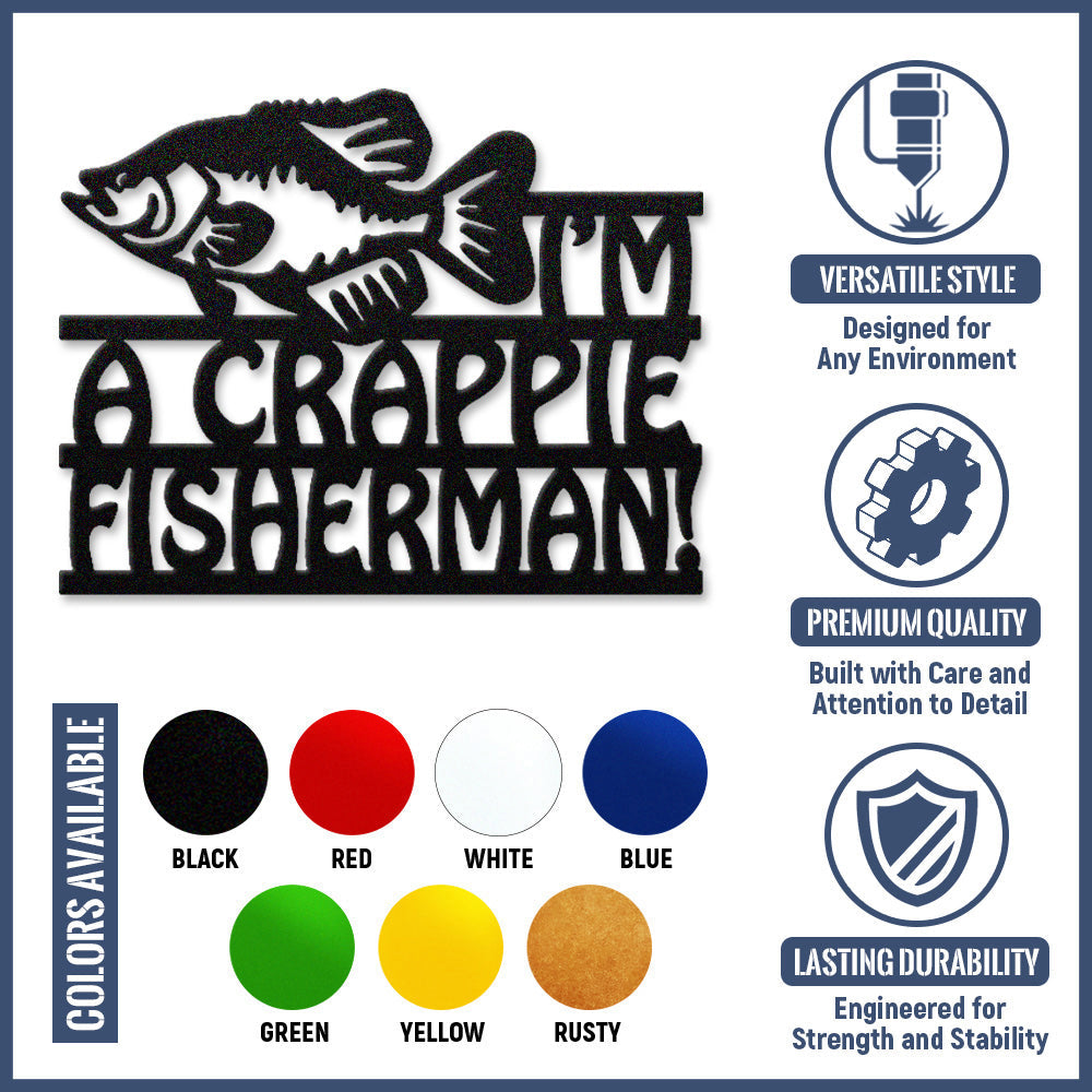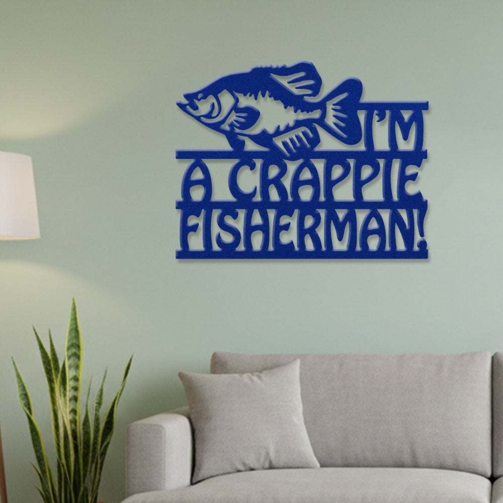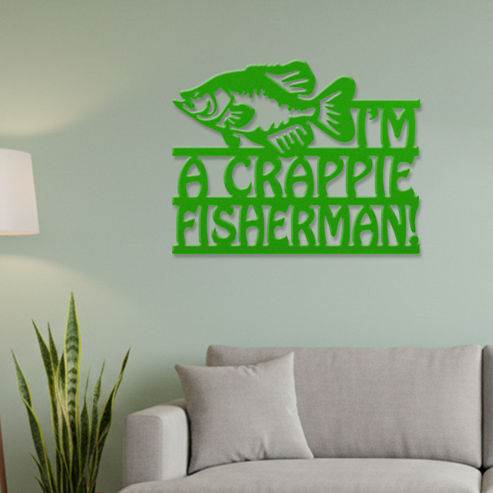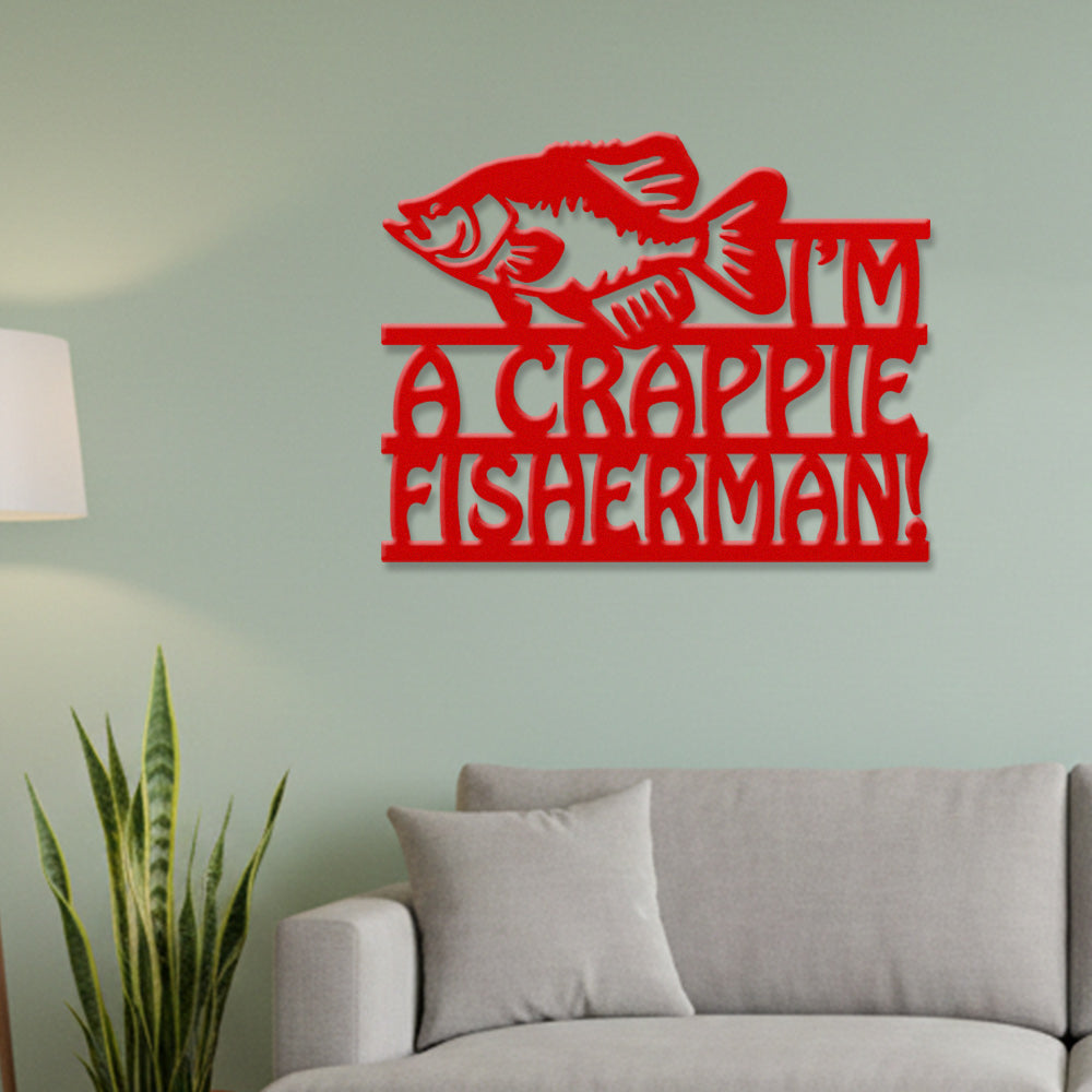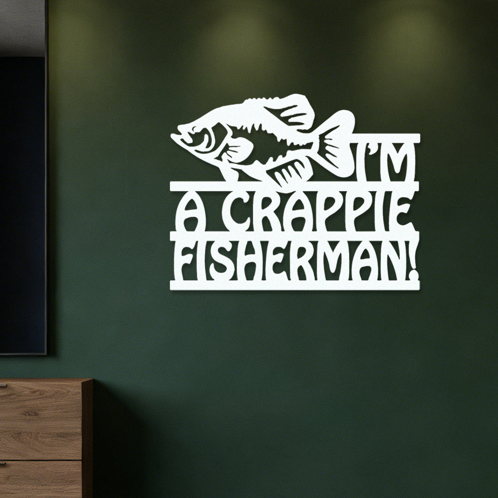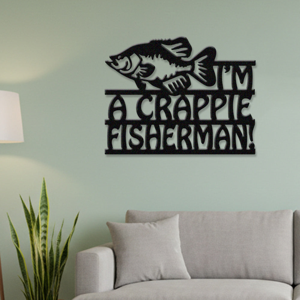 Crappie Fisherman Metal Wall Art – Funny Fishing Lake Decor Sign
