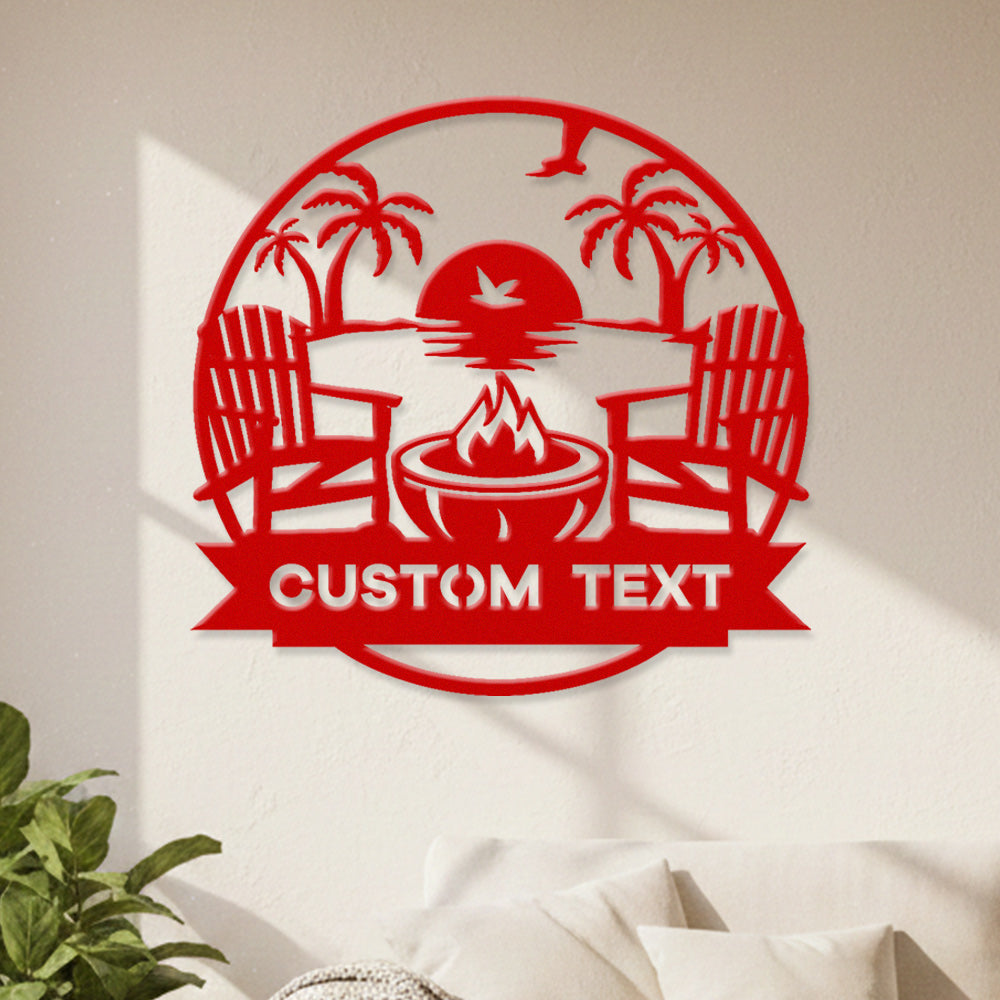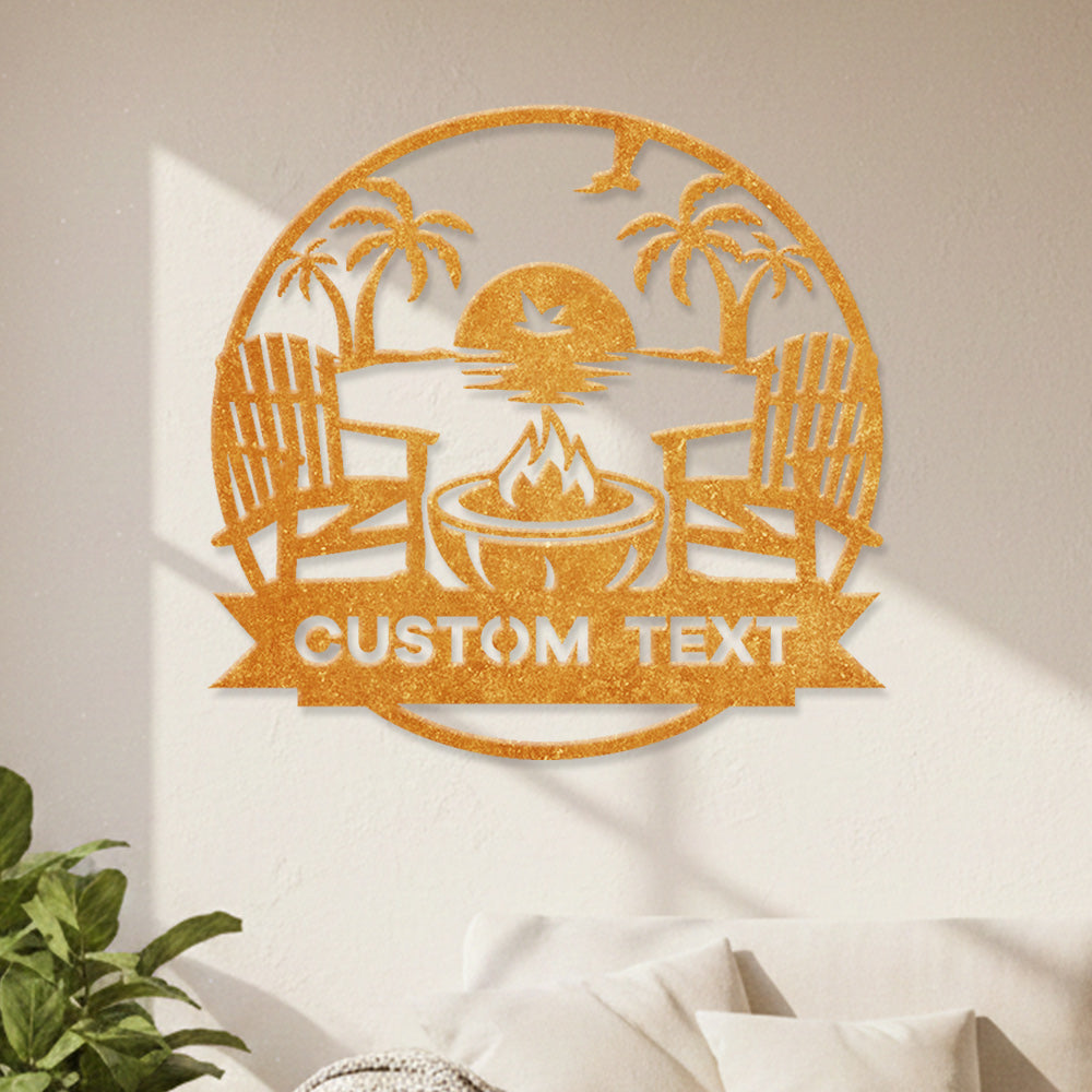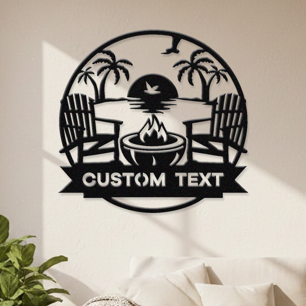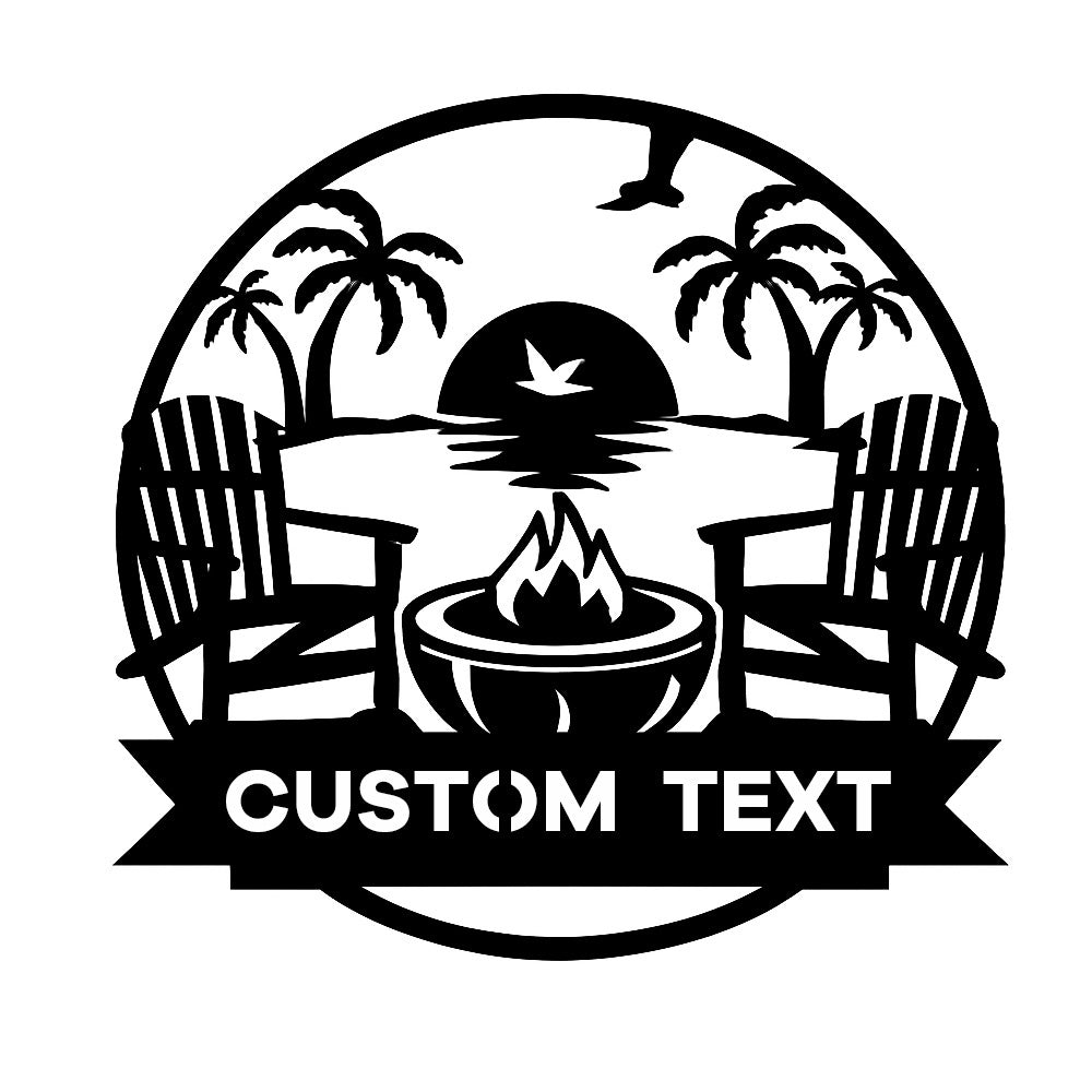 Custom Fire Pit Sunset Metal Wall Art – Outdoor Patio & Beach Style Personalized Decor