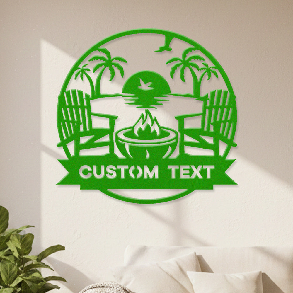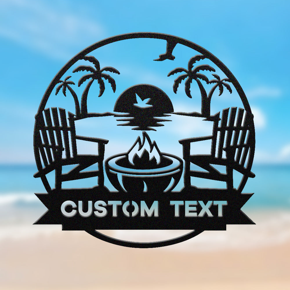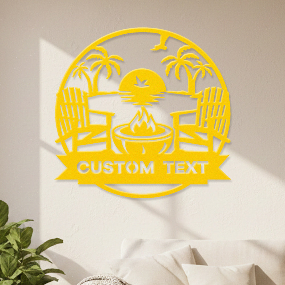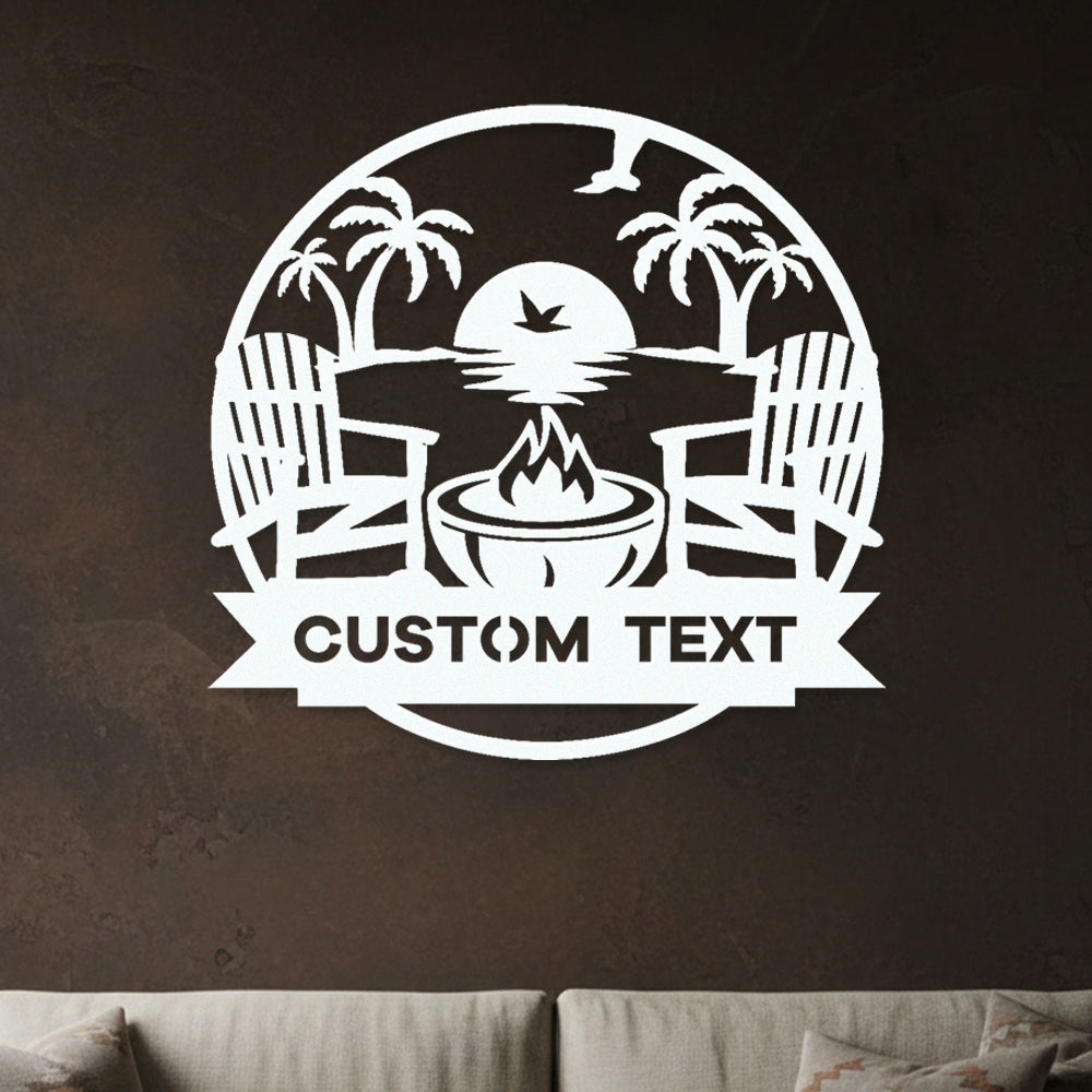 Custom Fire Pit Sunset Metal Wall Art – Outdoor Patio & Beach Style Personalized Decor