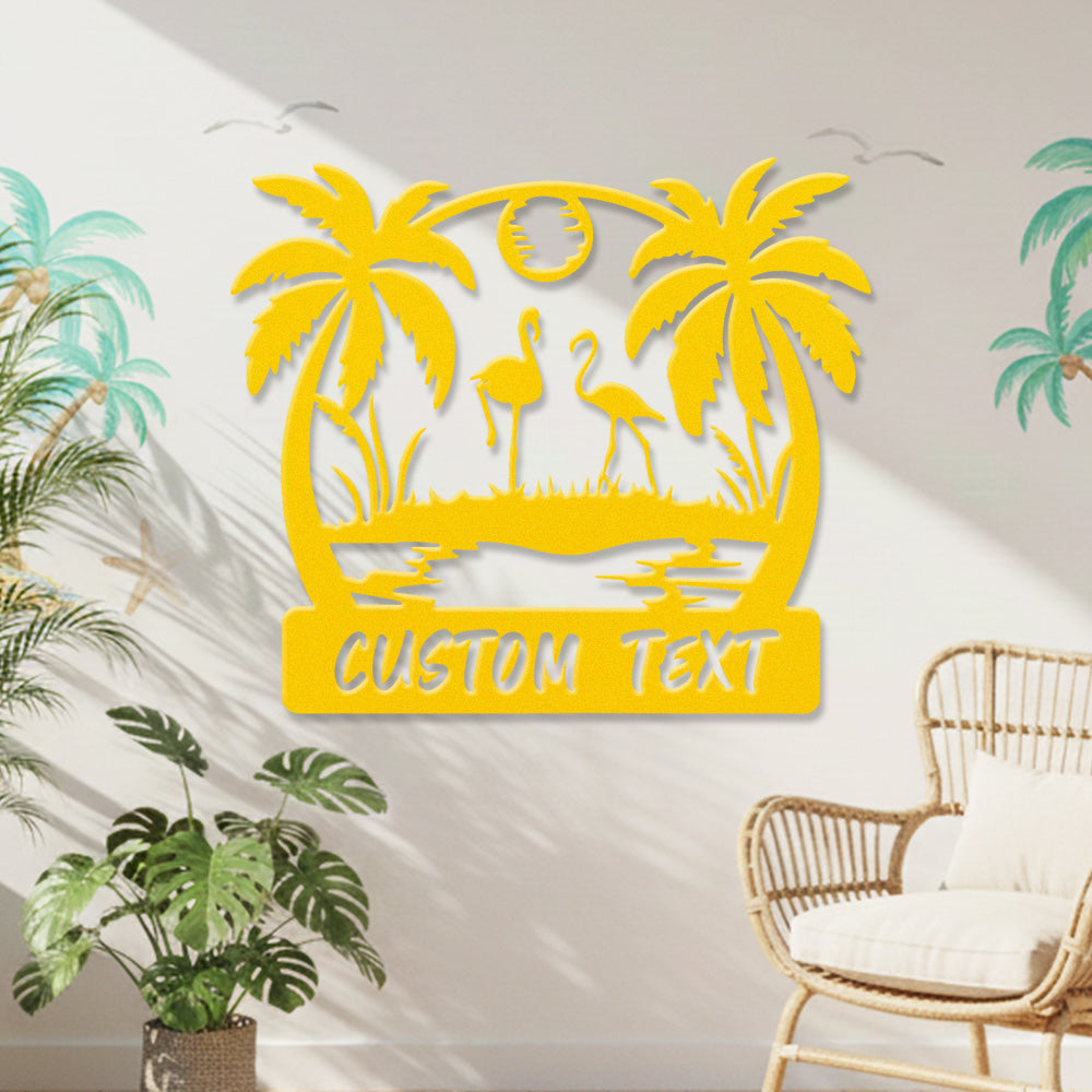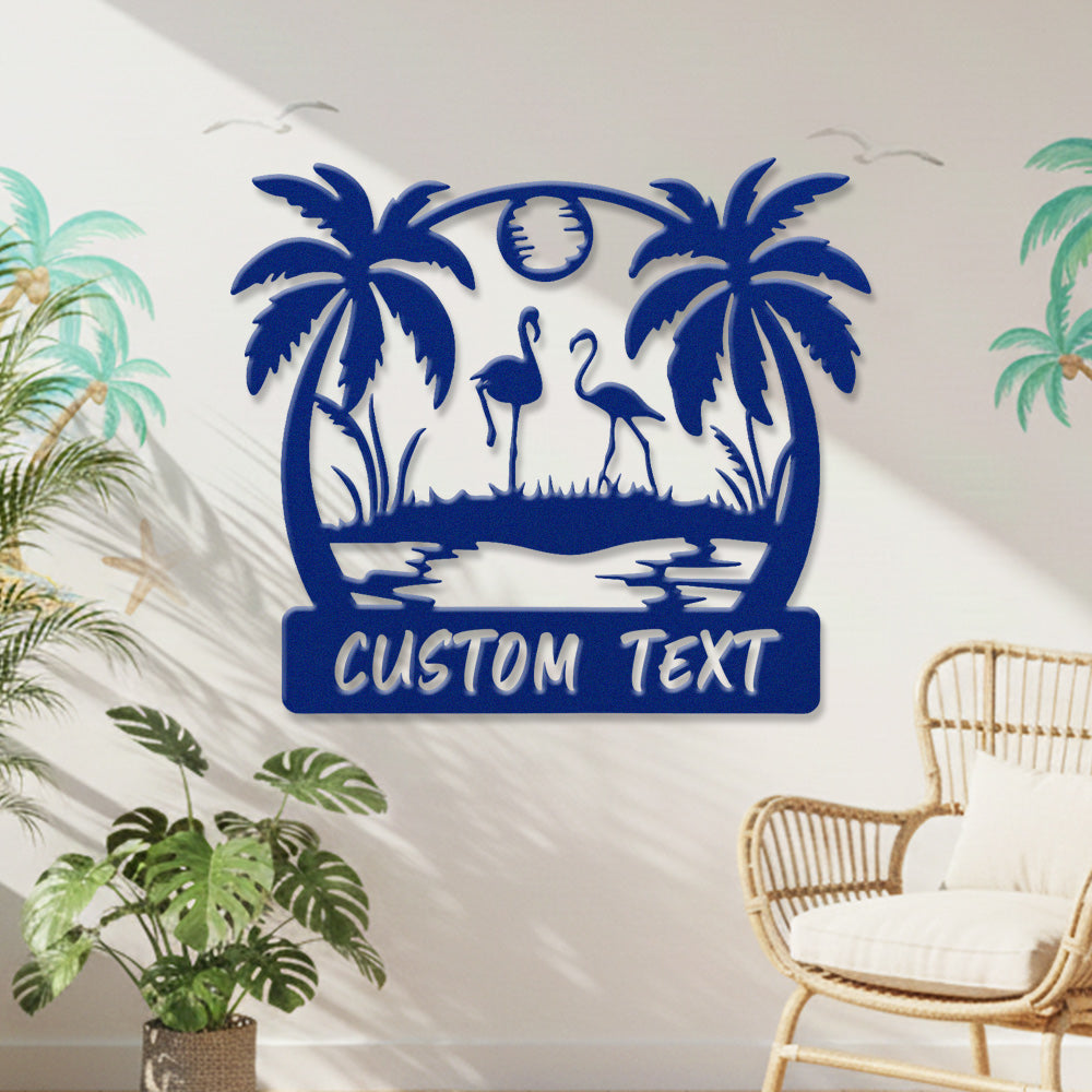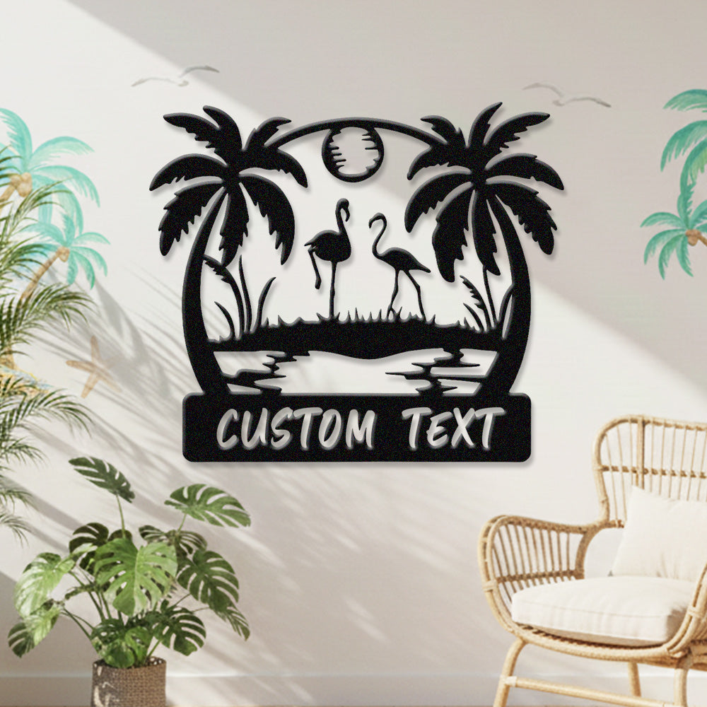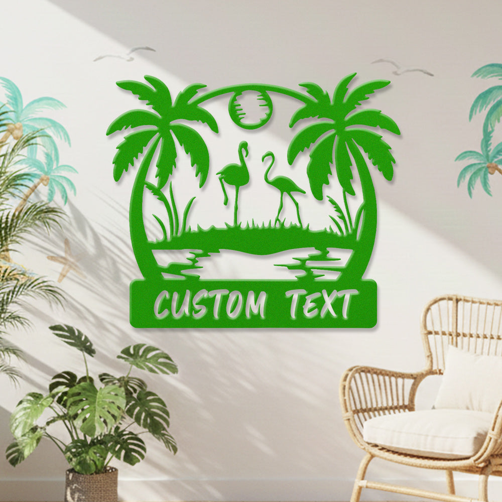 Custom Flamingo Tropical Metal Wall Art – Personalized Palm Tree Iron Metal Door Sign