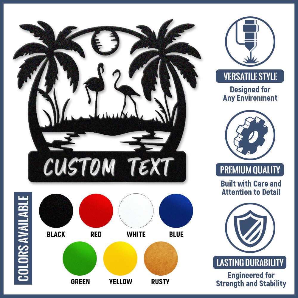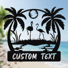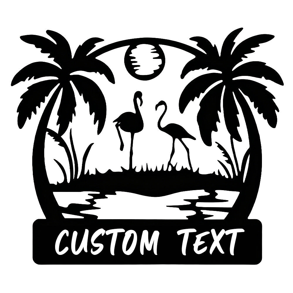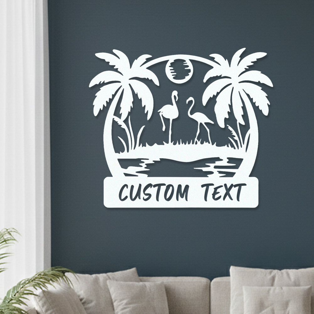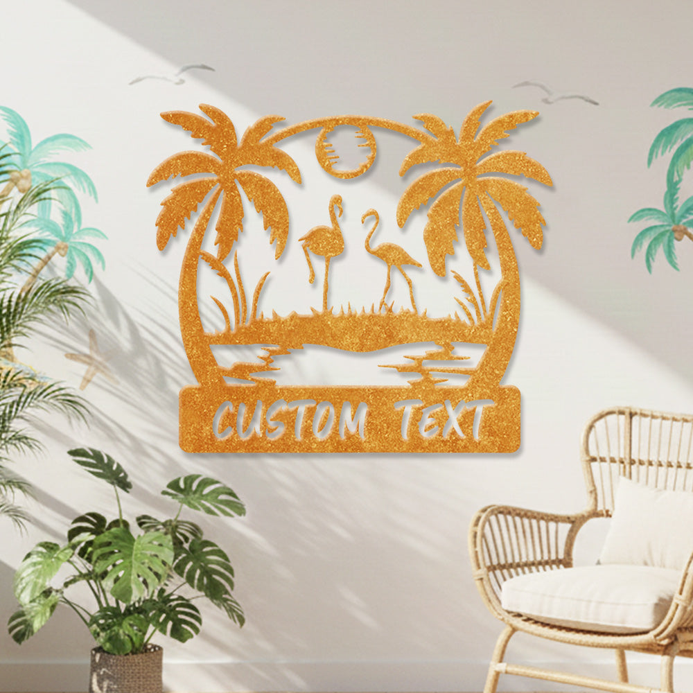 Custom Flamingo Tropical Metal Wall Art – Personalized Palm Tree Iron Metal Door Sign