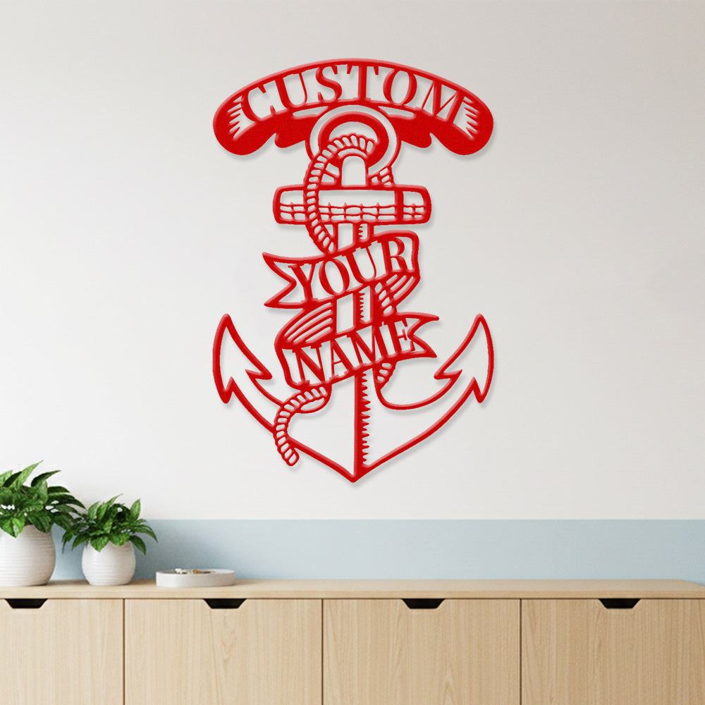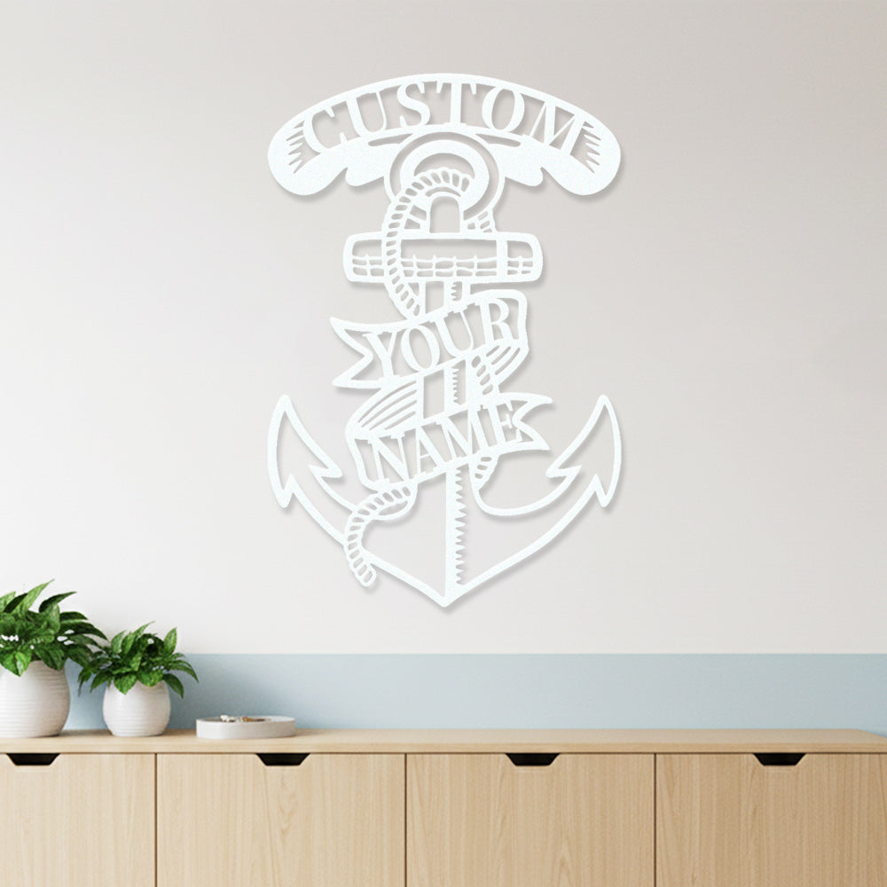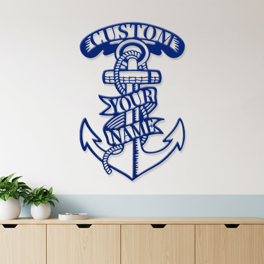 Custom Metal Anchor Wall Art - Personalized Iron Sign with Rope Accents
