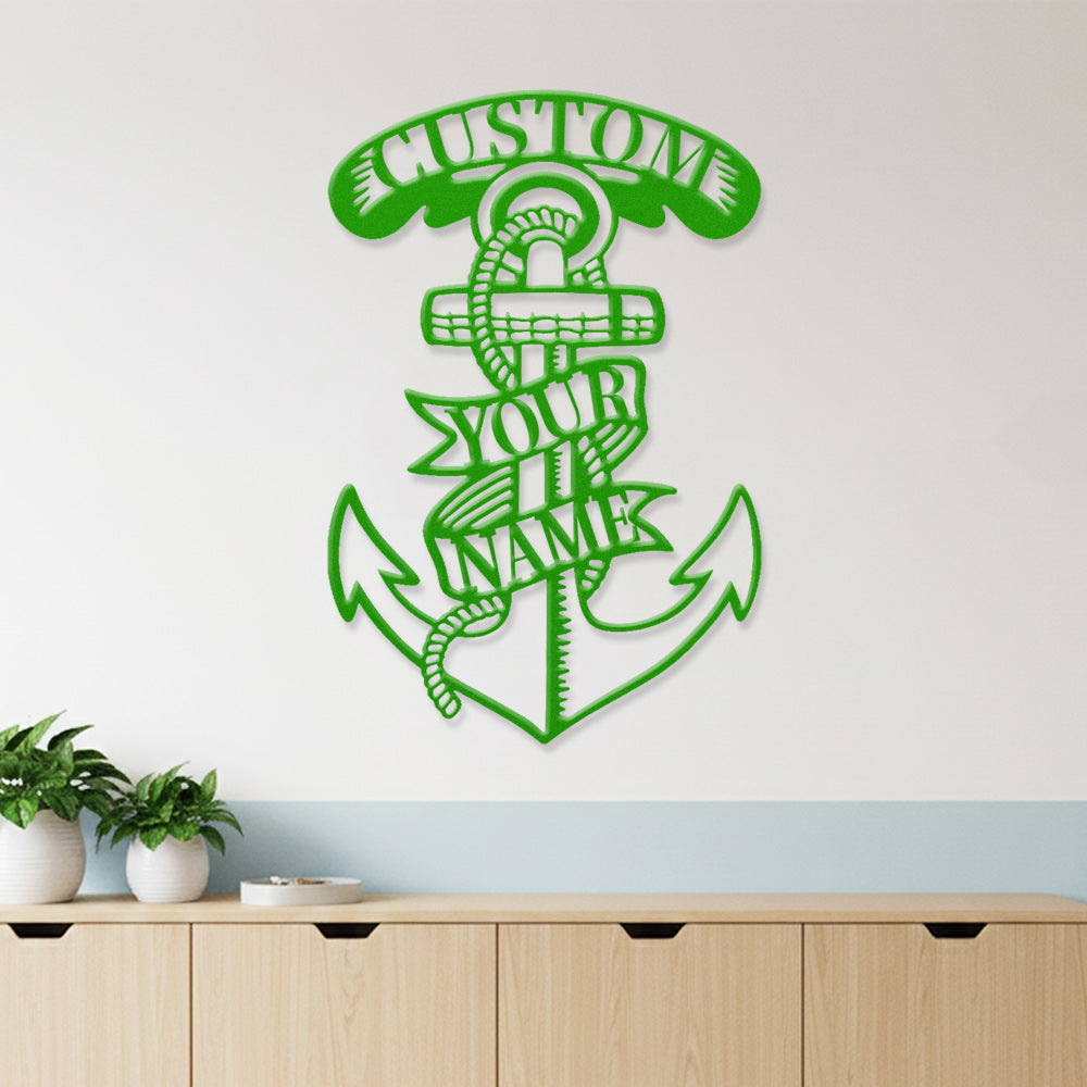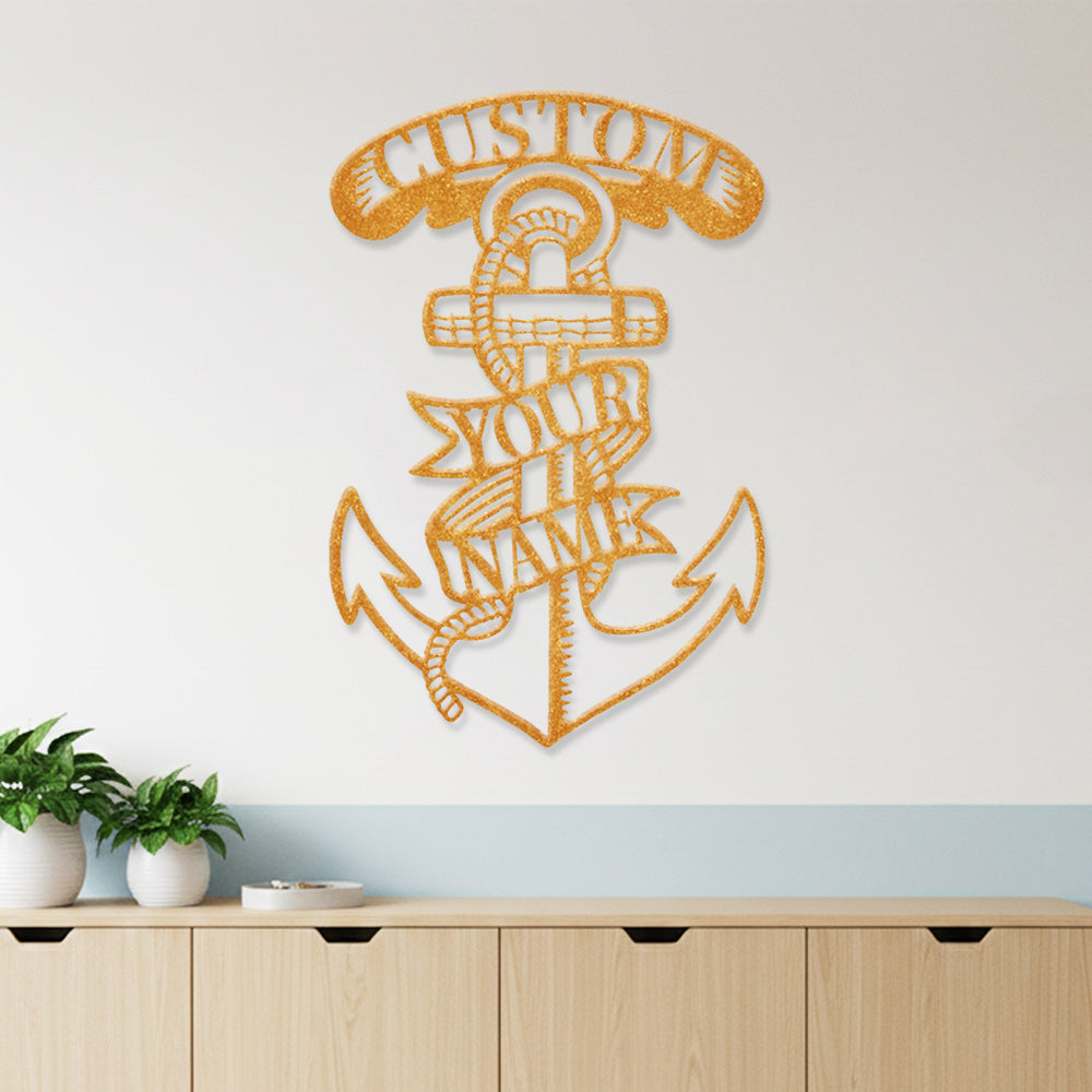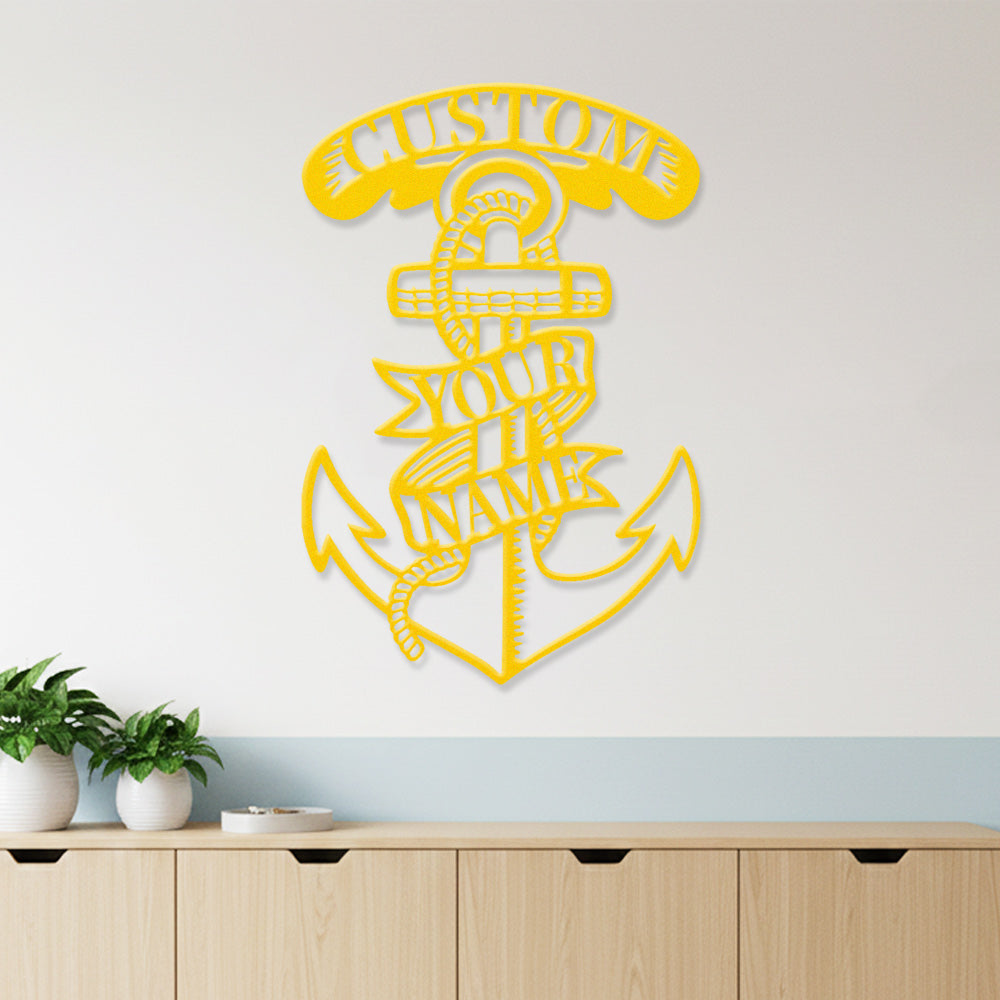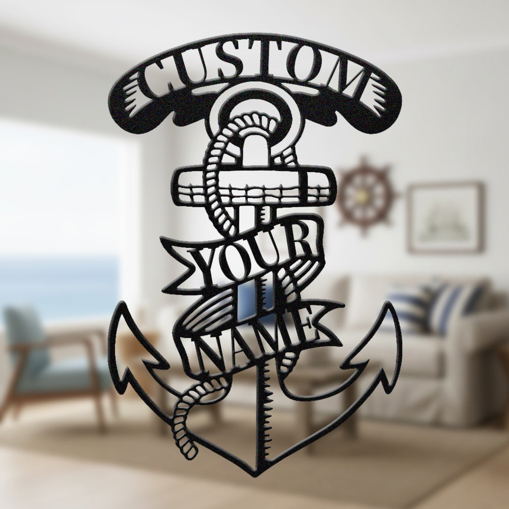 Custom Metal Anchor Wall Art - Personalized Iron Sign with Rope Accents
