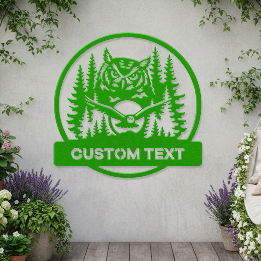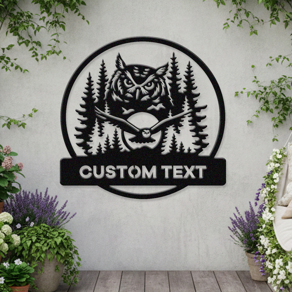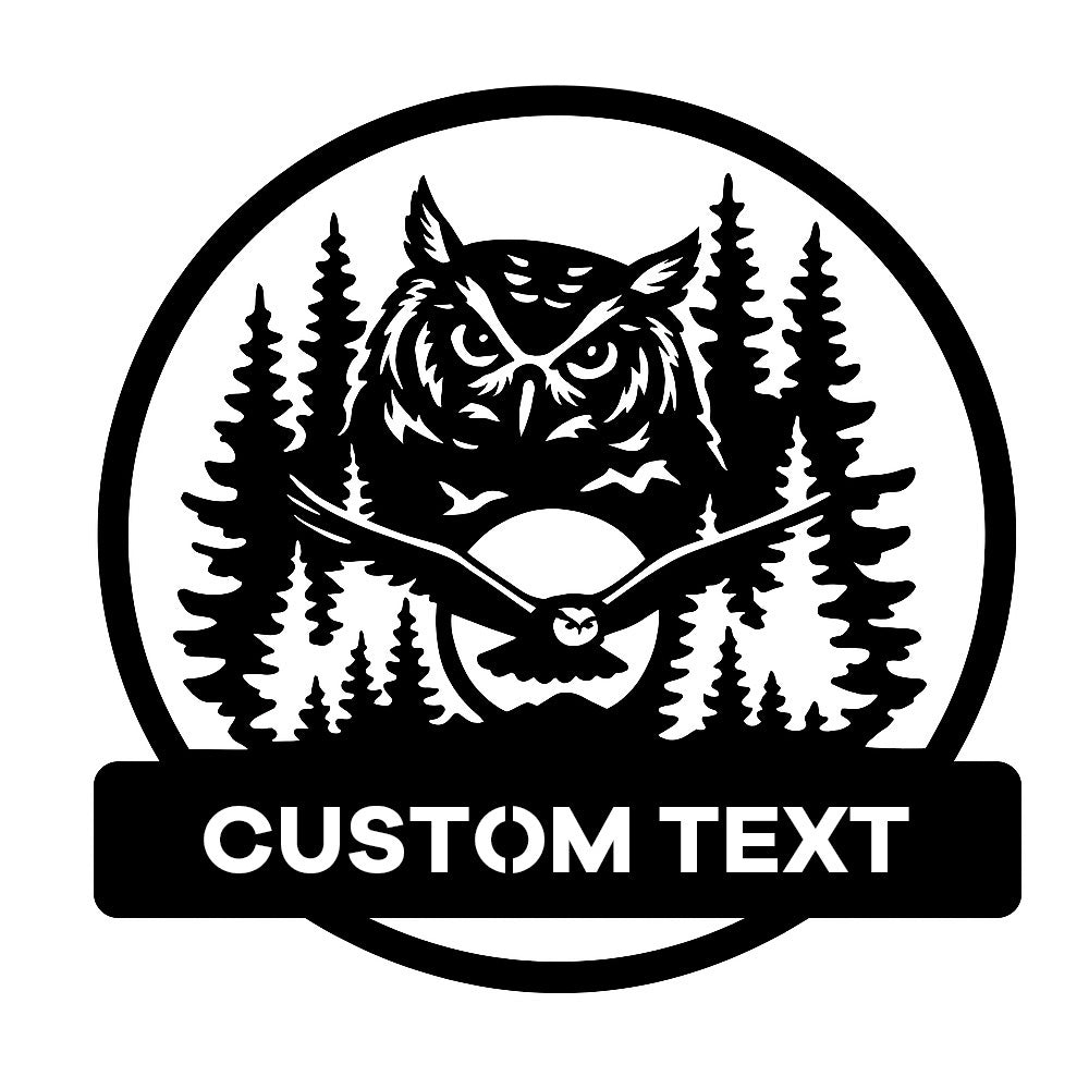 Custom Owl Forest Metal Wall Art, Personalized Wildlife Metal Wall Decor, Outdoor & Cabin Wall Hanging
