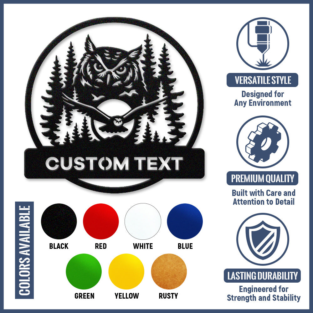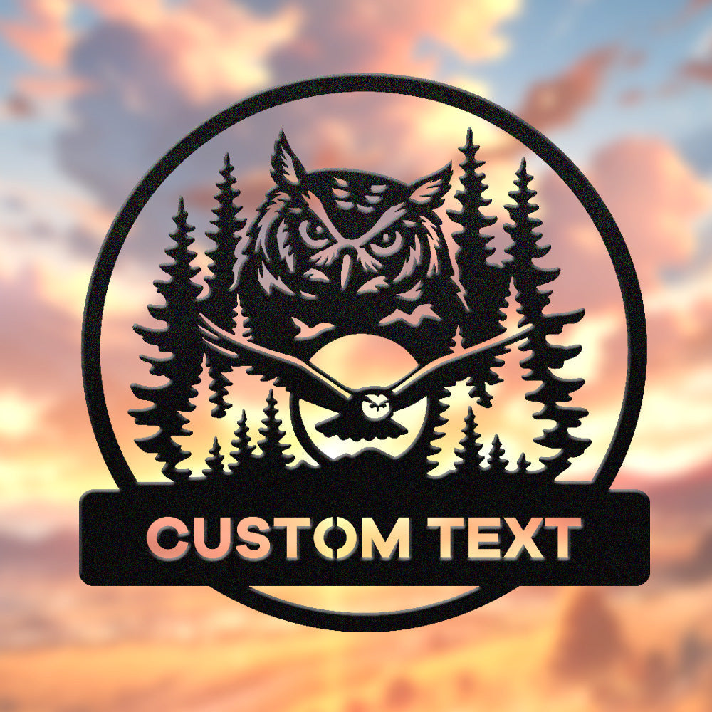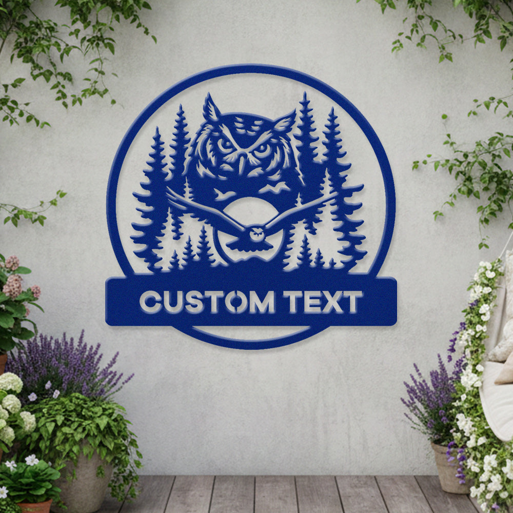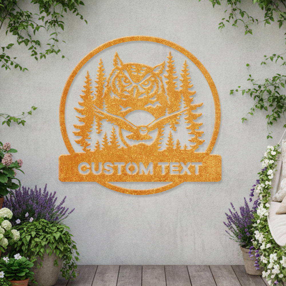 Custom Owl Forest Metal Wall Art, Personalized Wildlife Metal Wall Decor, Outdoor & Cabin Wall Hanging