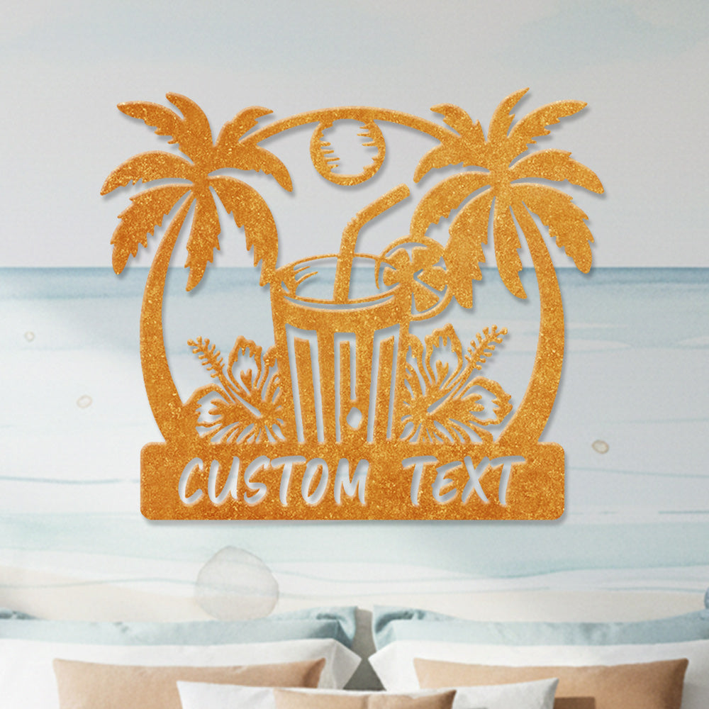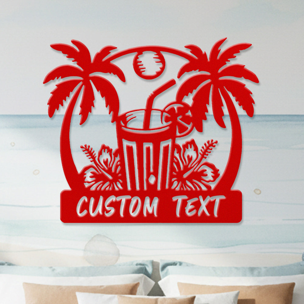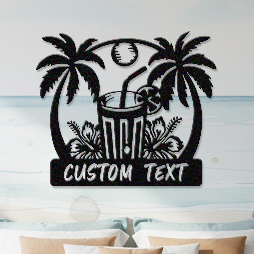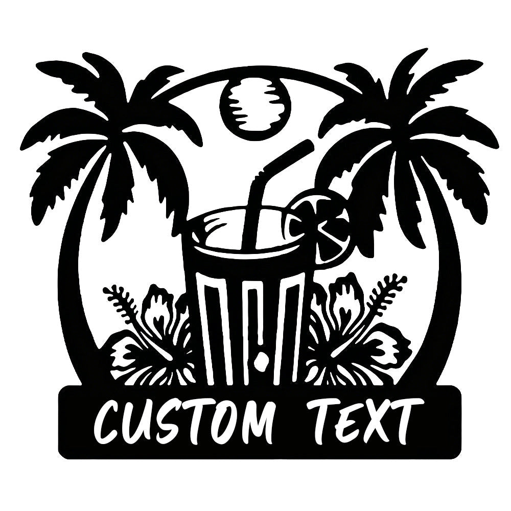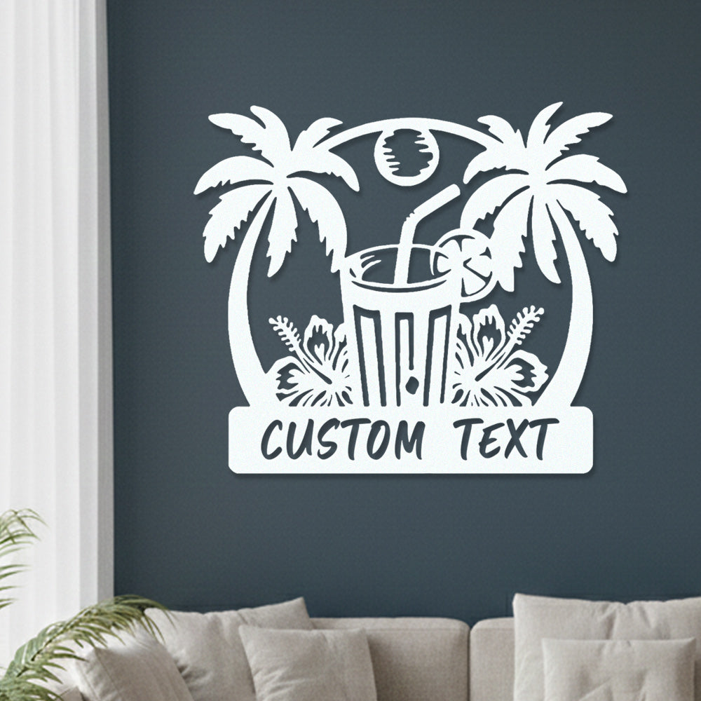 Custom Tropical Cocktail Metal Wall Art – Personalized Palm Iron Metal Door Sign
